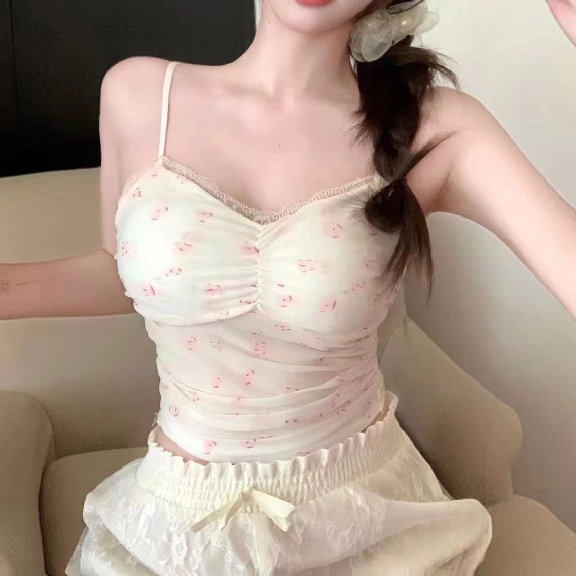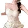 Camisola de punto con costuras de encaje para mujer, top interior ajustado y moderno, novedad de verano de 2024