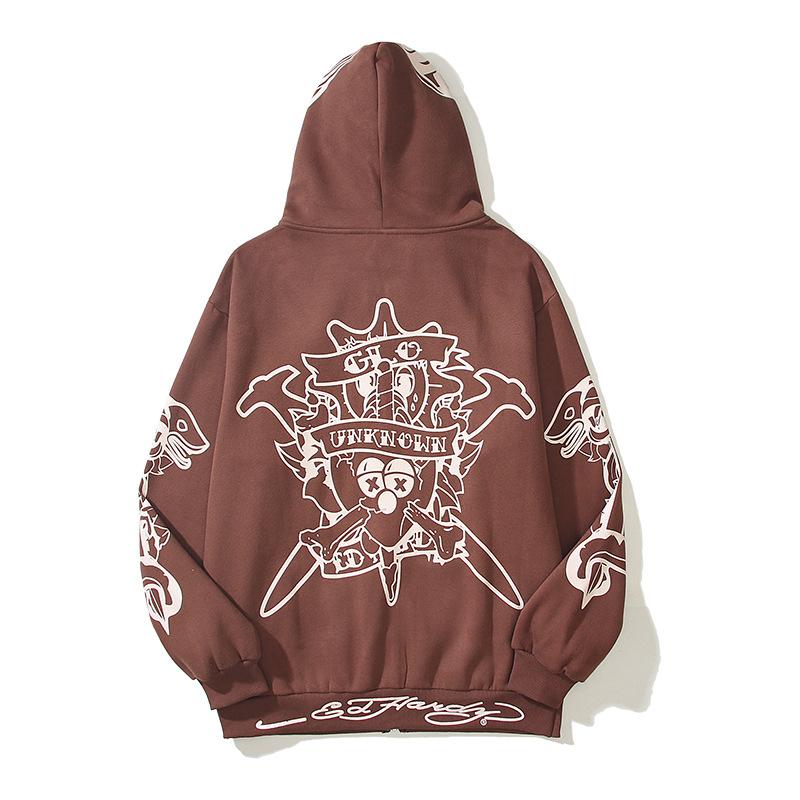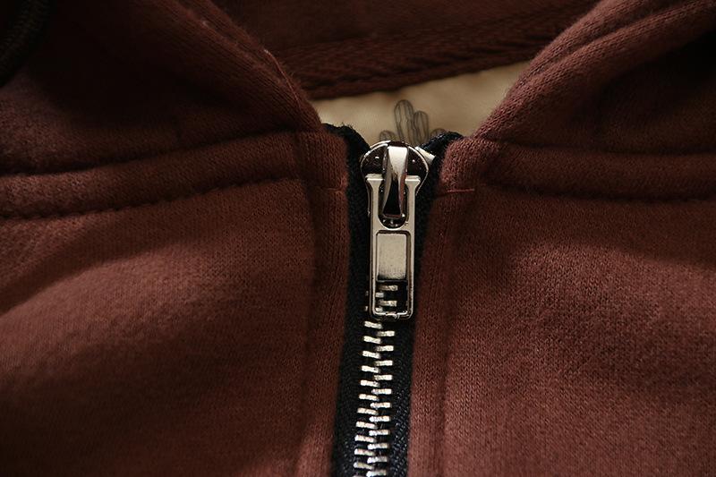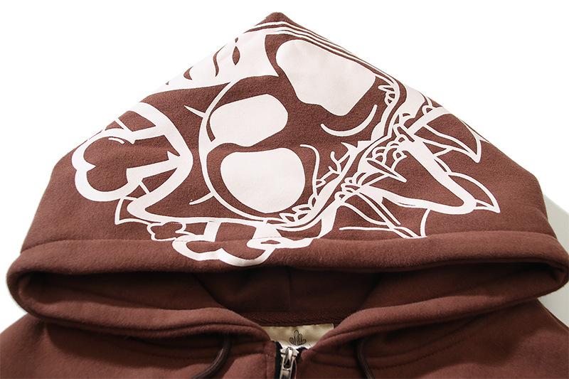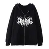 Cárdigan con capucha y cremallera con estampado de dibujos animados oscuros y alfabeto gótico al por mayor de comercio exterior transfronterizo, suéter de marca de moda y chaqueta de terciopelo