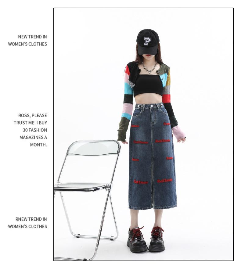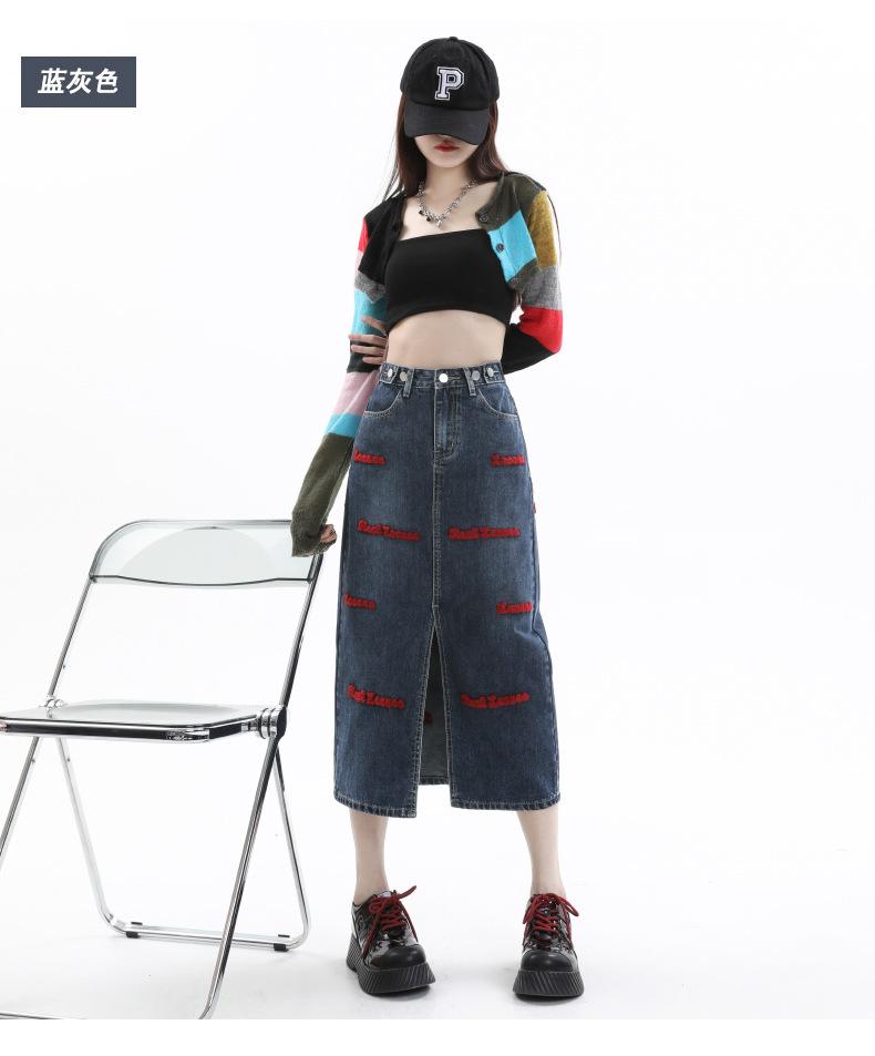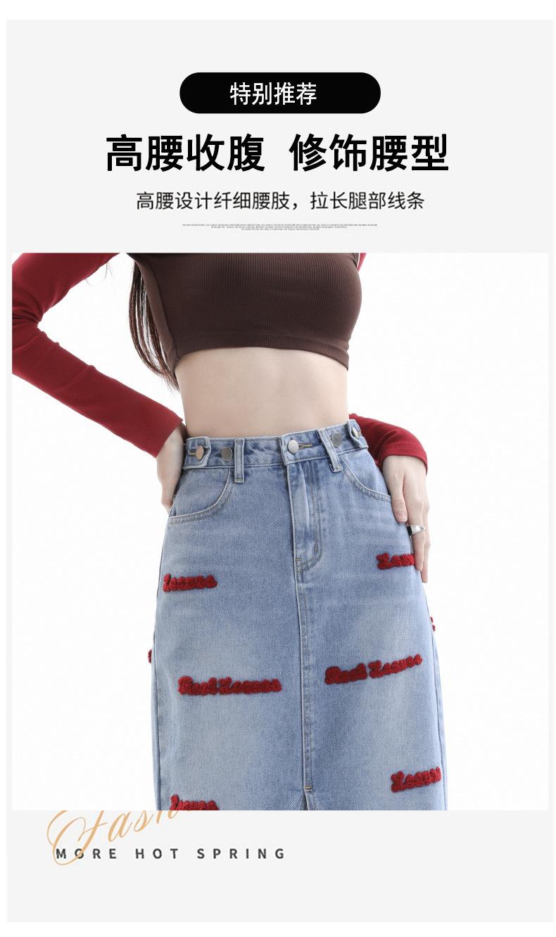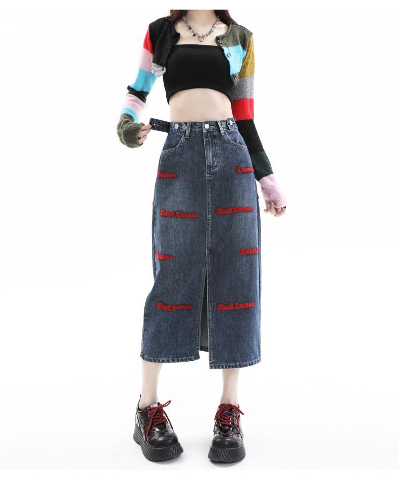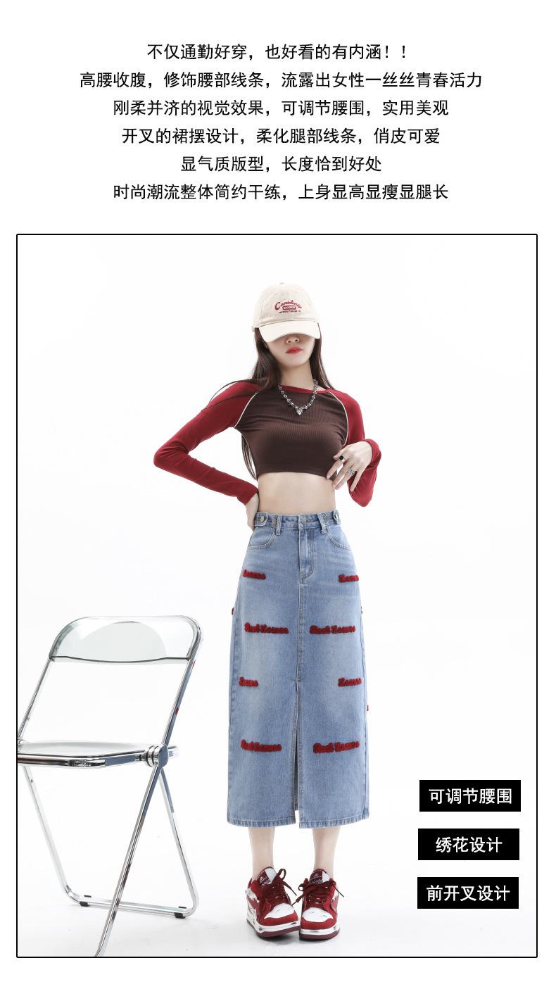 Falda de mezclilla para mujer Primavera y Otoño 2024 Nueva falda línea A de largo medio Bordada Look Adelgazante Falda de cadera Tendencia Sexy