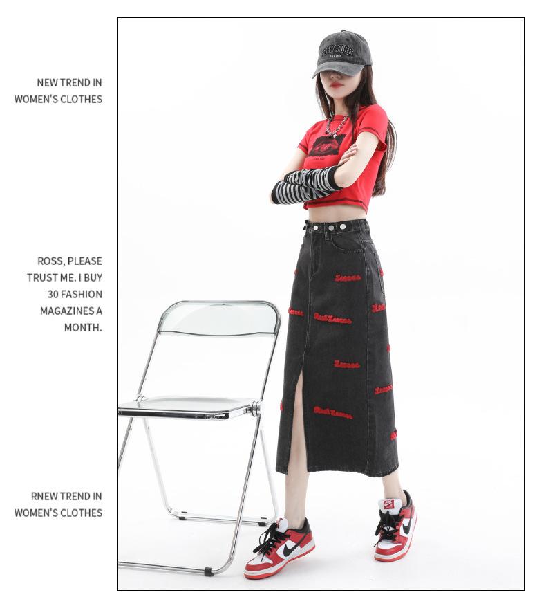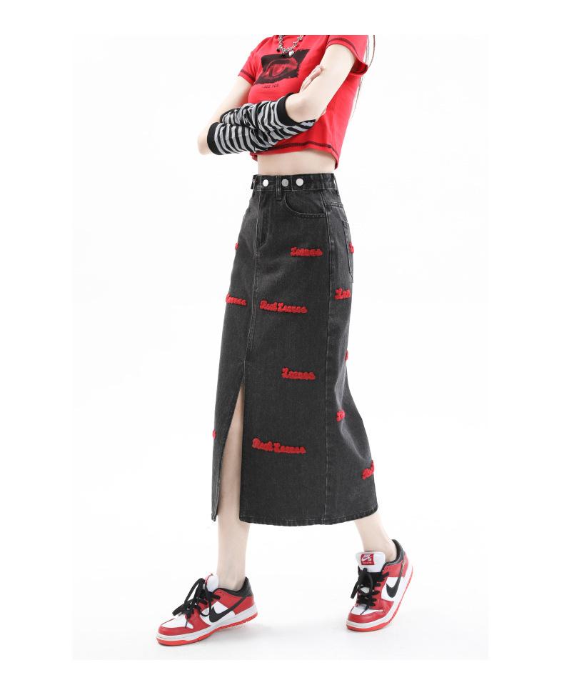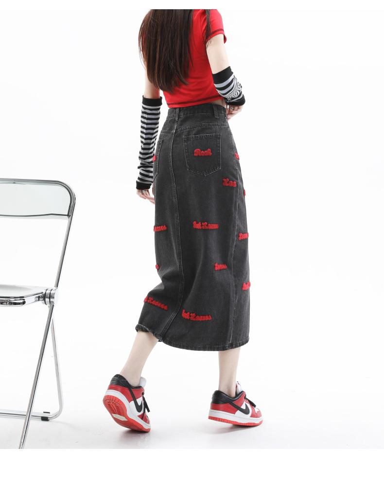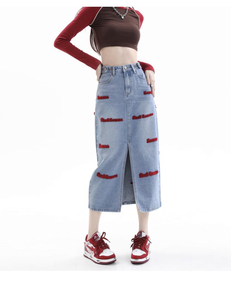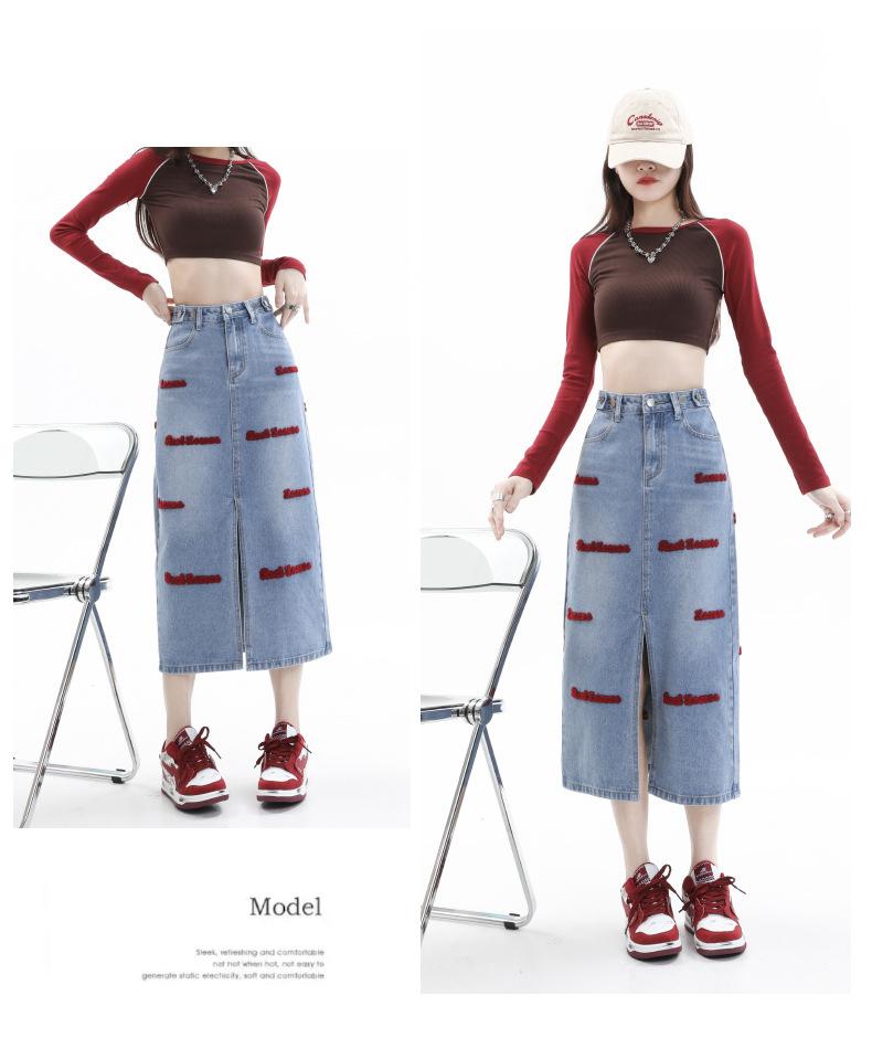 Falda de mezclilla para mujer Primavera y Otoño 2024 Nueva falda línea A de largo medio Bordada Look Adelgazante Falda de cadera Tendencia Sexy