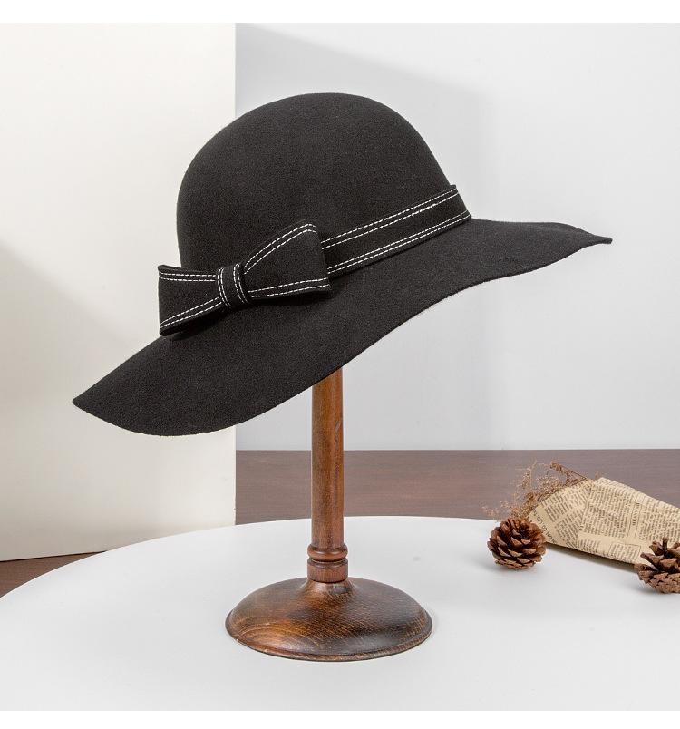 Linglong 2024 - Nuevo sombrero de fieltro para mujer, otoño e invierno, con lazo de lana, estilo británico, estilo pescador retro para banquetes