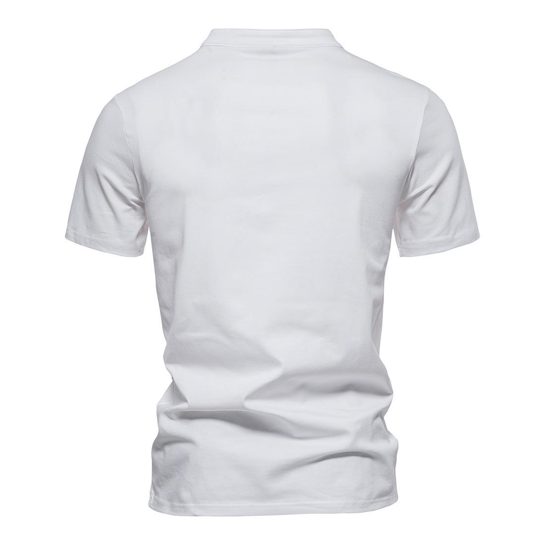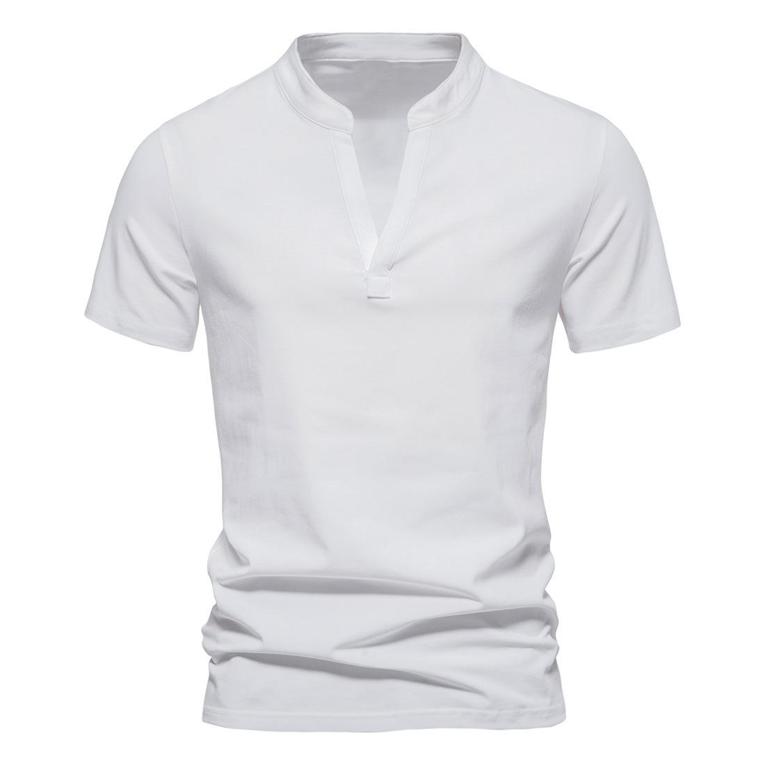 Camiseta de manga corta con cuello en V profundo para hombre, camisa de algodón elástico con cuello alto pequeño, venta al por mayor, novedad de verano de comercio exterior de 2023