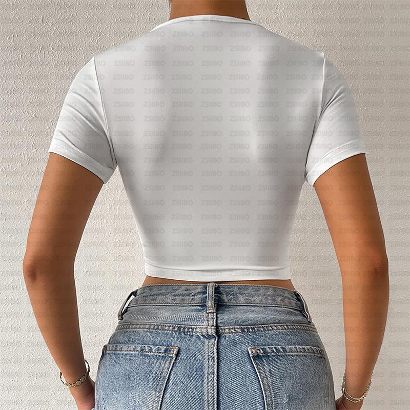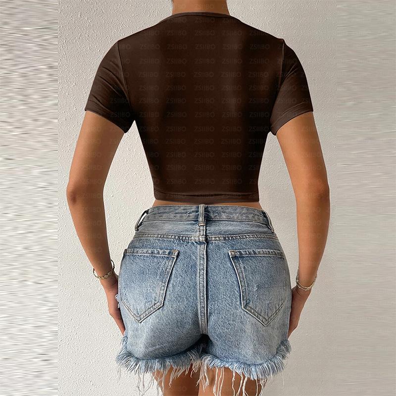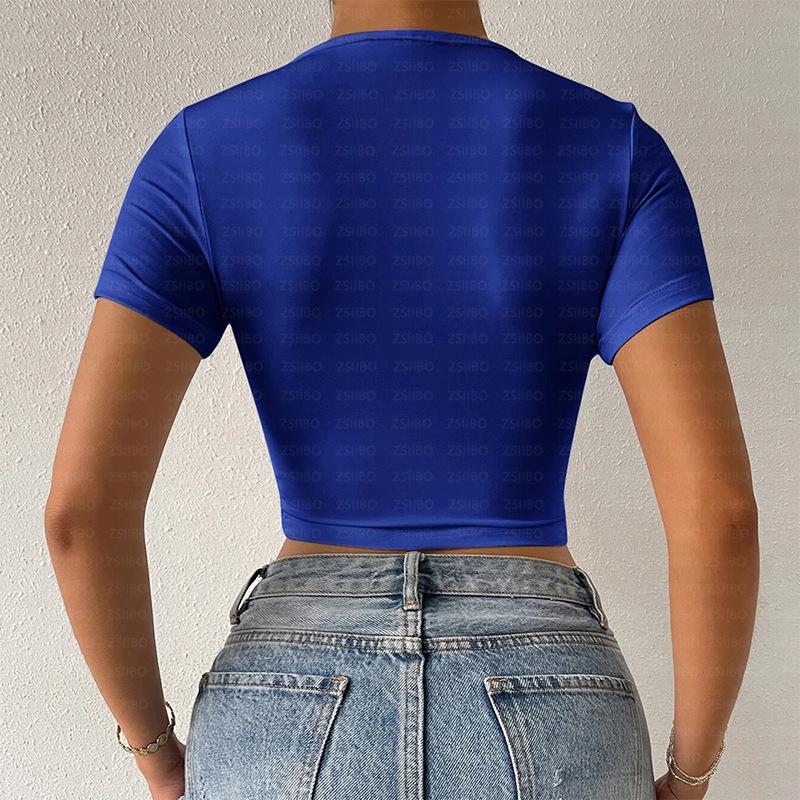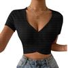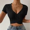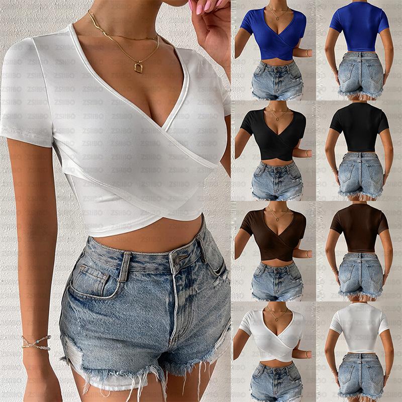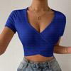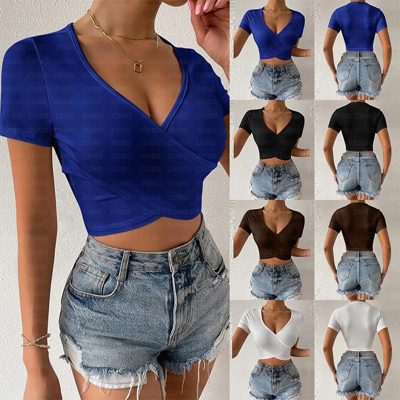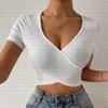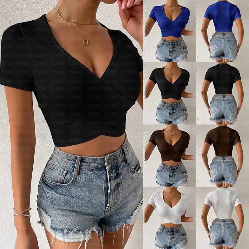 Venta al por mayor de AliExpress: Jersey de estilo callejero con cuello en V profundo, camiseta ajustada de color sólido, estilo sexy europeo y americano para chicas atractivas.