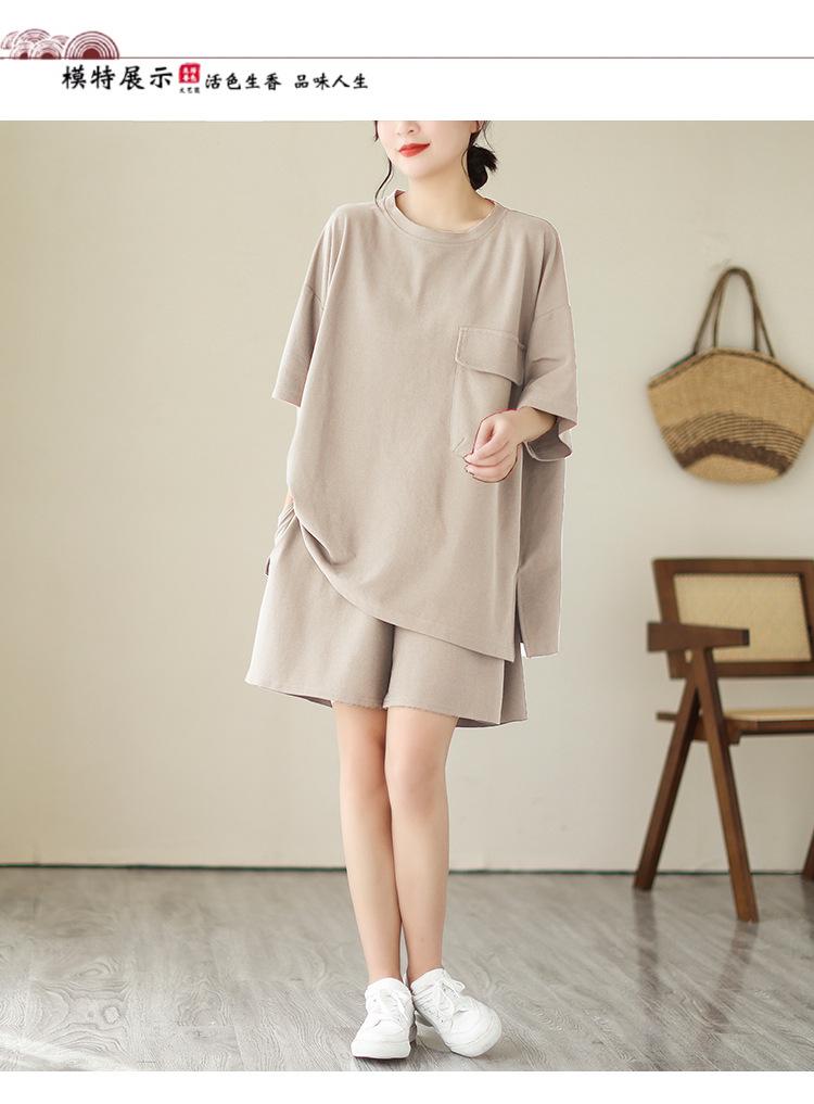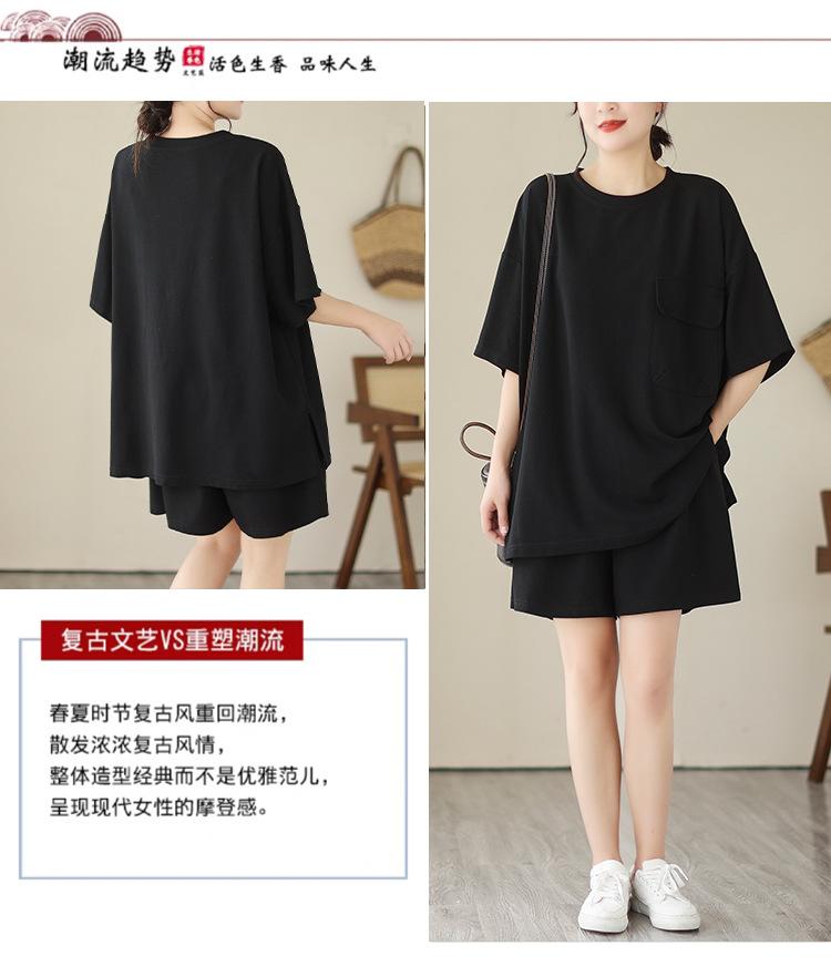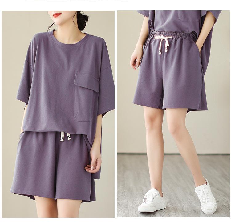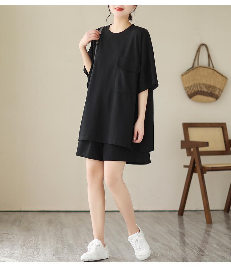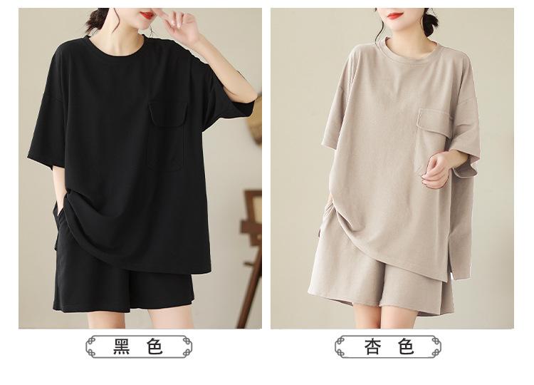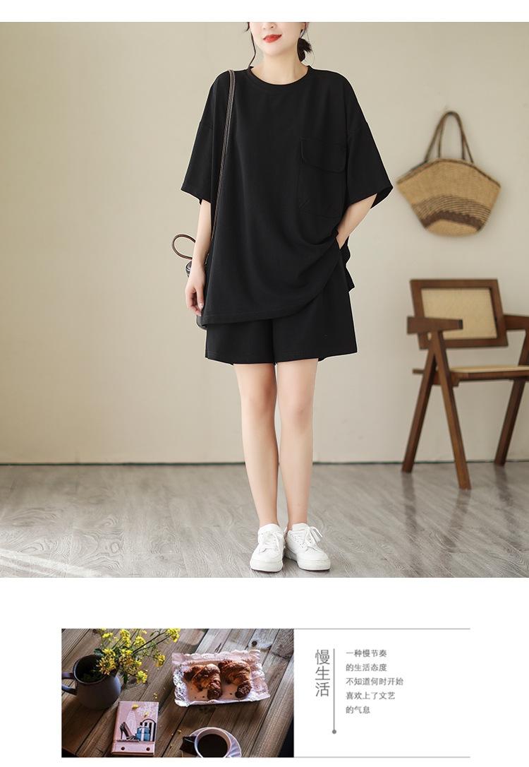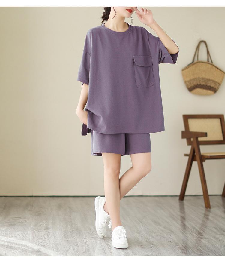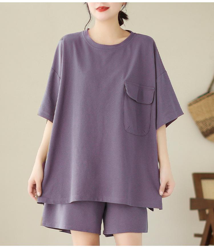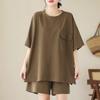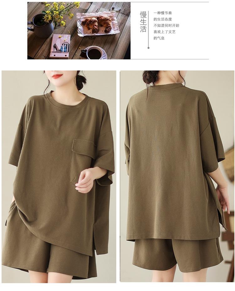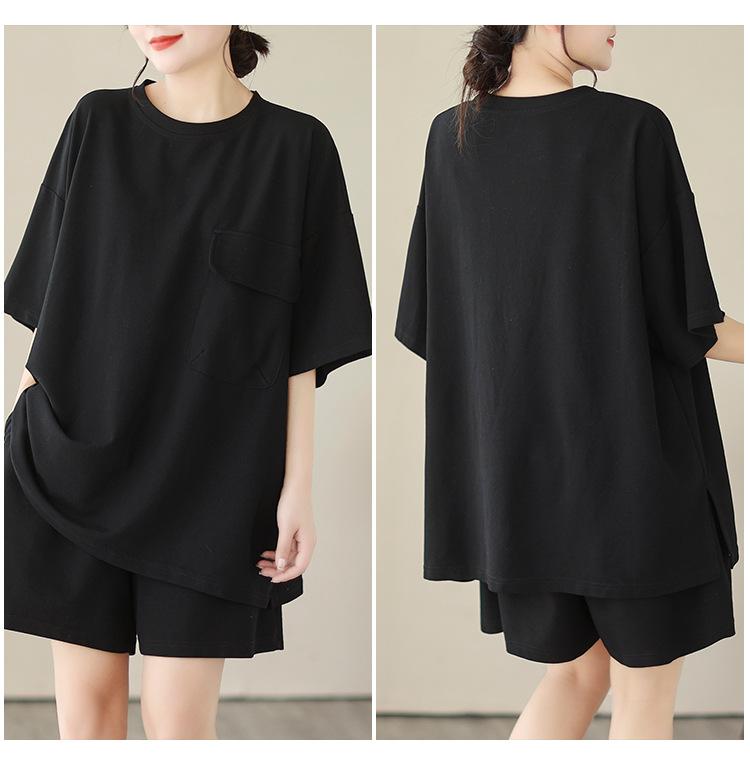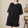 Talla Grande para Mujer 2024 Verano Moda Reductora de Edad de Hermana Gordita Conjunto de Shorts de Pierna Ancha Conjunto de Dos Piezas Holgado de Manga Corta