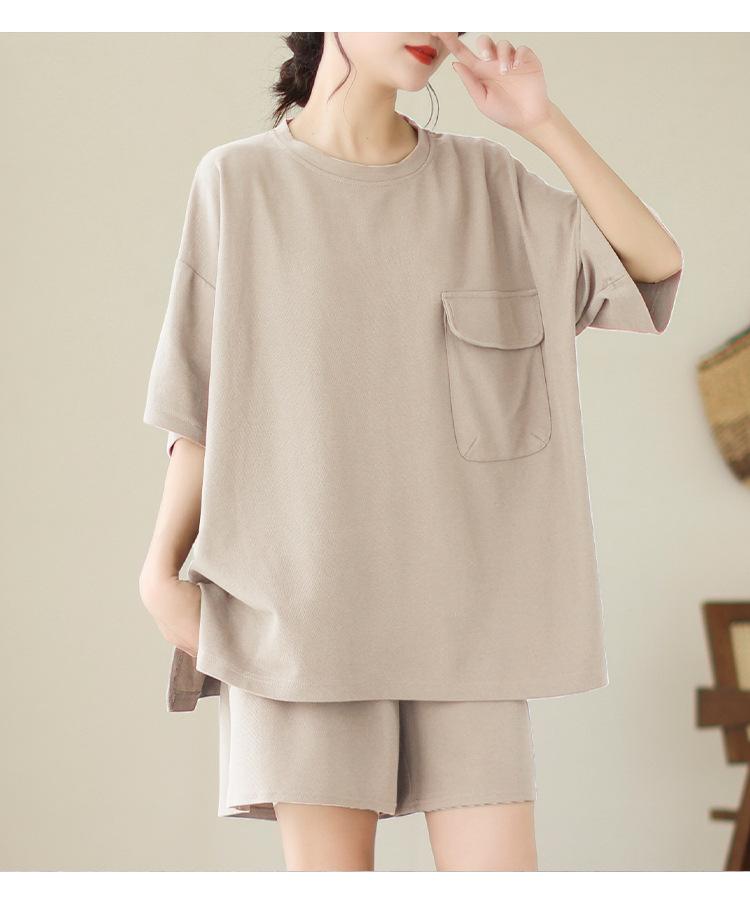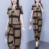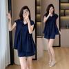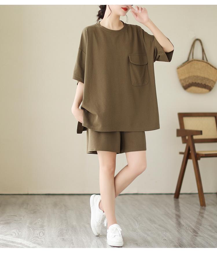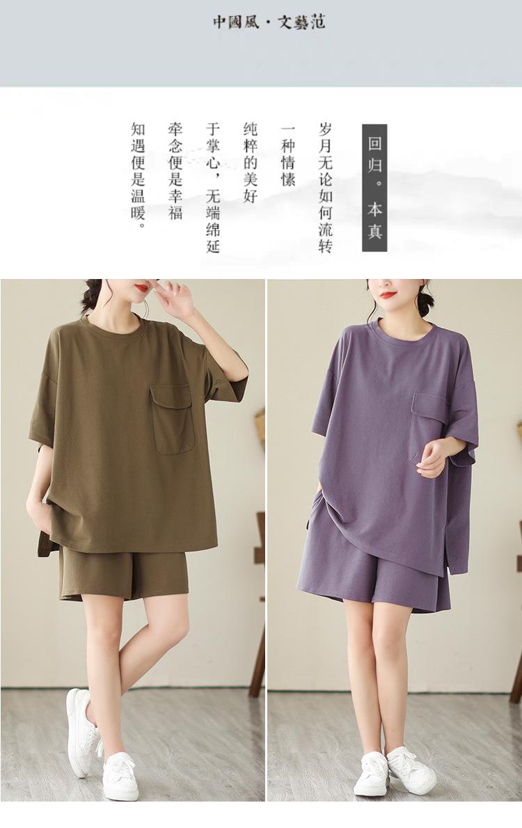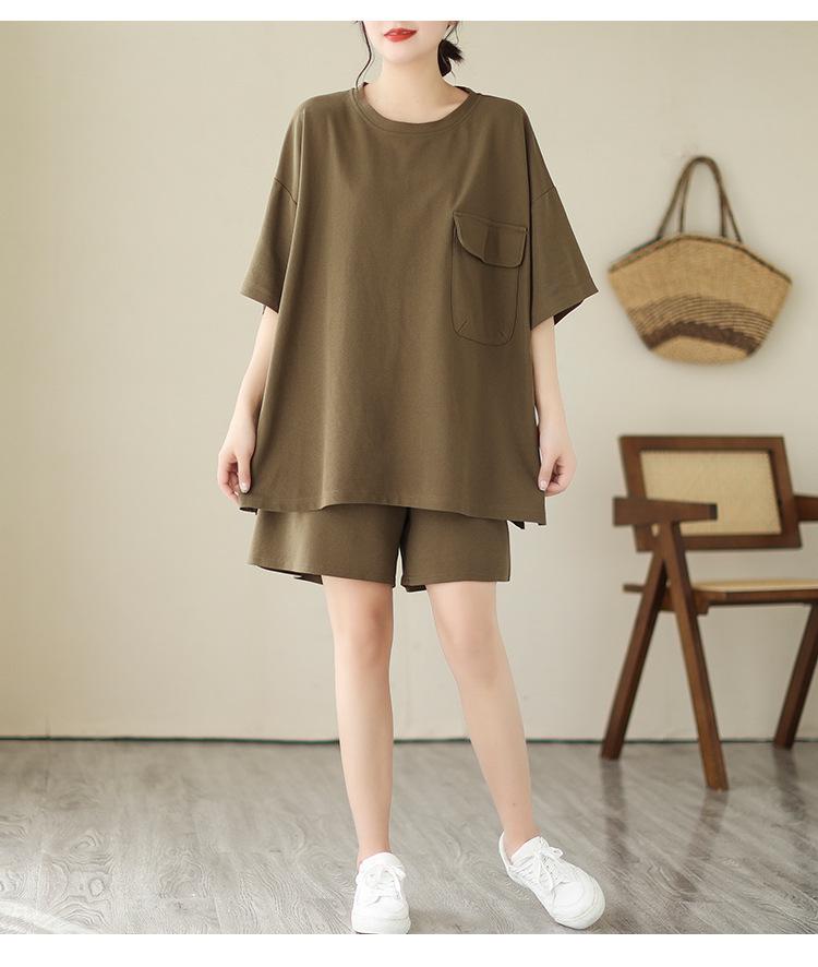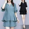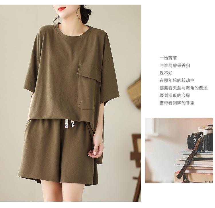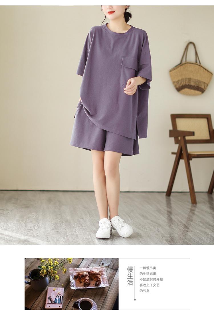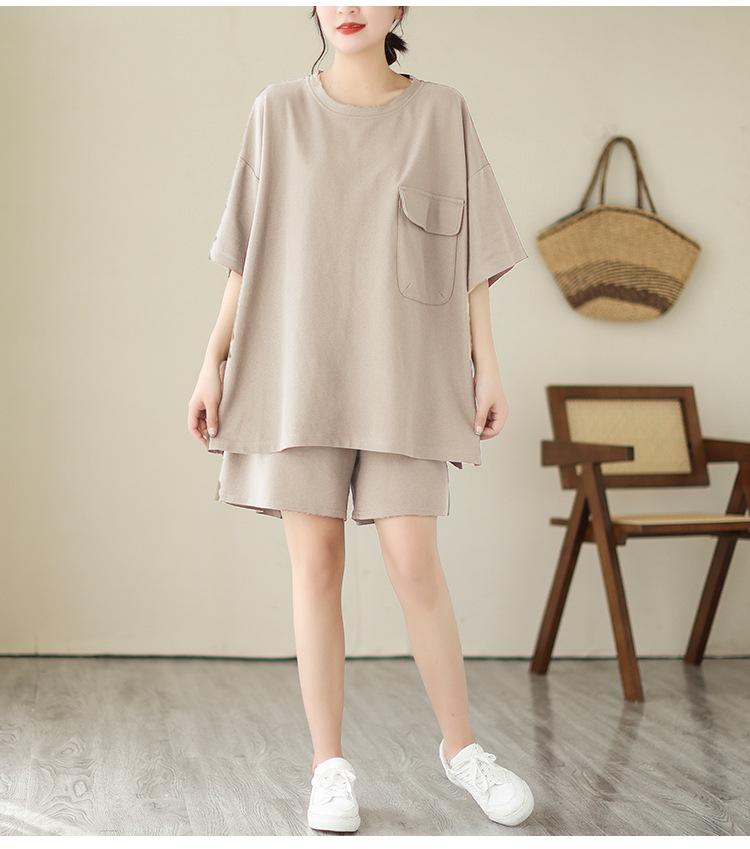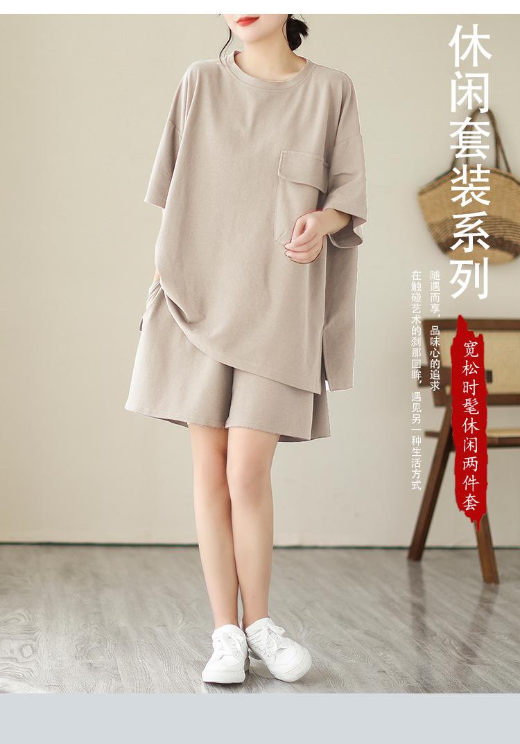 Talla Grande para Mujer 2024 Verano Moda Reductora de Edad de Hermana Gordita Conjunto de Shorts de Pierna Ancha Conjunto de Dos Piezas Holgado de Manga Corta