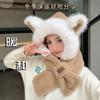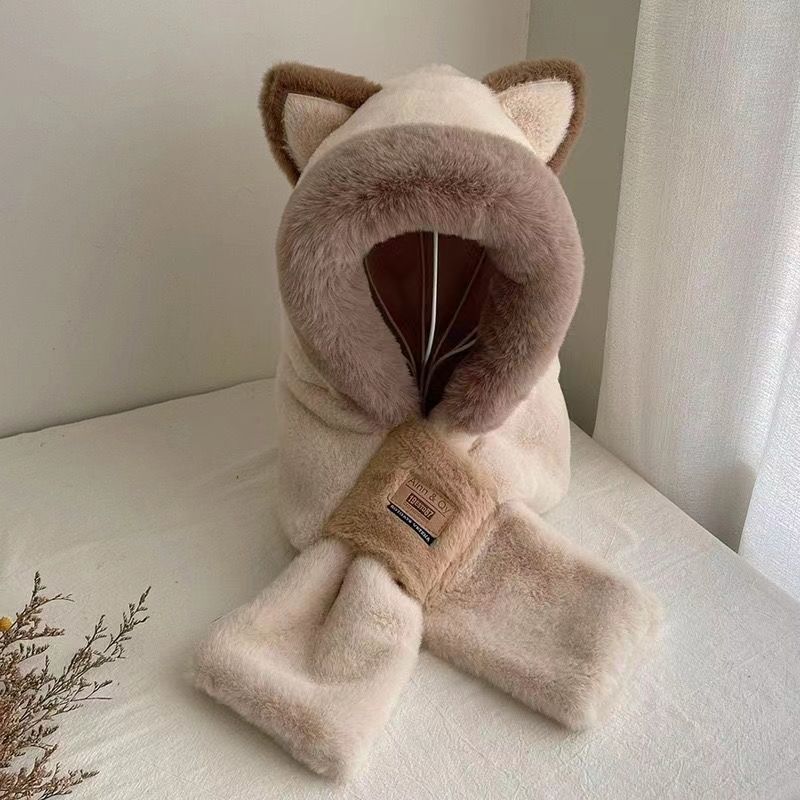 Bonita bufanda con orejas de zorro, gorro de lana gruesa de una pieza con forro polar para mujer, protección para los oídos a prueba de frío para invierno, conjunto de dos piezas para ciclismo.