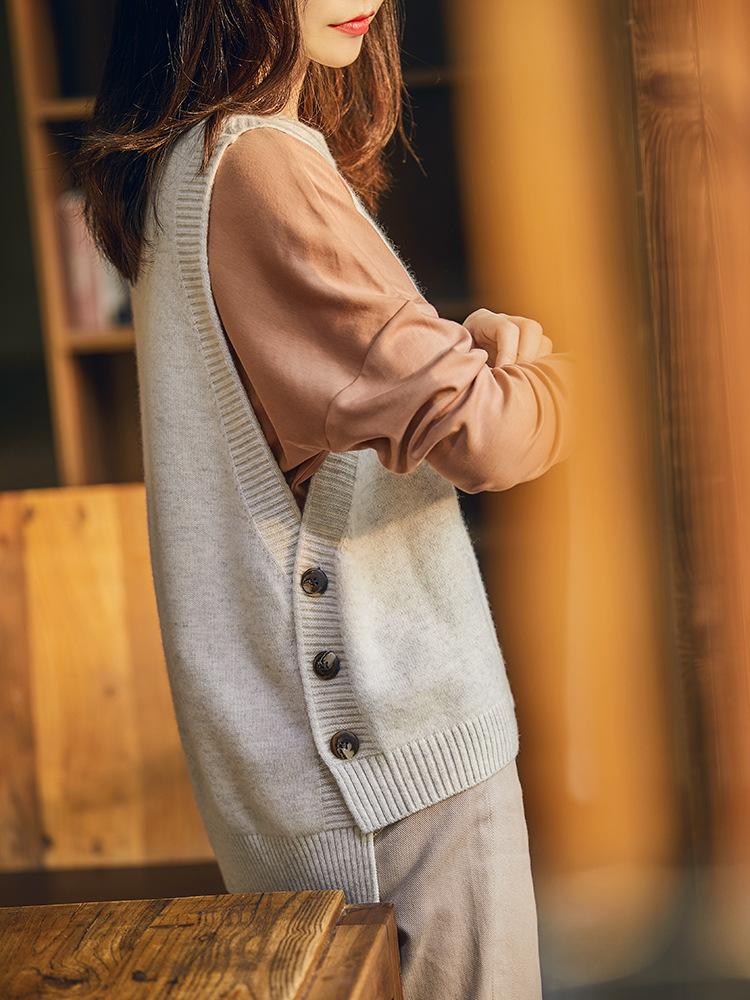 Chaleco de Punto de Lana Estilo Académico Nuevo de Otoño e Invierno para Mujer Chaleco Holgado Suéter Ropa Exterior Estilo Coreano Chaleco Relajado