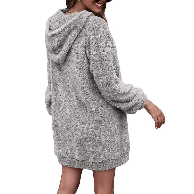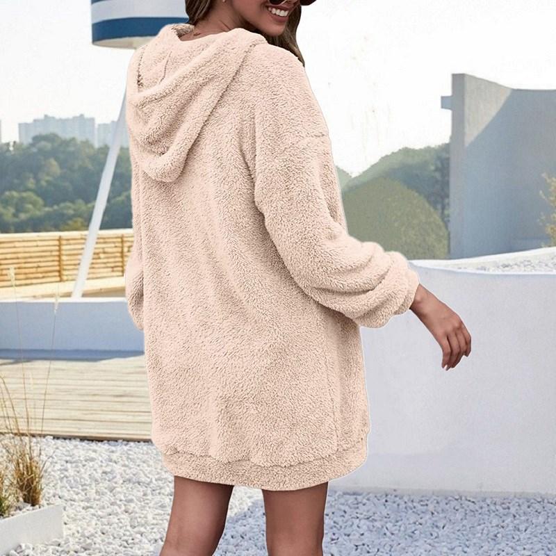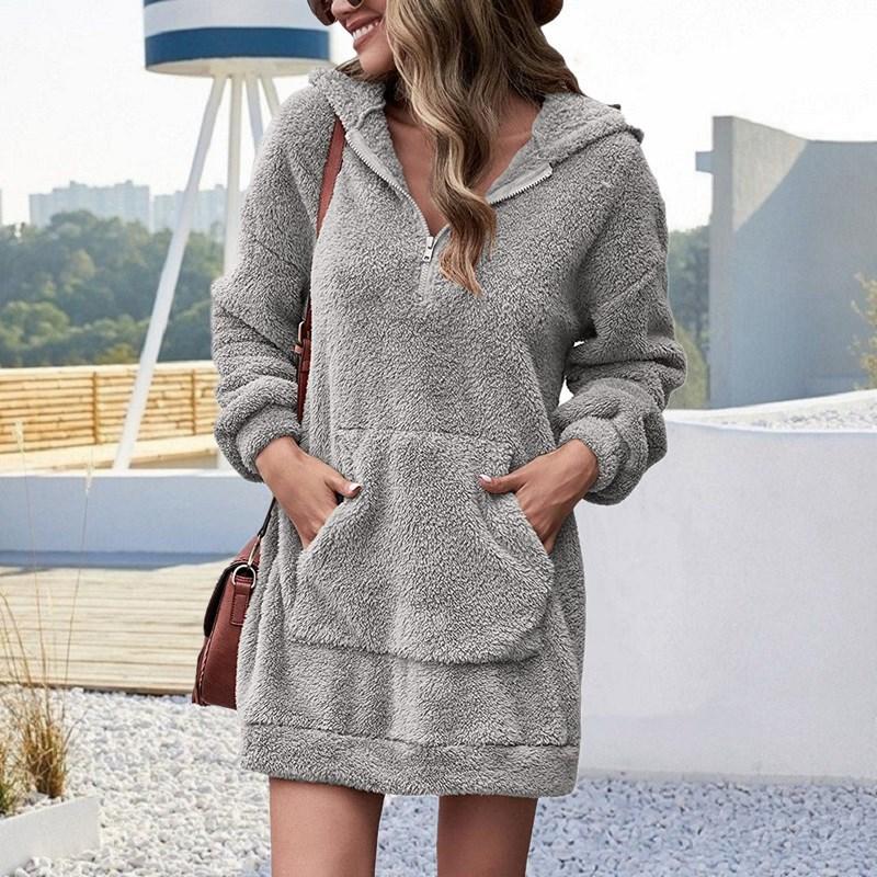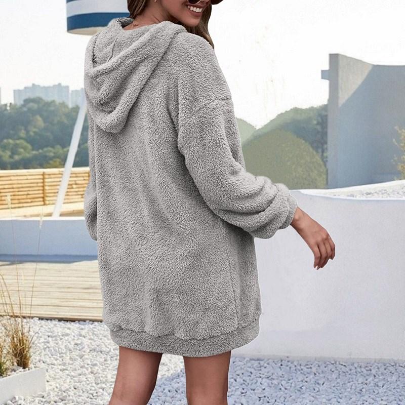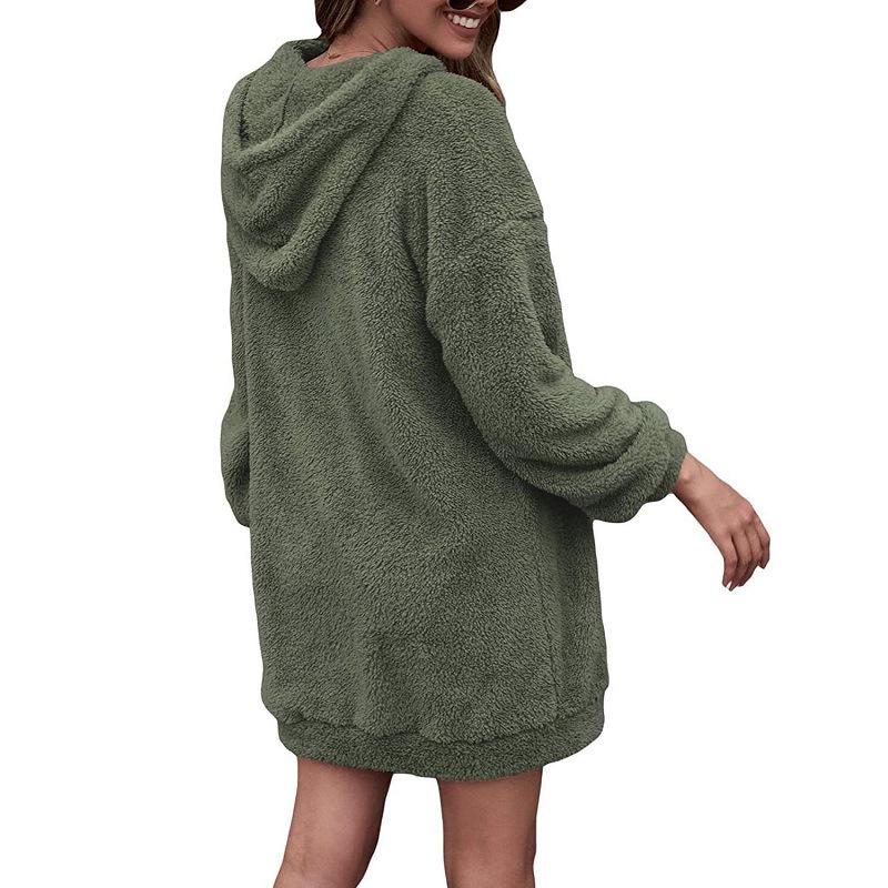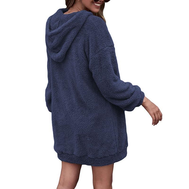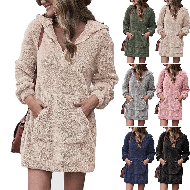 Abrigo de suéter de bolsillo de felpa con cremallera suelta y capucha de terciopelo de doble cara para mujer, otoño e invierno transfronterizo europeo y americano, novedad de 2022