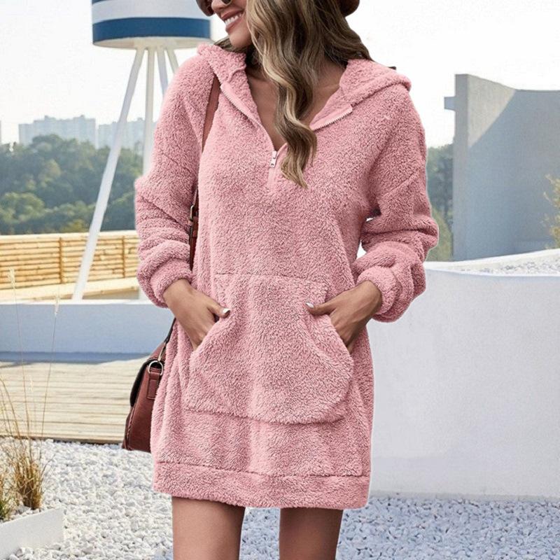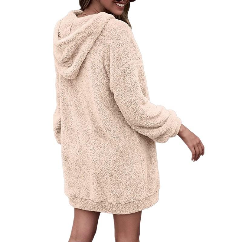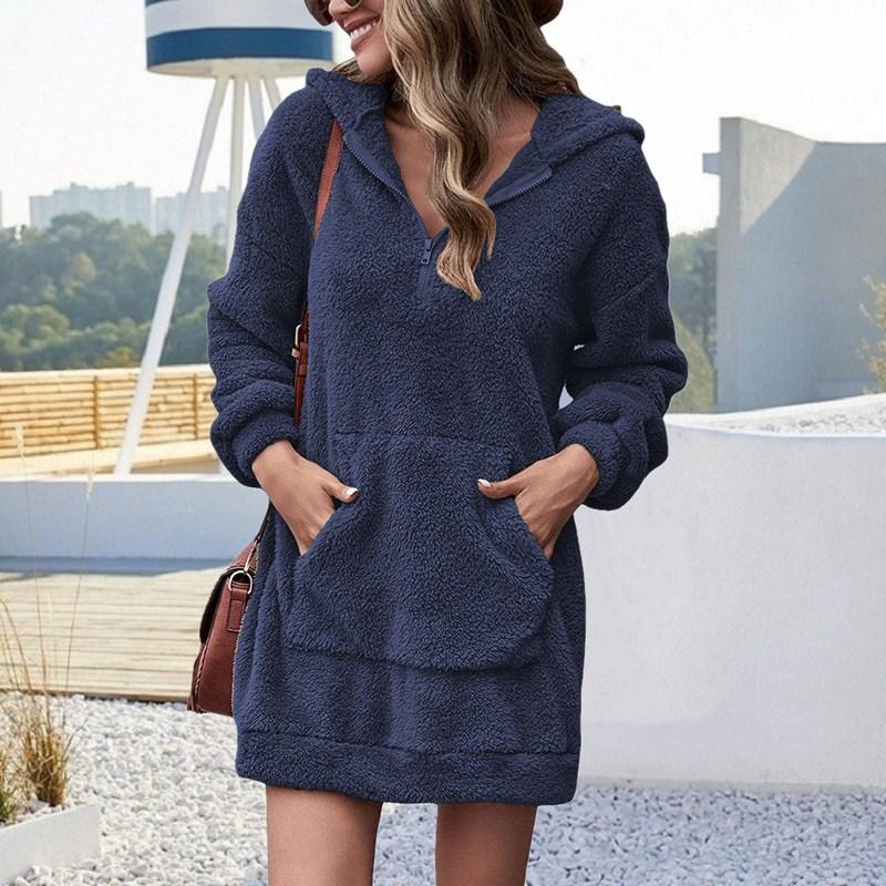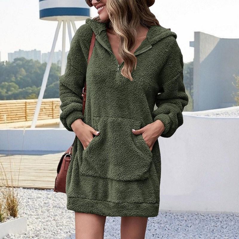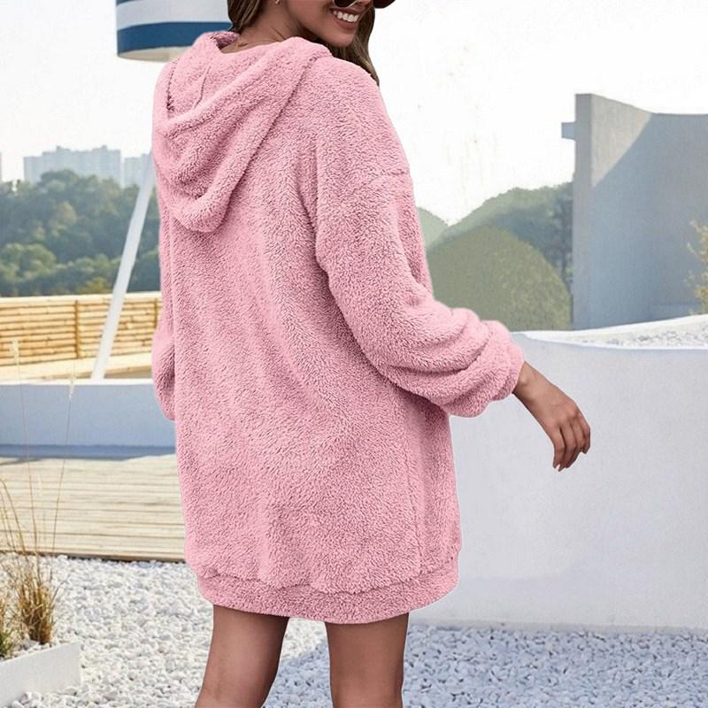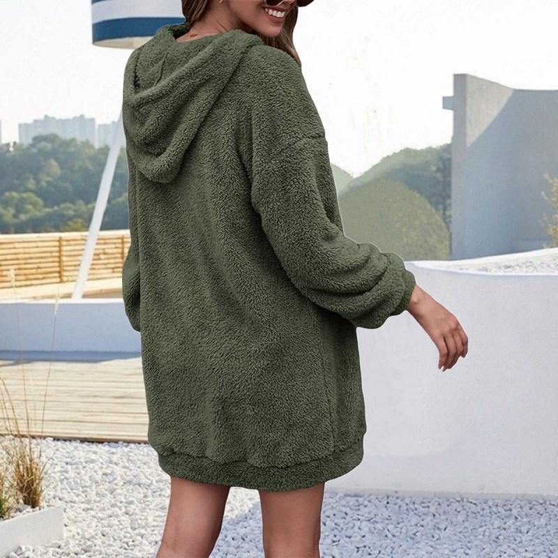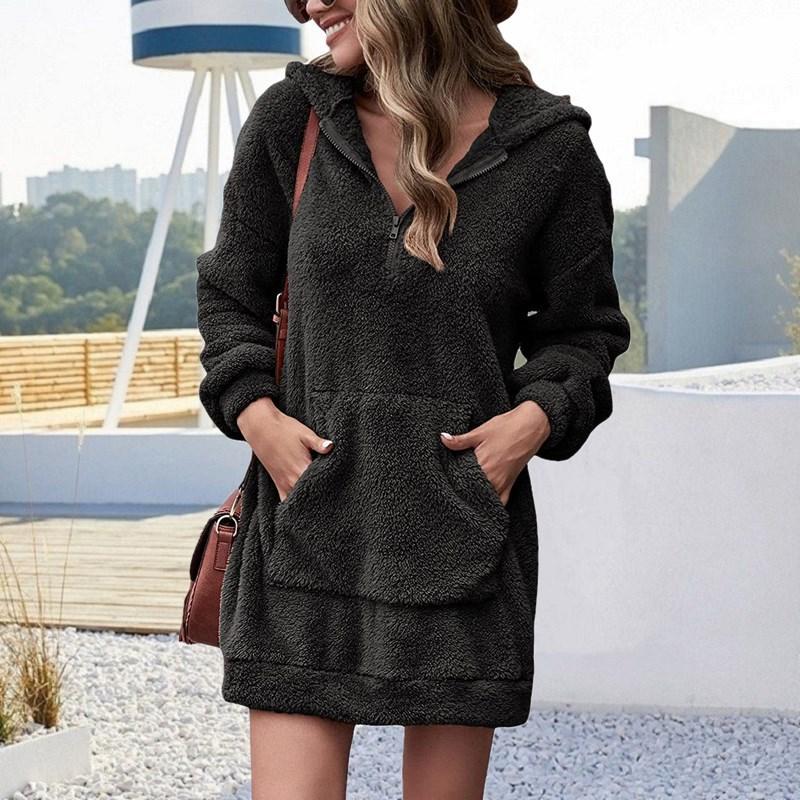 Abrigo de suéter de bolsillo de felpa con cremallera suelta y capucha de terciopelo de doble cara para mujer, otoño e invierno transfronterizo europeo y americano, novedad de 2022