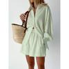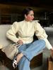 Camisa europea y americana de otoño 2022 para mujer, top de manga abullonada de jacquard, pantalones cortos, traje informal de estilo urbano