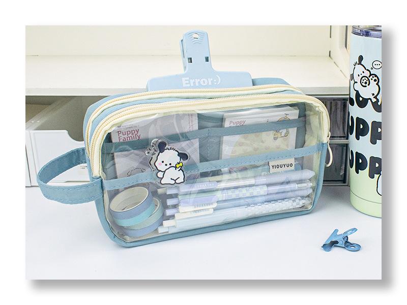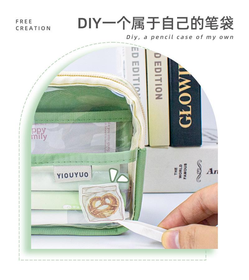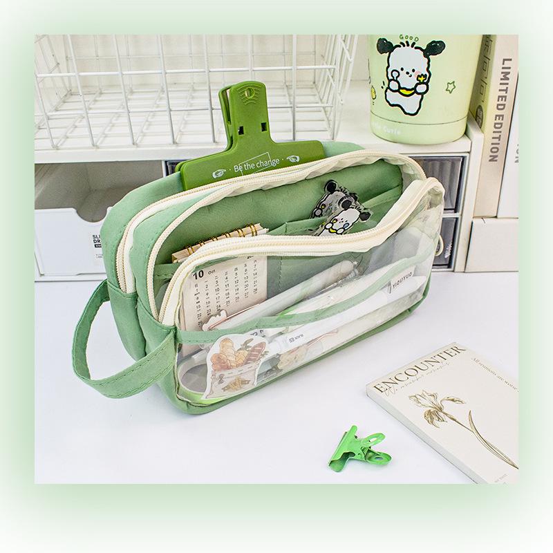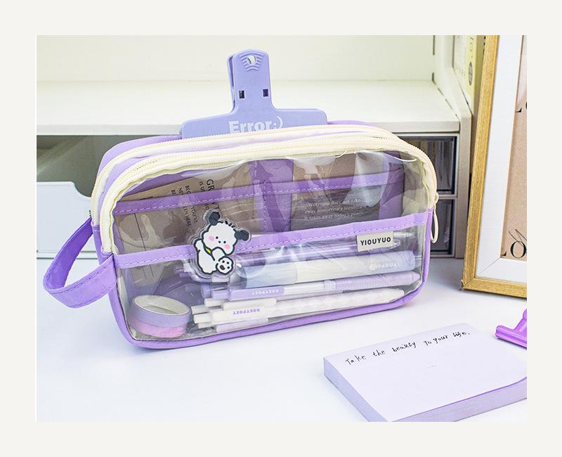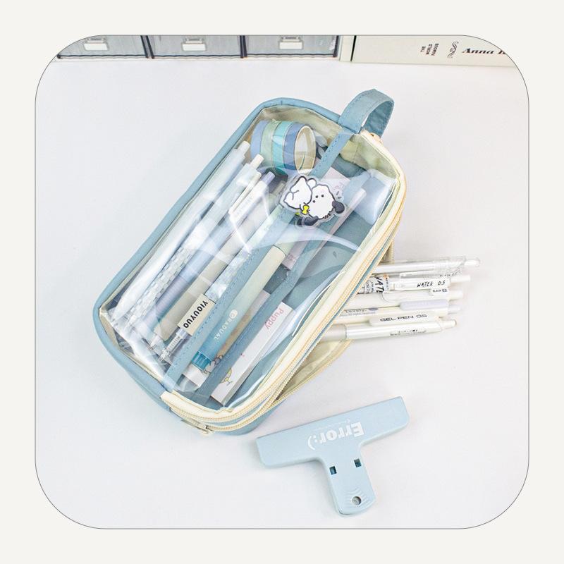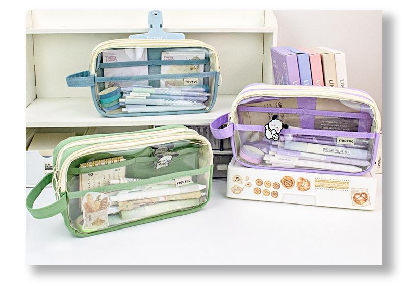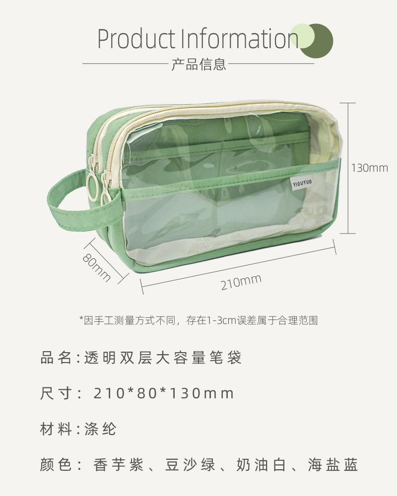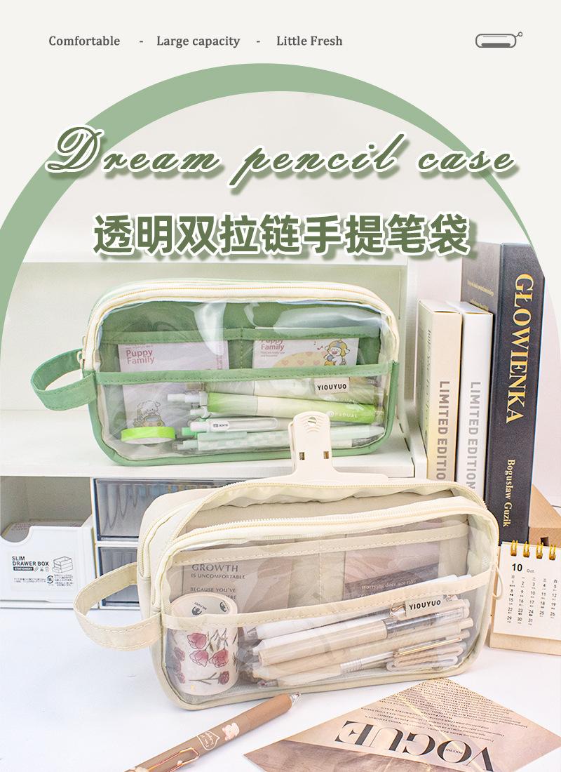 Estuche para lápices de estudiante de alto valor, transparente, con doble cremallera, portátil, de gran capacidad, para papelería, bolsa de almacenamiento multifuncional y fresca.