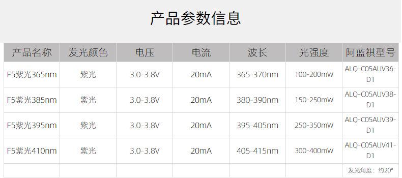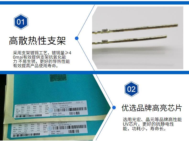 F5 round head purple light 365nm, F5 round head purple light 385nm, F5 round head purple light 395nm, 5mm long...