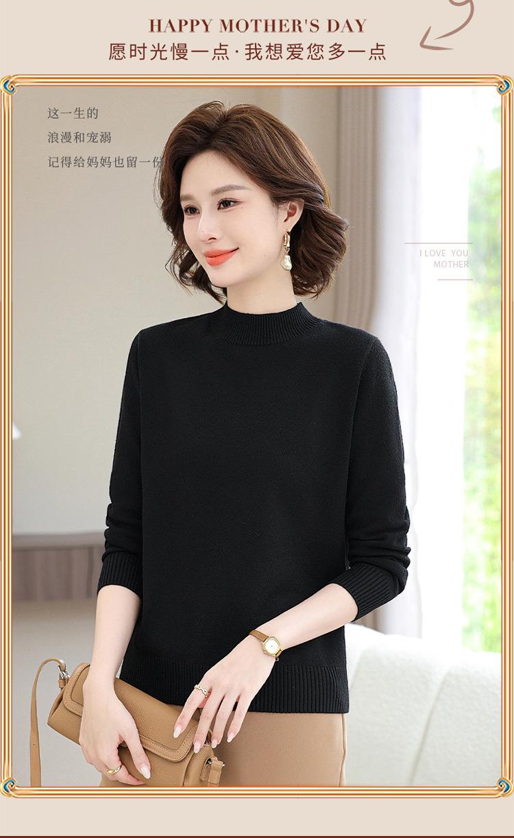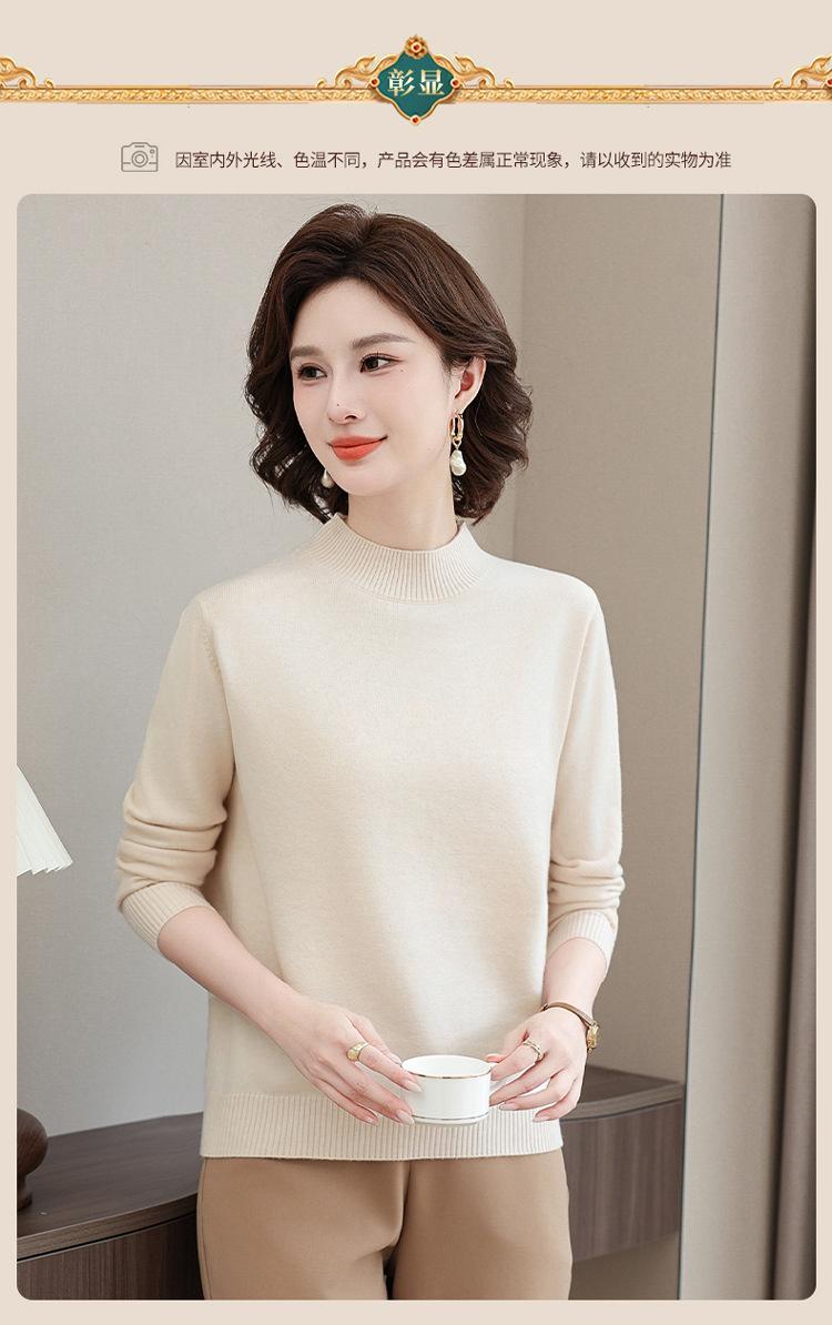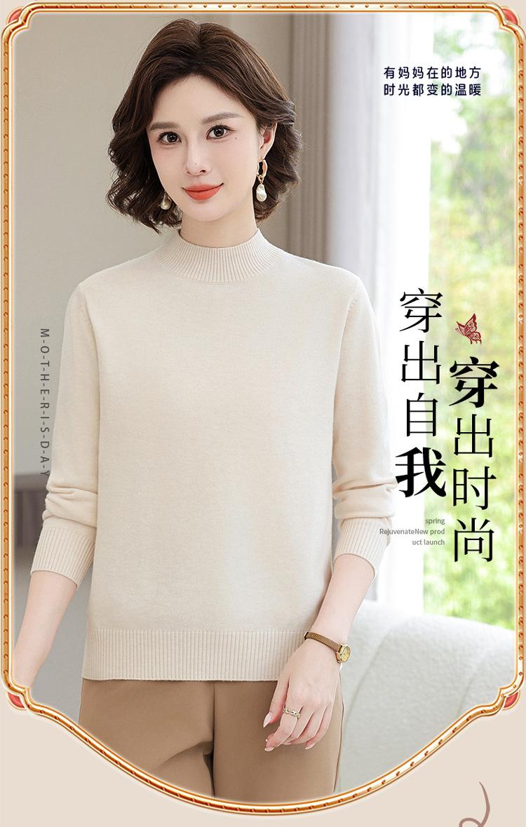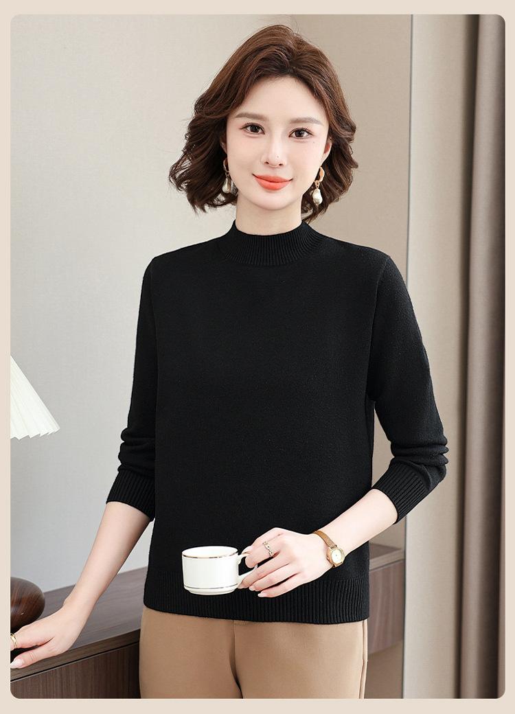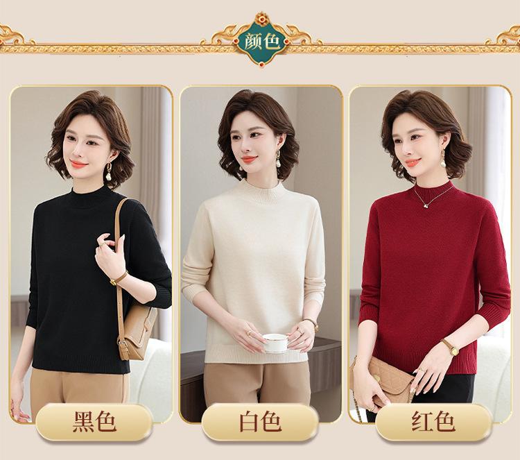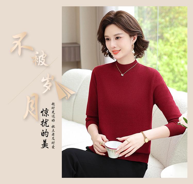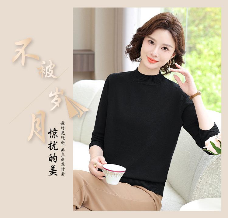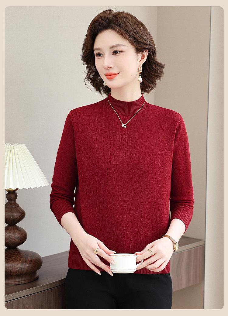 Suéter Estilo Mamá 2025 Otoño/Invierno Cuello Alto Base Camisa Tejido de Punto Color Sólido Moda Capa Interior para Ropa de Mujer de Mediana Edad y Anciana