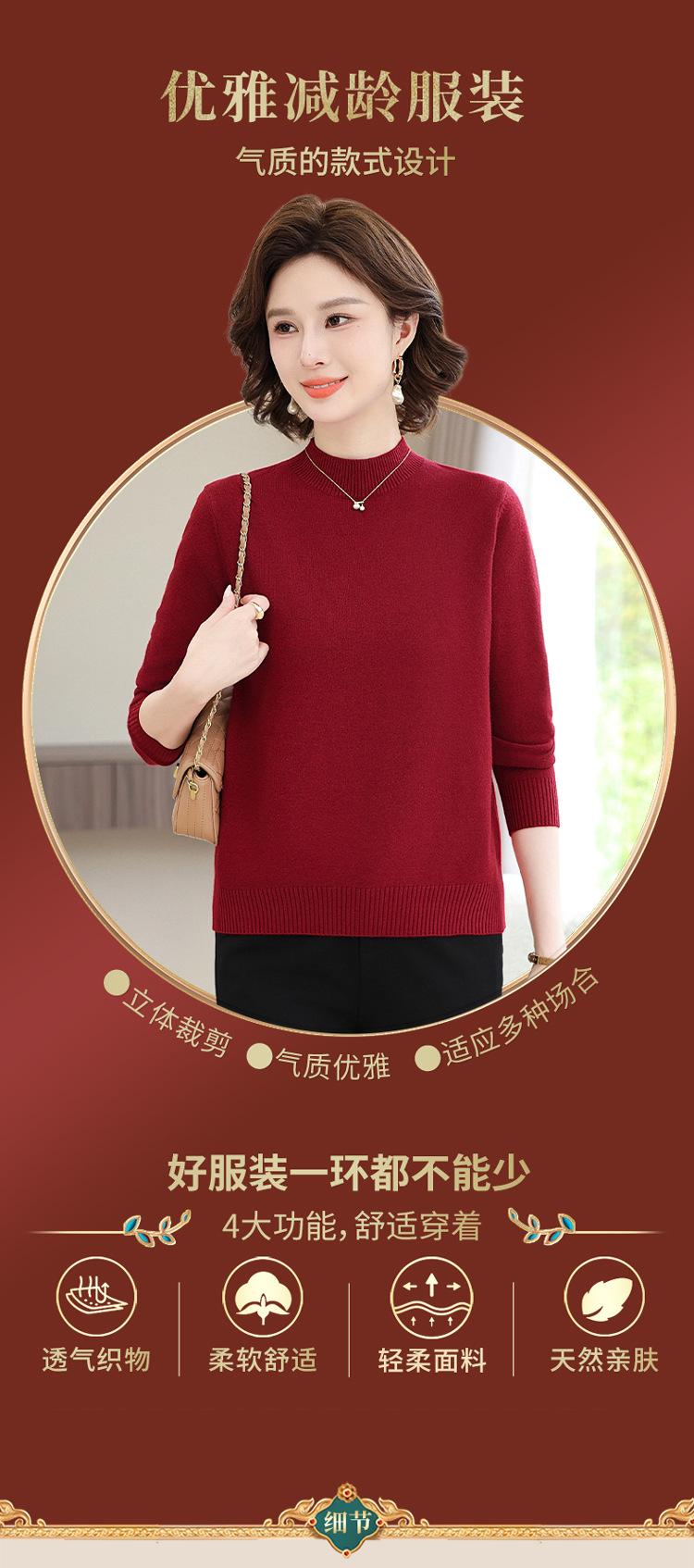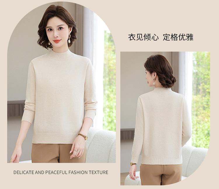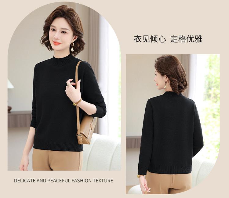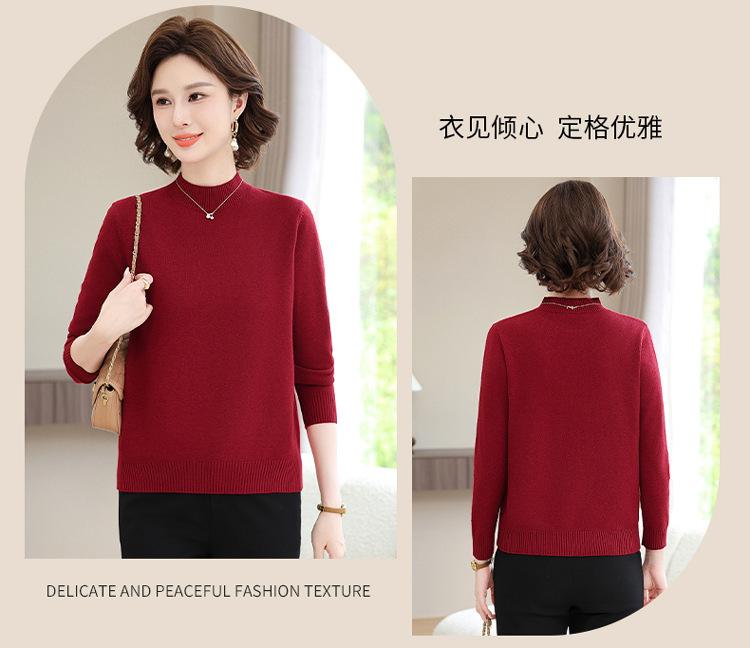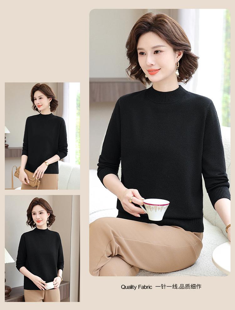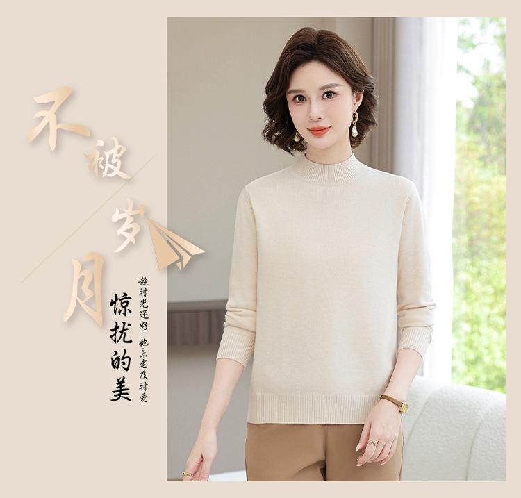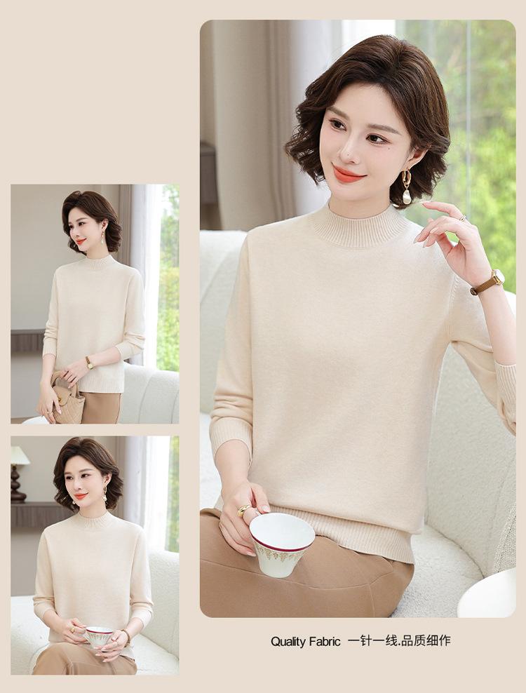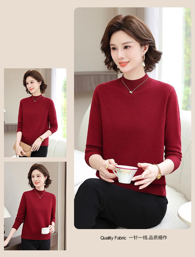 Suéter Estilo Mamá 2025 Otoño/Invierno Cuello Alto Base Camisa Tejido de Punto Color Sólido Moda Capa Interior para Ropa de Mujer de Mediana Edad y Anciana