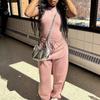 Pantalones deportivos de dos piezas para mujer, estilo casual, ajustados, con estampado de moda transfronterizo europeo y americano