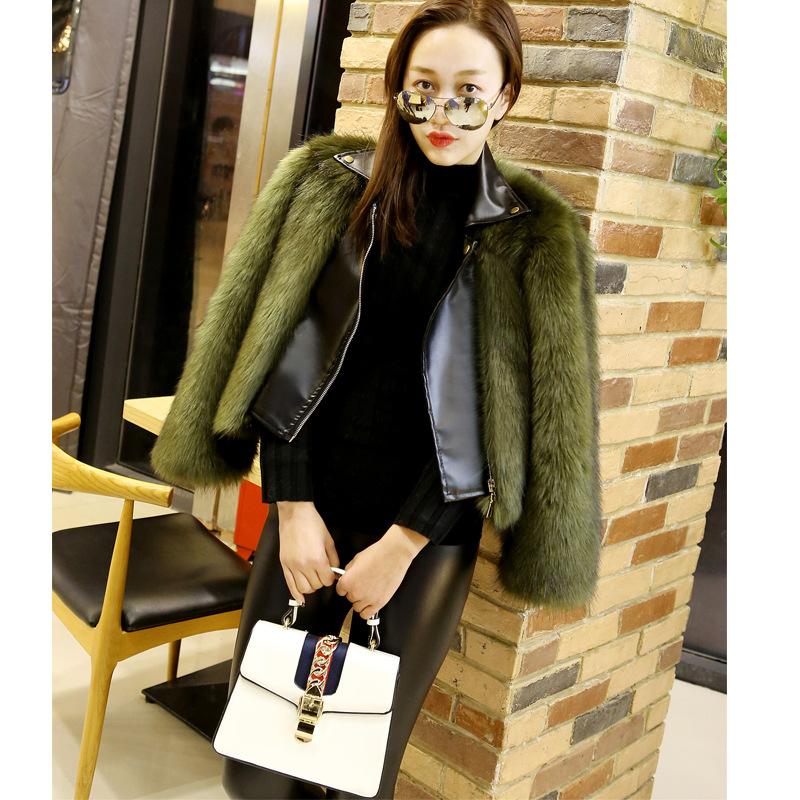 2025 Nuevo Otoño e Invierno Imitación Piel Piel de Zorro Abrigo Corto Talla Grande Pu Costuras Ropa de Motocicleta para Mujer Moderna Estilo Joven