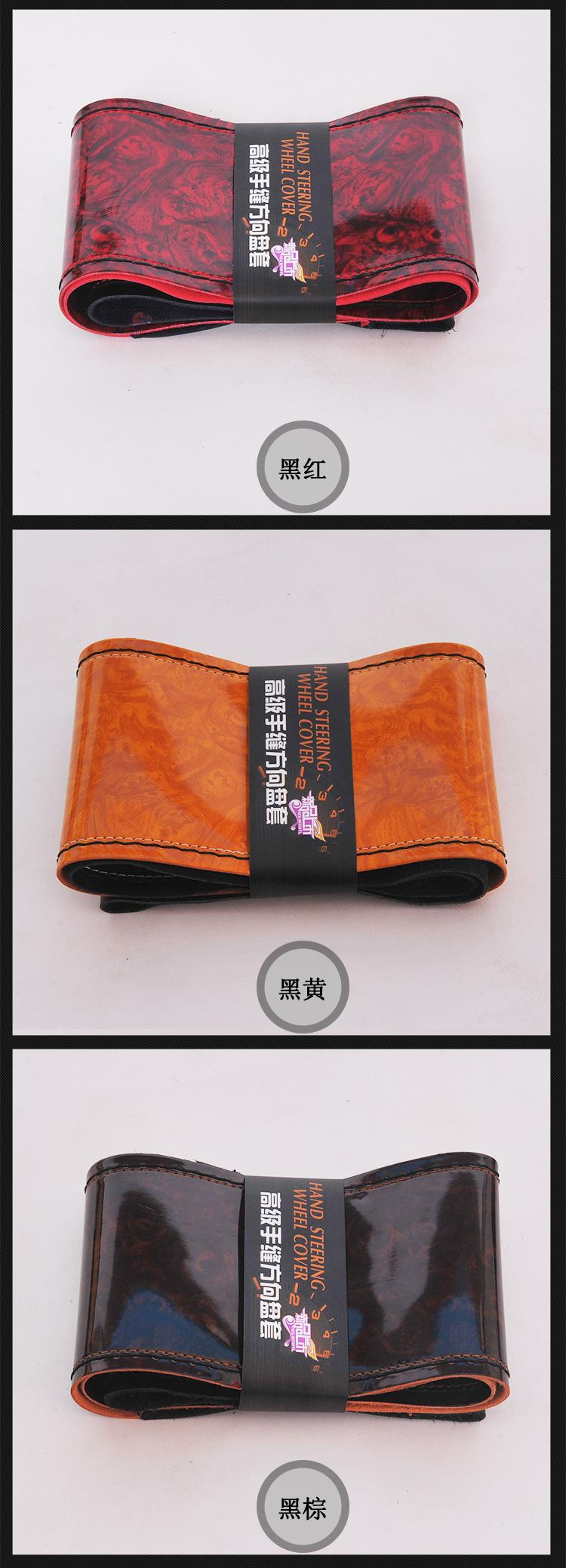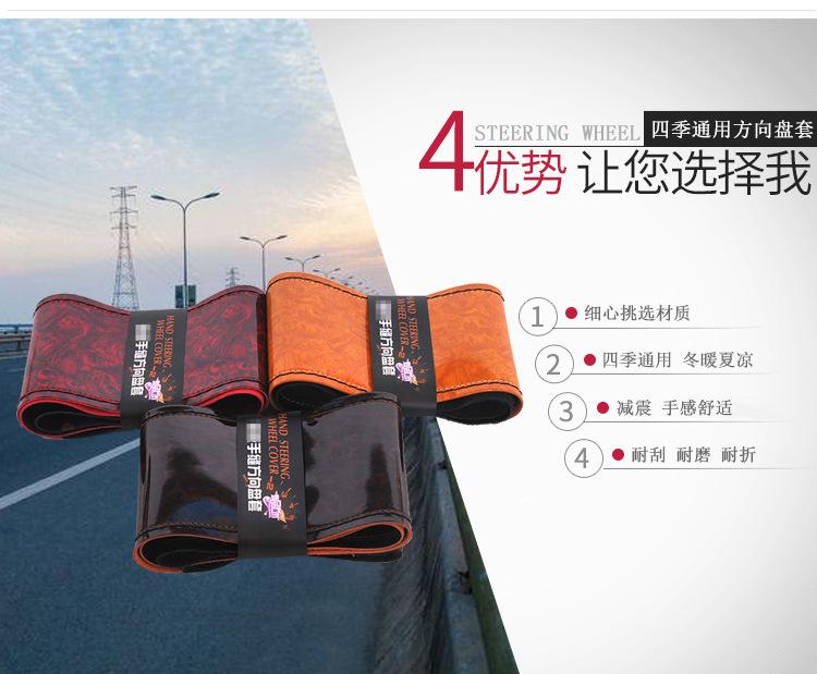 Funda universal para manillar de coche, antideslizante, transpirable y con costuras de cuero, con diseño de madera de durazno, cosida a mano y deportiva, para las cuatro estaciones