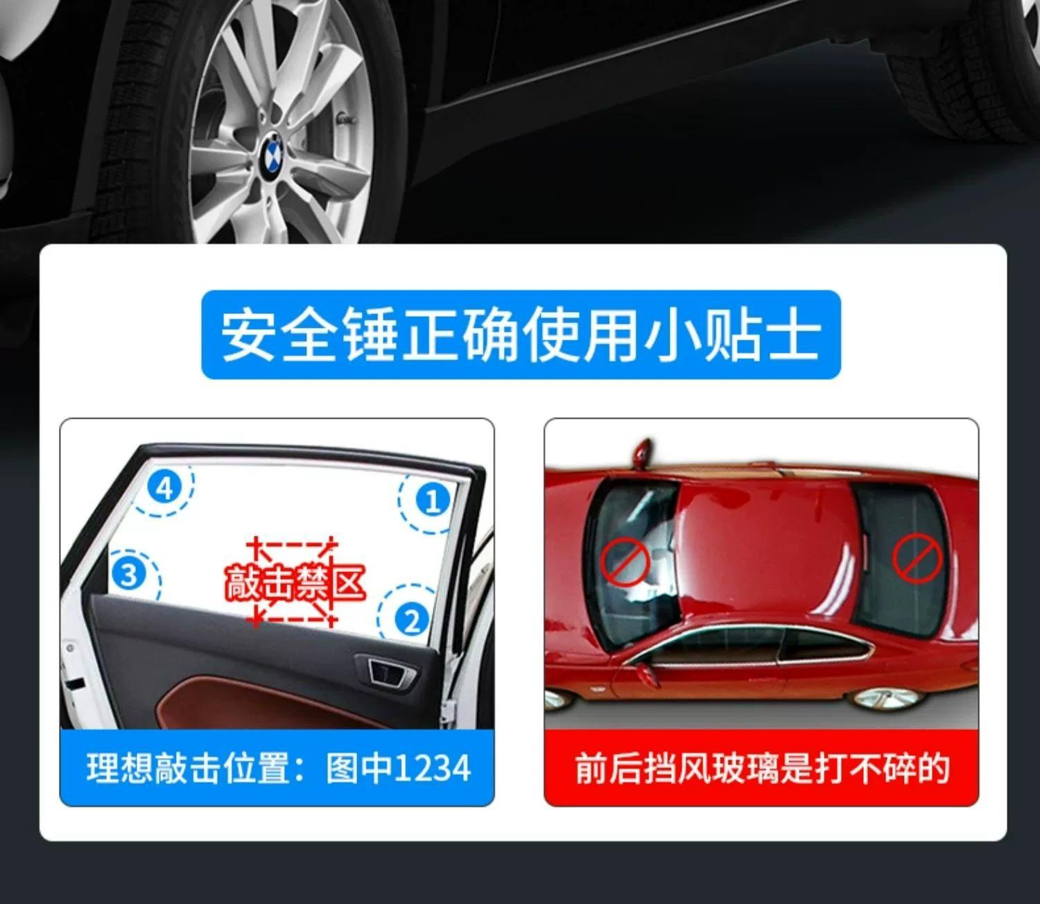 Martillo de seguridad para el automóvil Escape de automóvil Rompeventanas Martillo salvavidas Suministros para el automóvil Libro completo Emergencia para romper el vidrio en un segundo