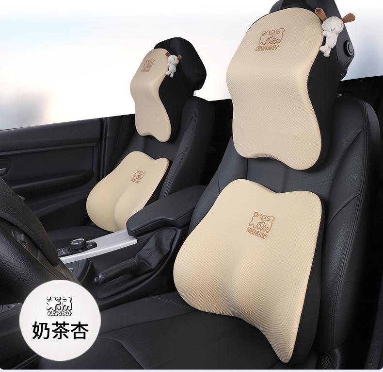 Almohada para el cuello y la cabeza del automóvil: un par de almohadas de espuma viscoelástica de alta gama para el asiento de la cintura y el cuello del automóvil.