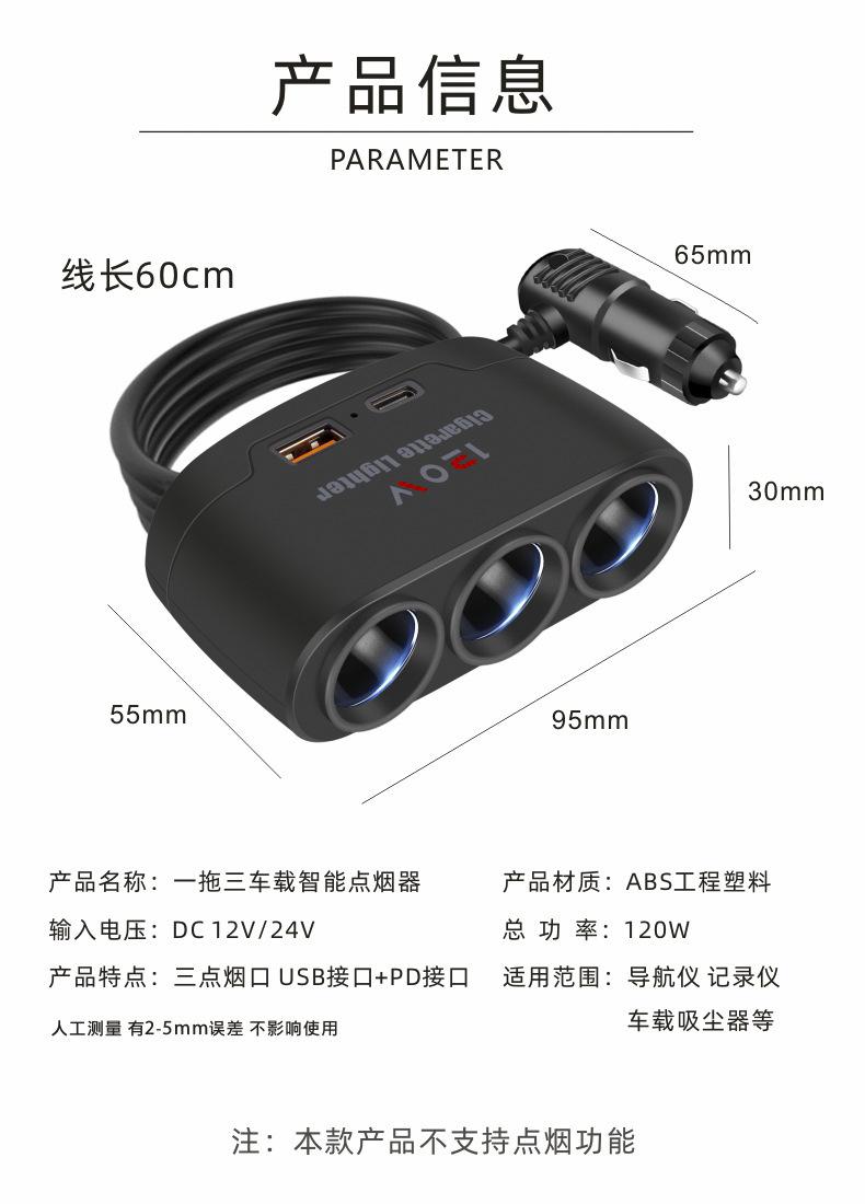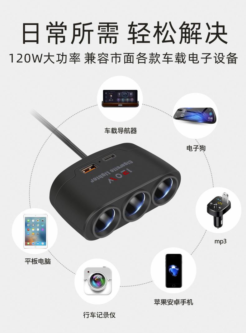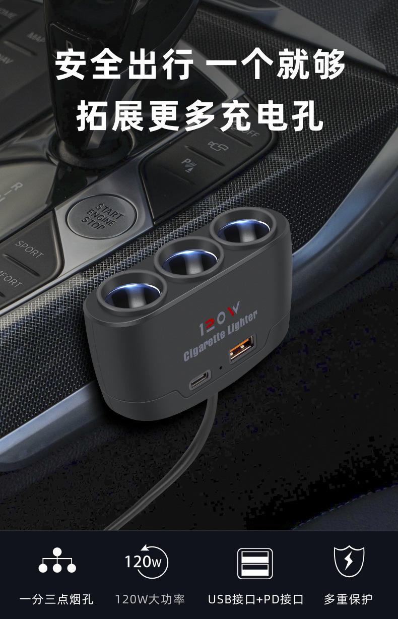 Cargador de Coche Popular Transfronterizo Adaptador Encendedor de Cigarrillos 120W Cargador de Coche de Carga Rápida de Alta Potencia