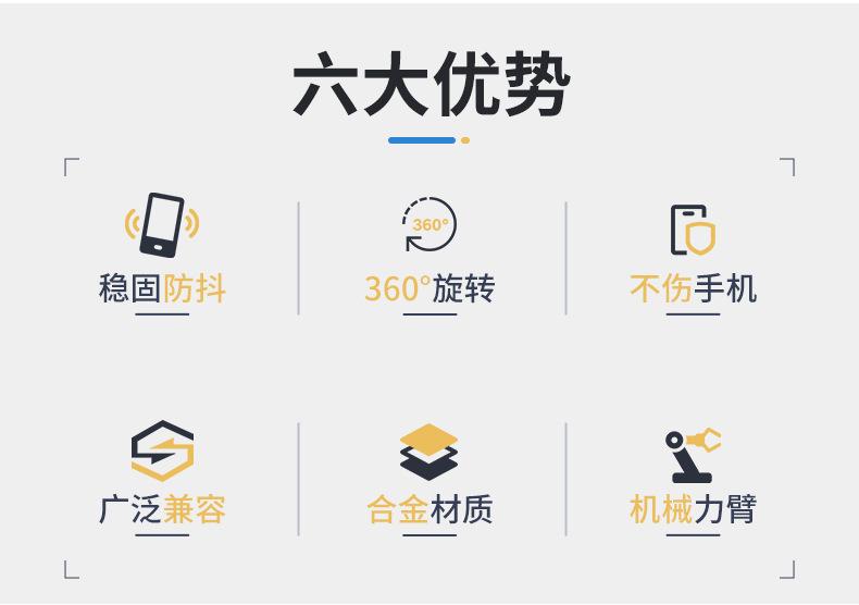 【3】 Sujeción triangular de soporte estable, estructura de articulación de engranajes de alta precisión, brazo de triple sujeción se bloquea automáticamente con soporte integral, sin aflojamiento. Uso estable sin vibraciones, goma suave antideslizante, bloqueo de instrumento, estable sin vibraciones. Compatible con una variedad de modelos, práctico y conveniente, ancho ajustable, se puede usar con funda