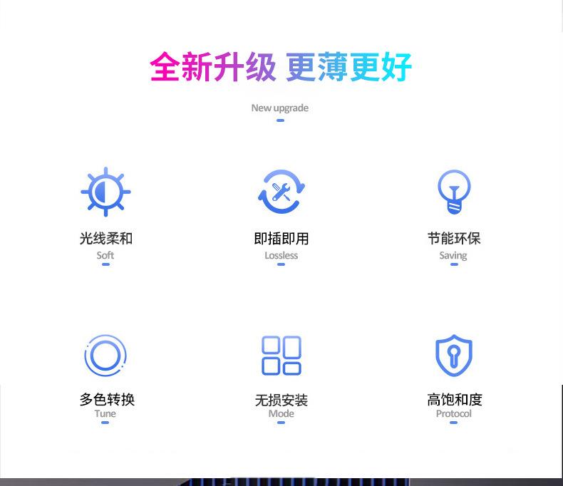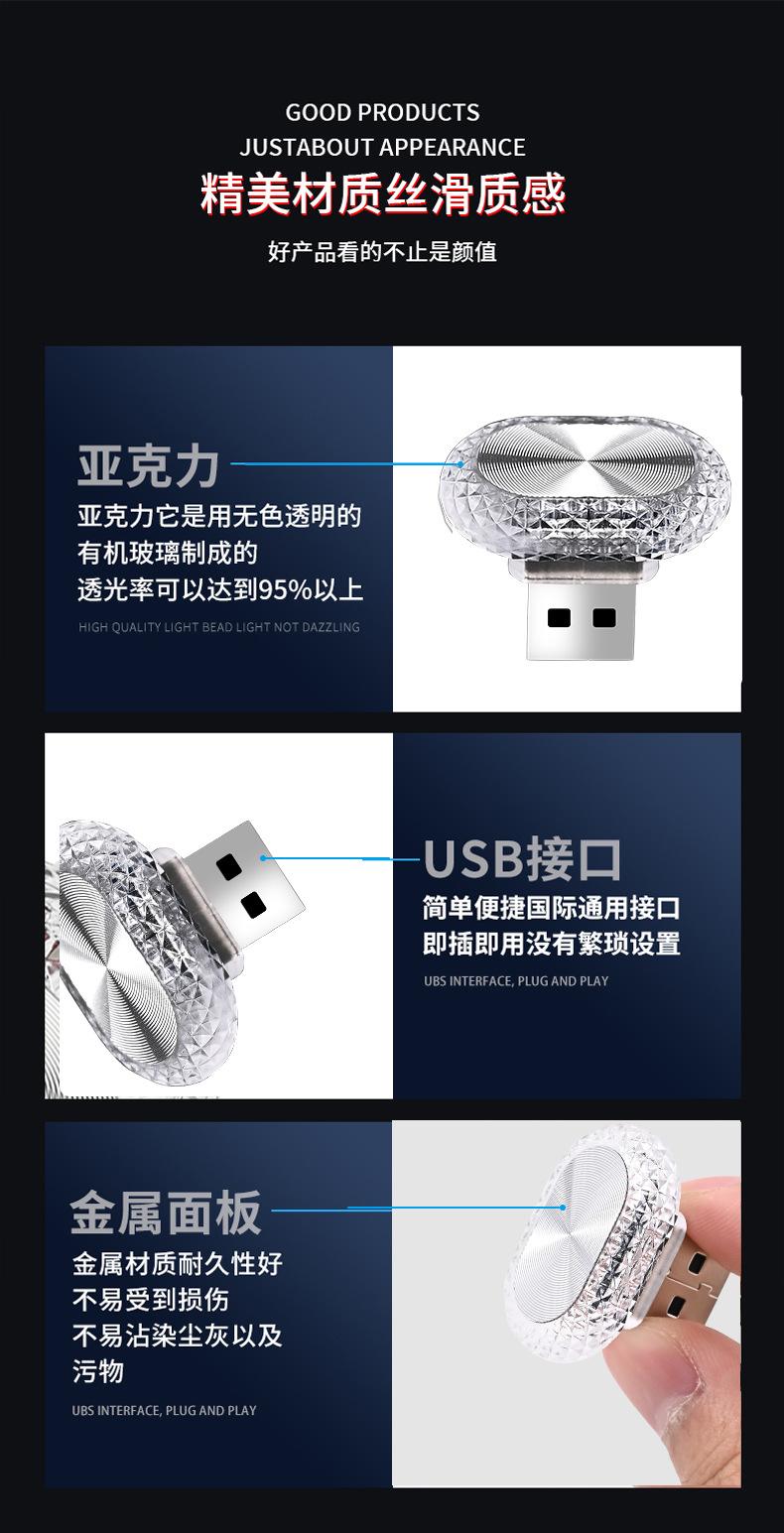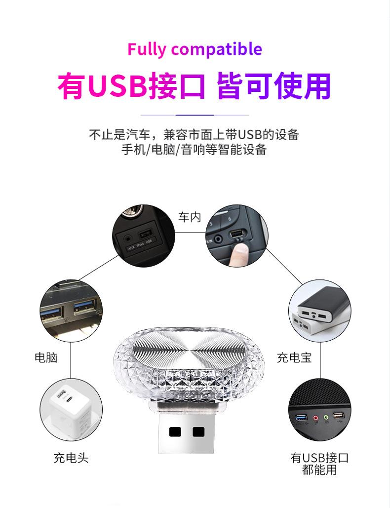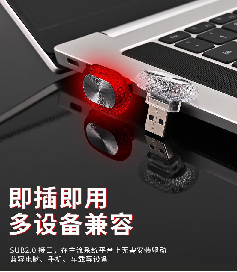 Lámpara de ambiente USB de segunda generación transfronteriza, lámpara LED de ambiente para automóvil, luz nocturna de ambiente sin cables, lámpara de decoración interior colorida