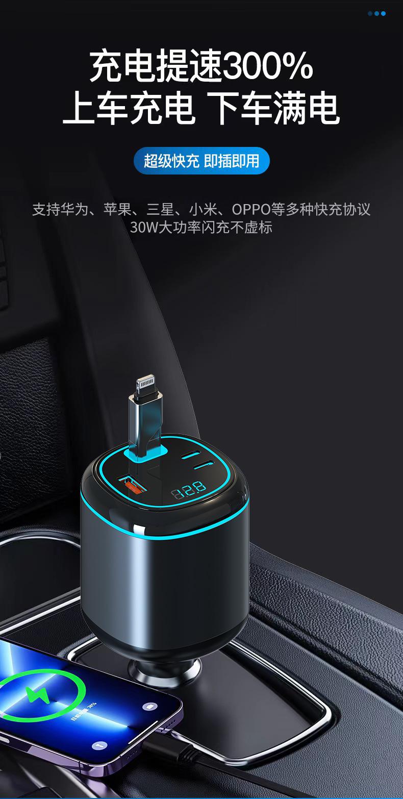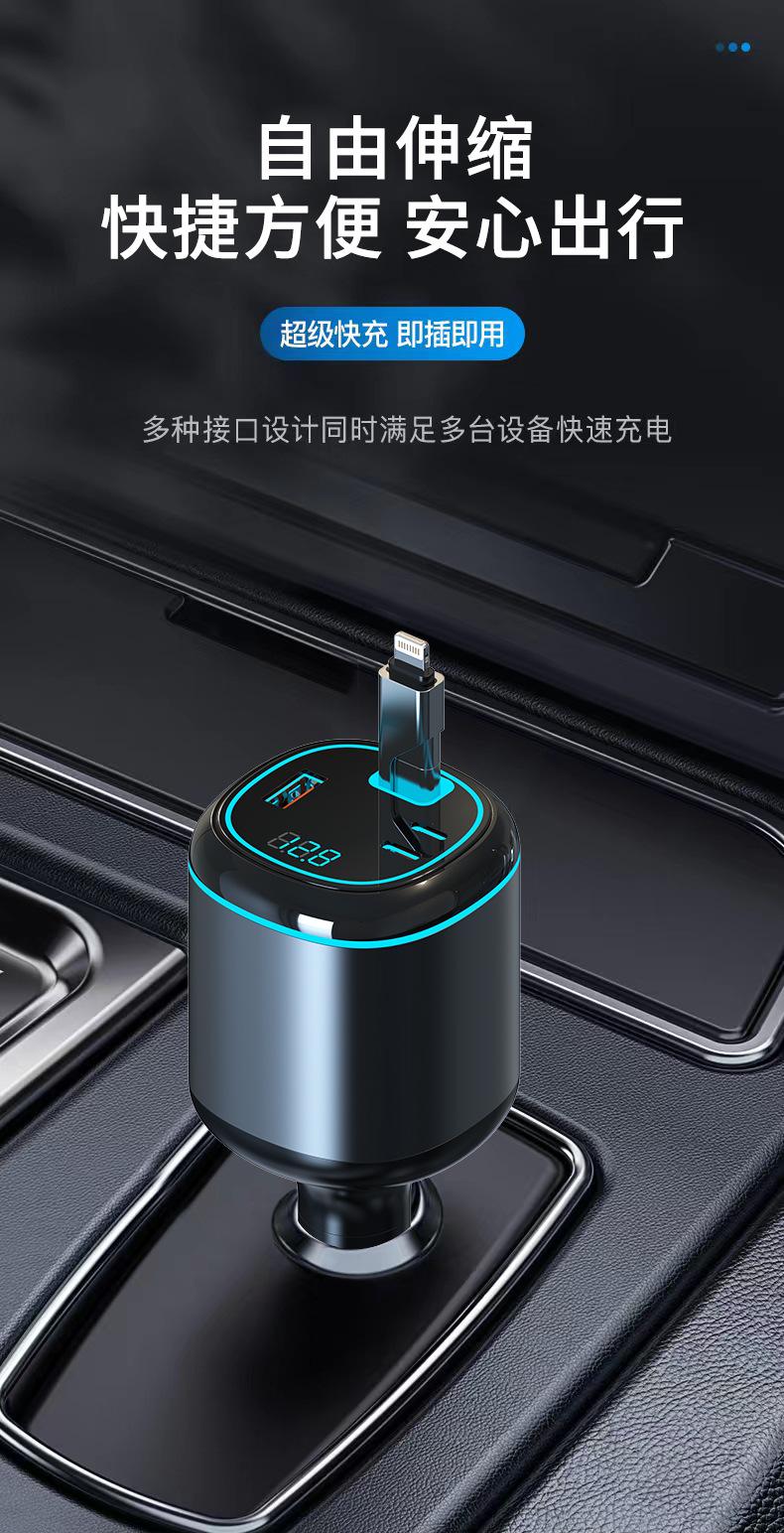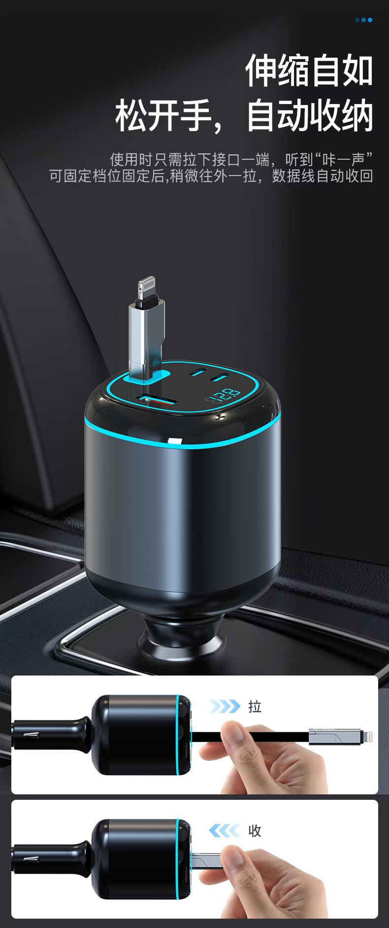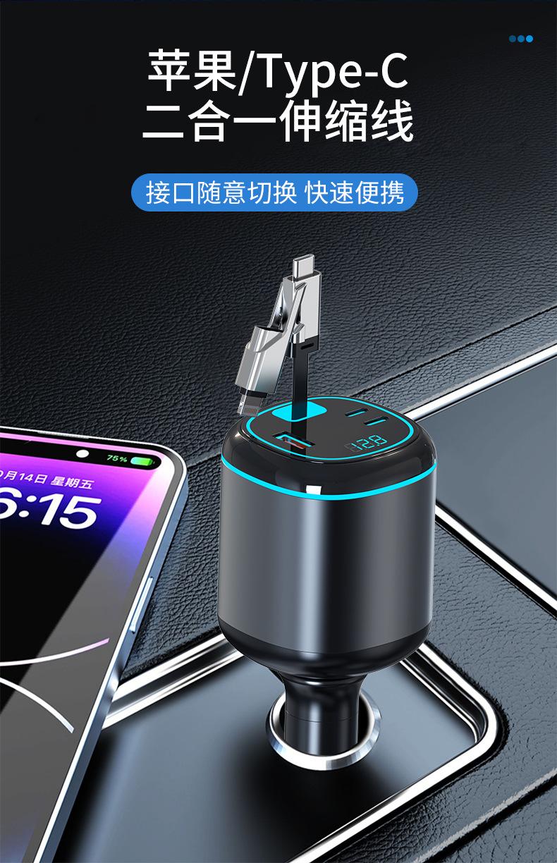 Nuevo cargador de coche de carga súper rápida dos en uno con cable telescópico, encendedor de cigarrillos para coche, enchufe de conversión TYPE-C