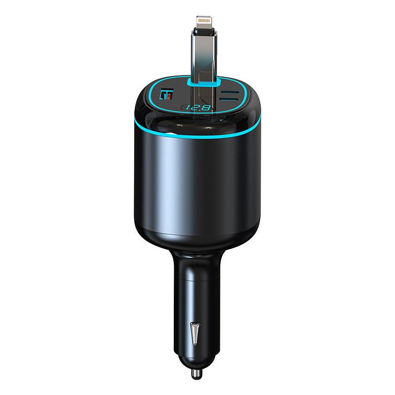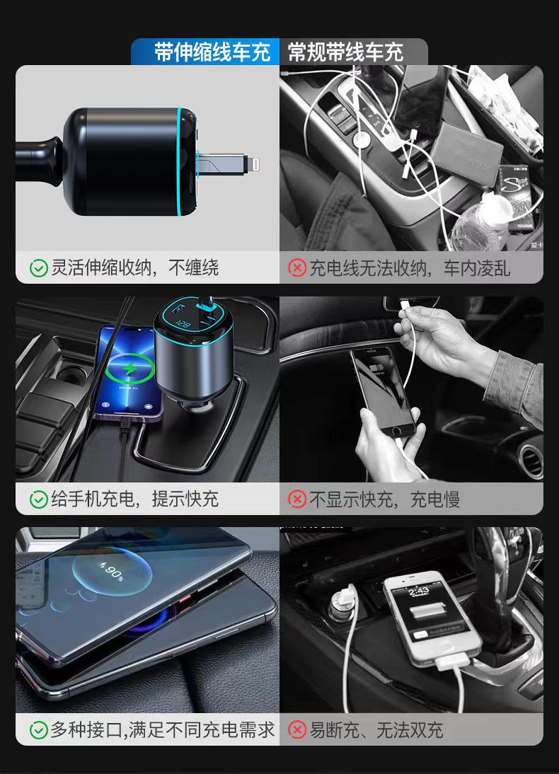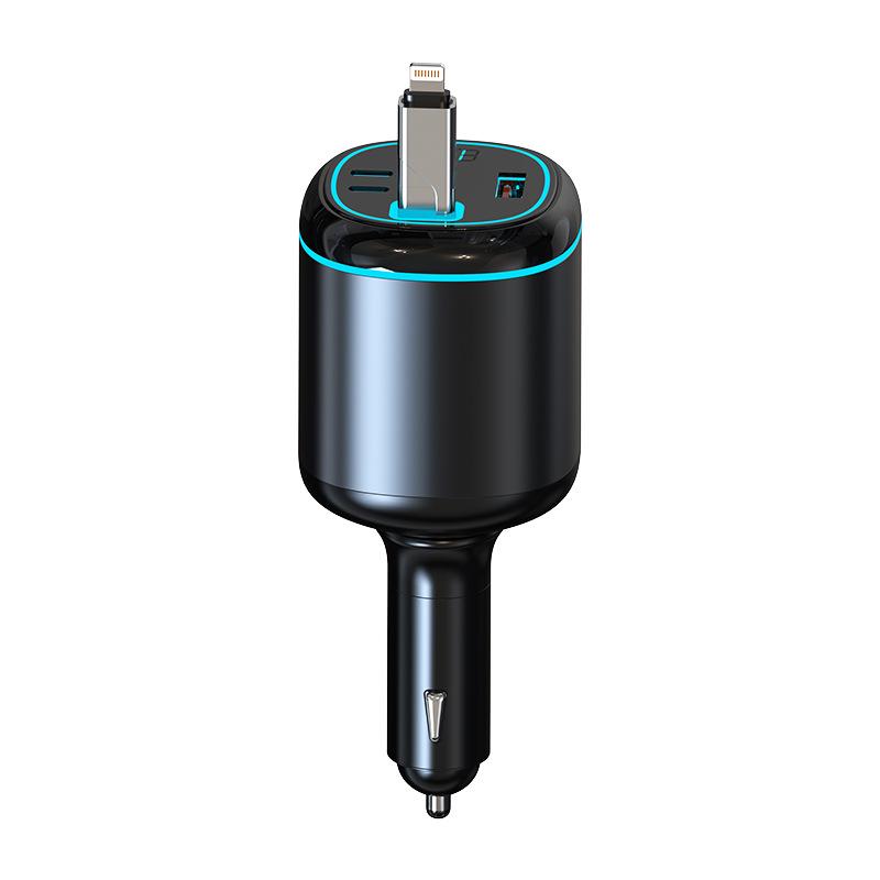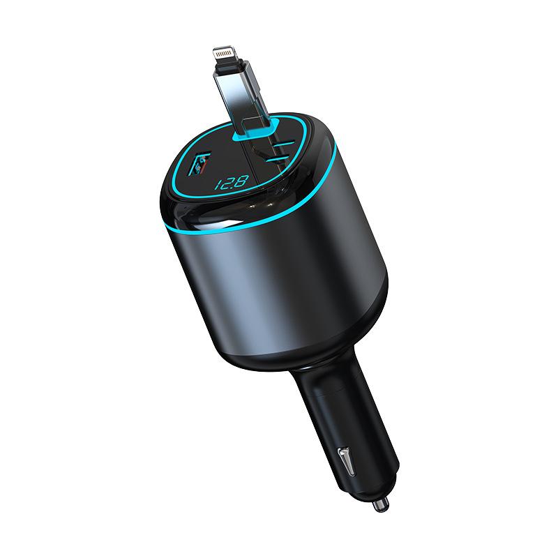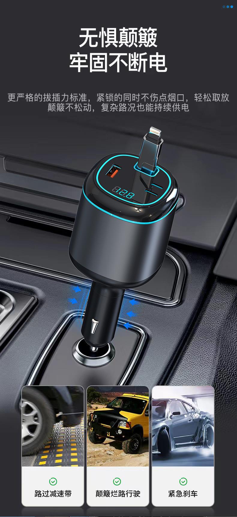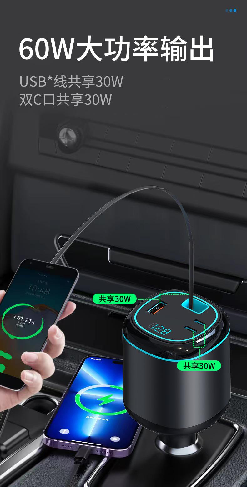Nuevo cargador de coche de carga súper rápida dos en uno con cable telescópico, encendedor de cigarrillos para coche, enchufe de conversión TYPE-C