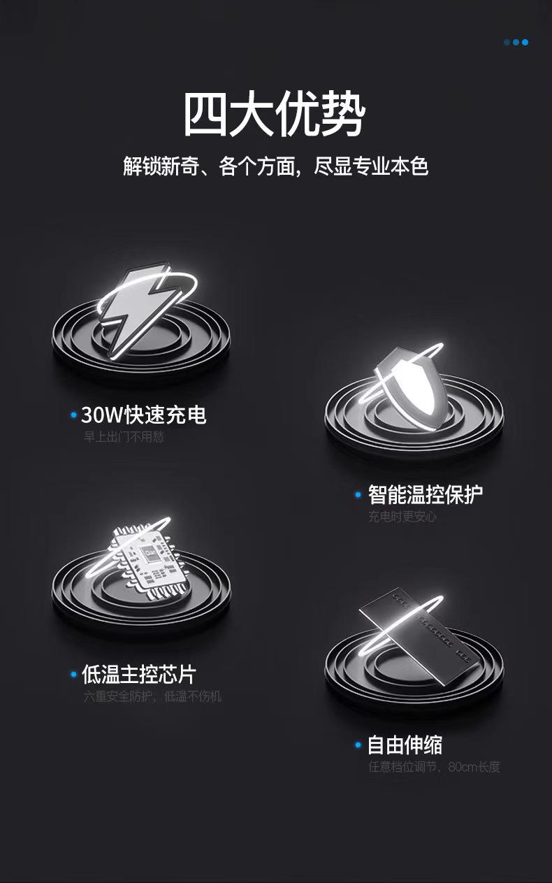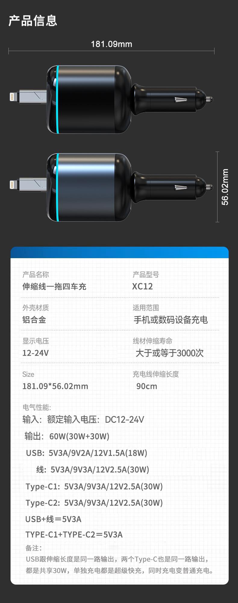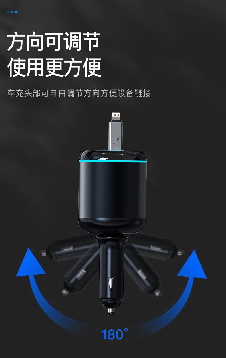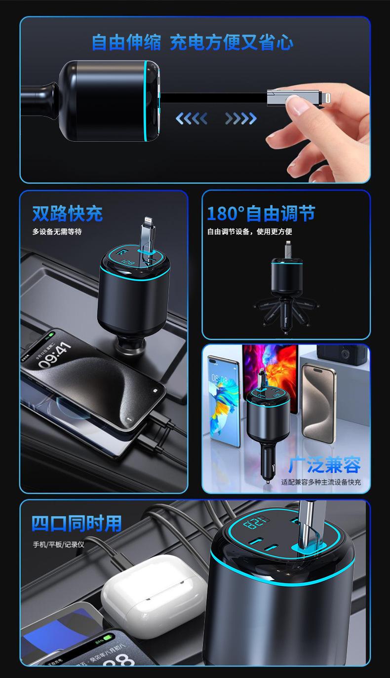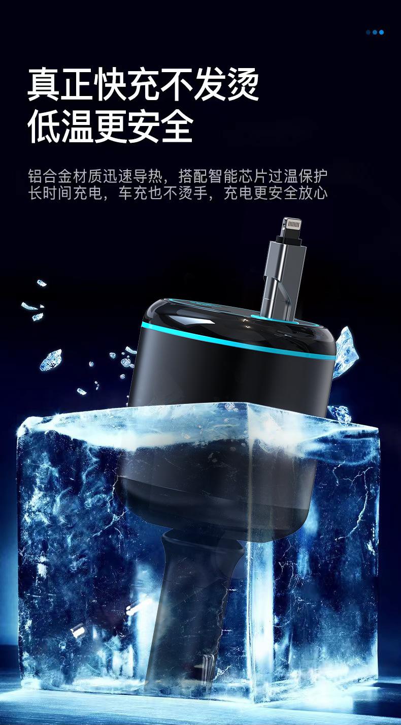 Nuevo cargador de coche de carga súper rápida dos en uno con cable telescópico, encendedor de cigarrillos para coche, enchufe de conversión TYPE-C