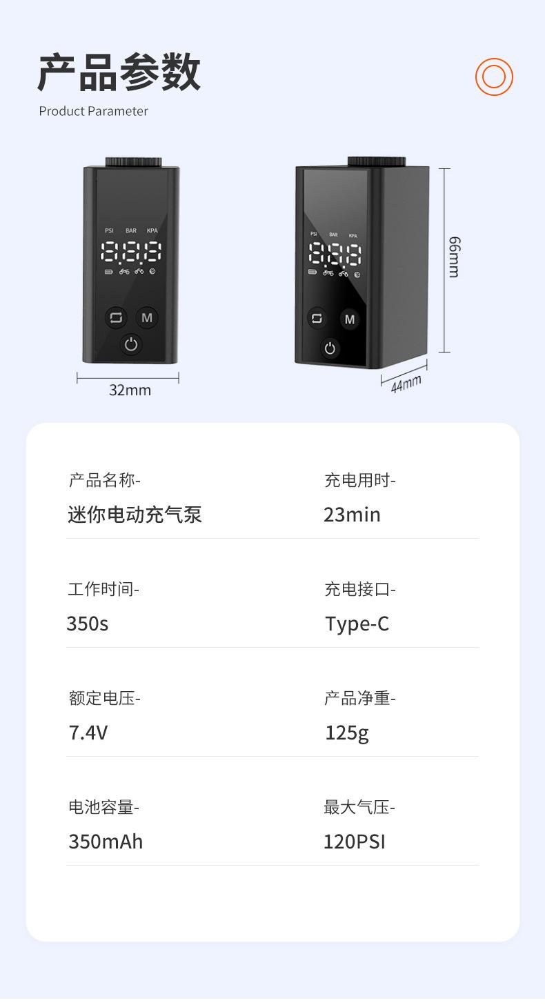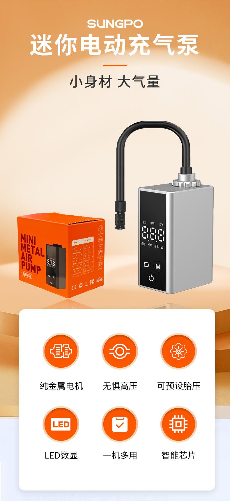 Mini Bomba de Aire, Bomba de Aire Eléctrica para Ciclismo, Bomba de Aire Inteligente con Pantalla Digital de Metal, Bomba de Aire para Coche, A partir de una Pieza