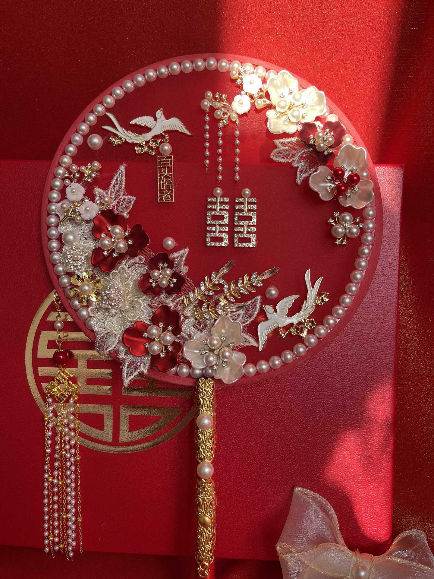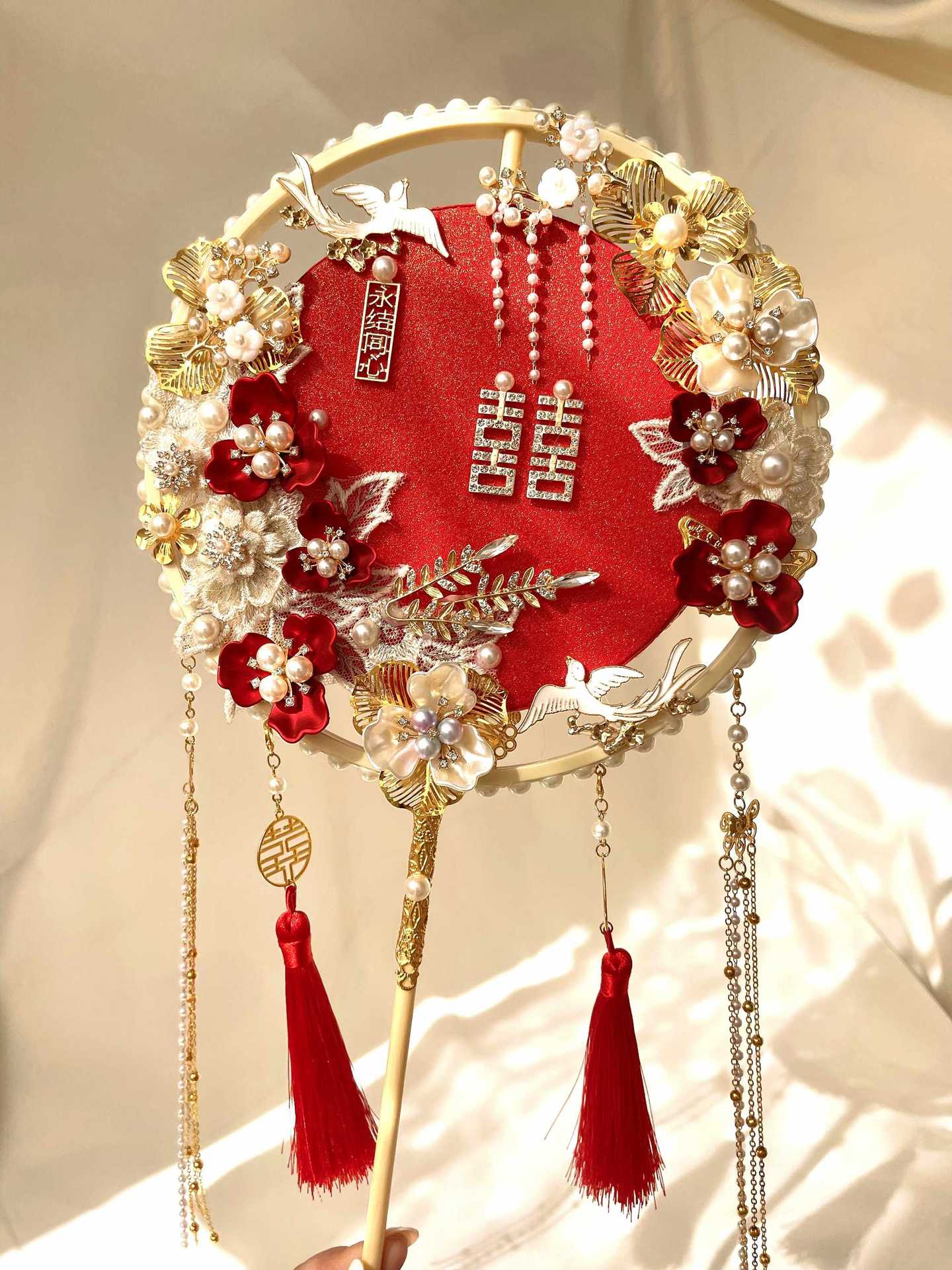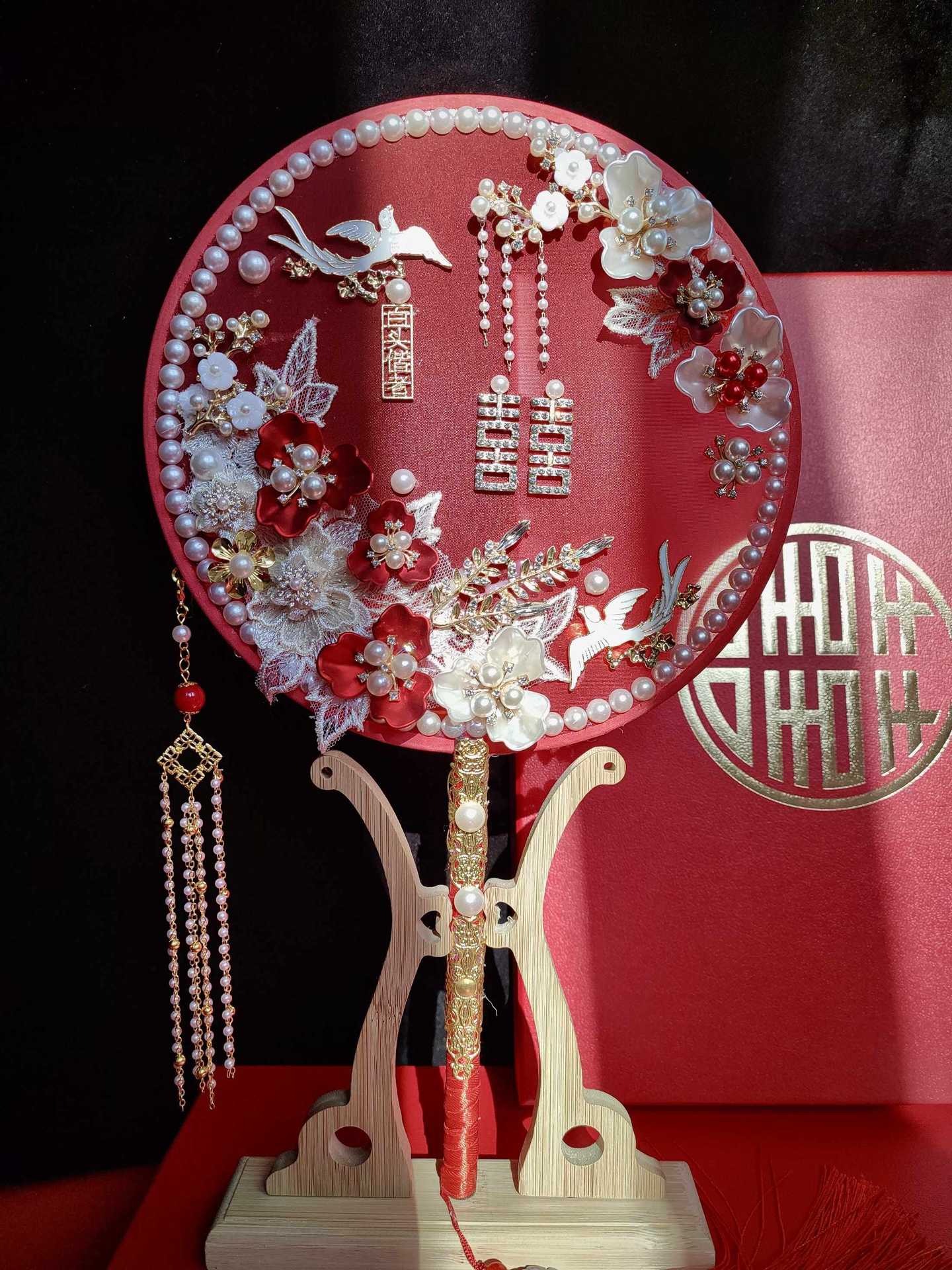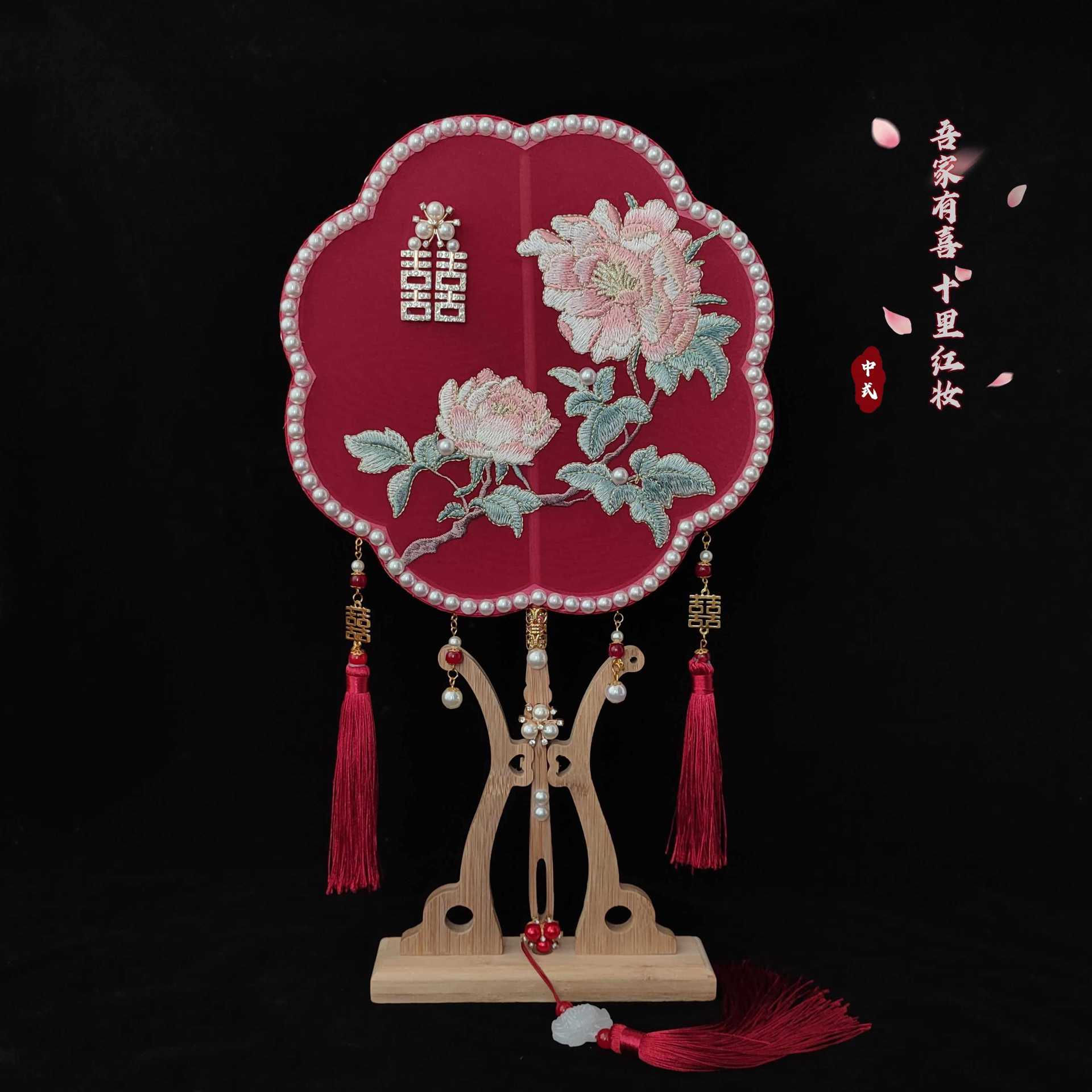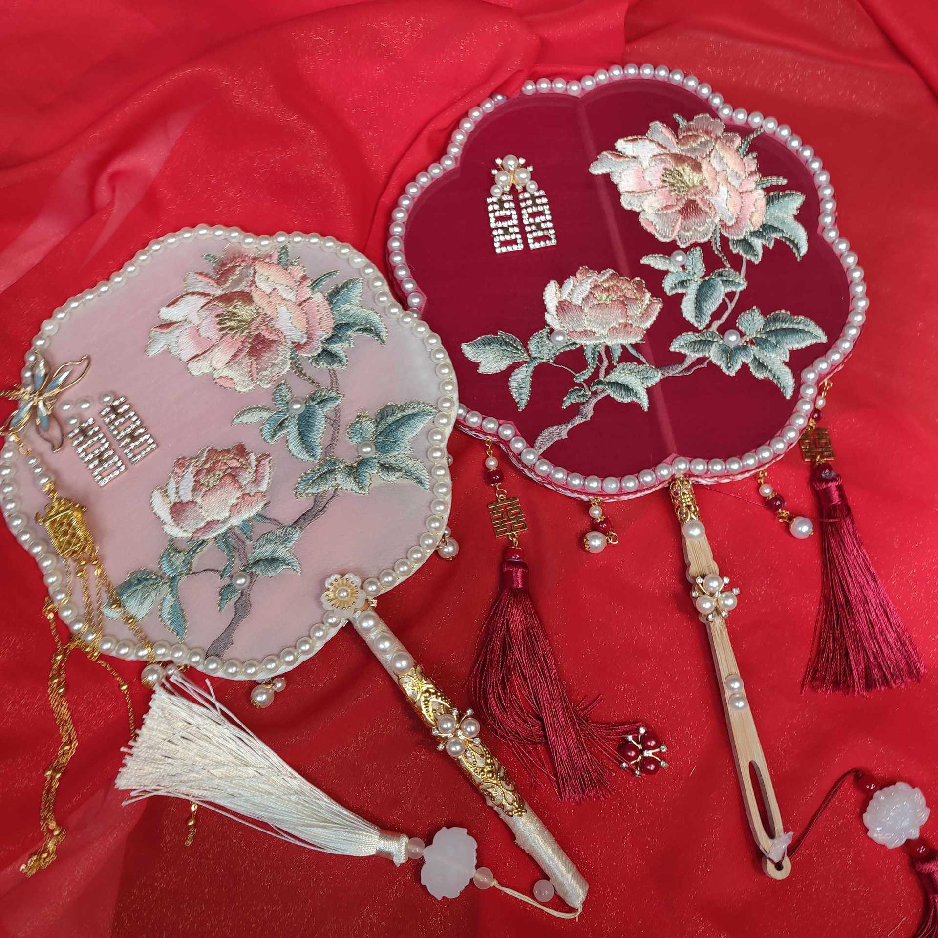 Abanico nupcial ropa Xiuhe abanico chino de doble cara boda boda boda abanico de boda abanico bordado de estilo antiguo flor de mano