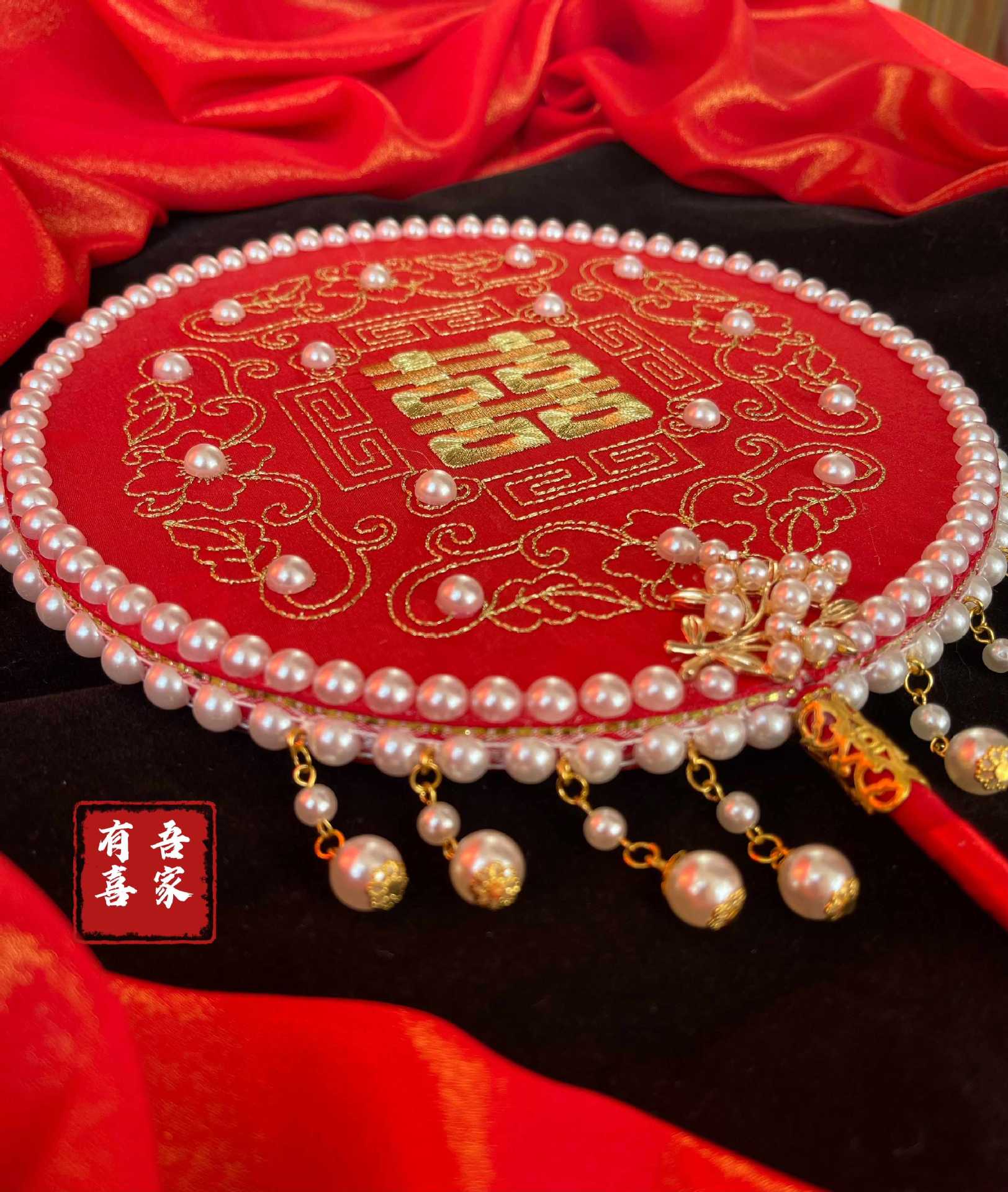 Chinese red double-sided fan