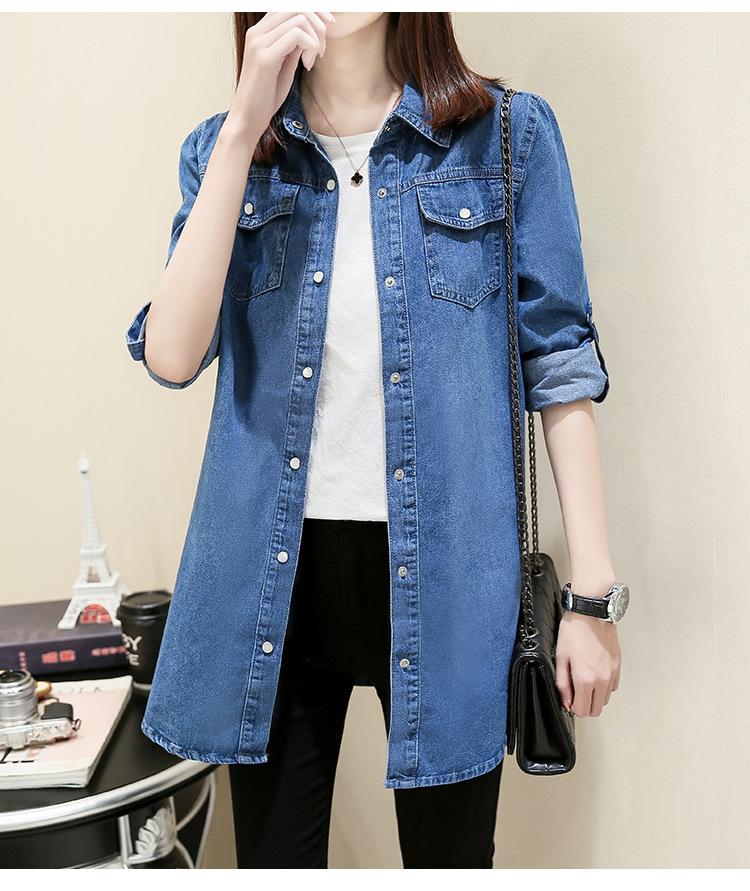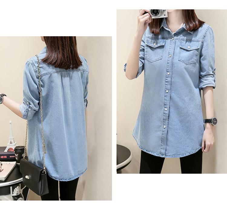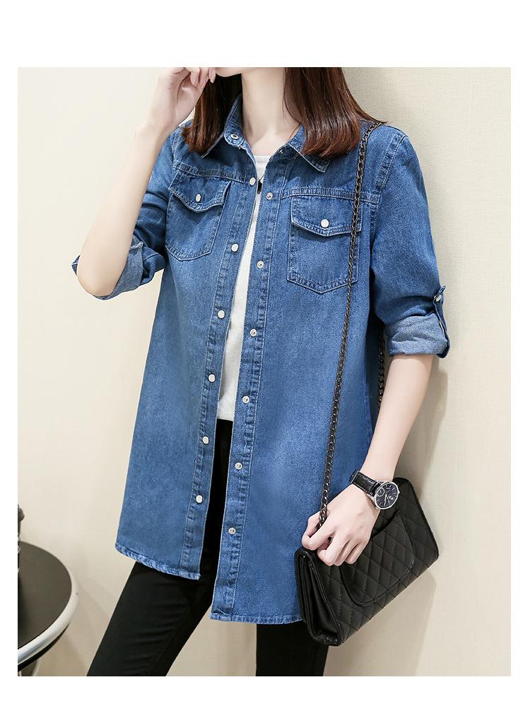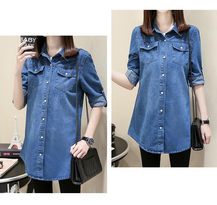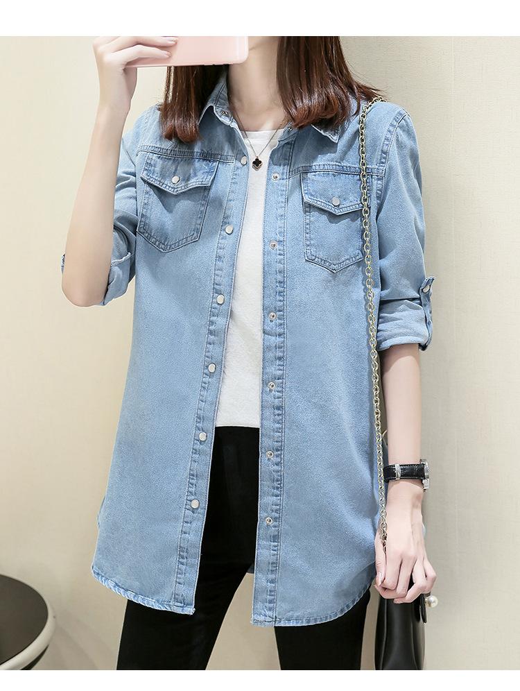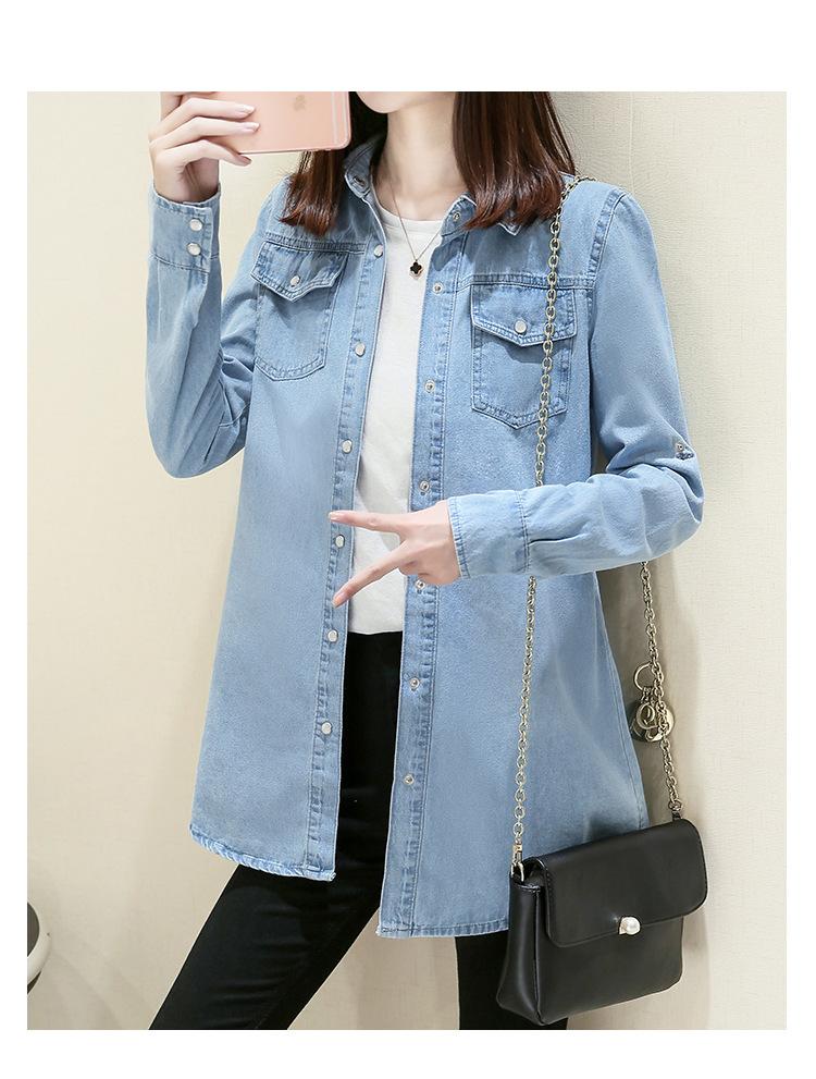 Primavera y Otoño 2024 Nueva Camisa de Mezclilla Slim de Largo Medio Estilo Coreano Talla Grande para Mujer Camisa de Manga Larga para Fondo Chaqueta para Mujer