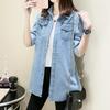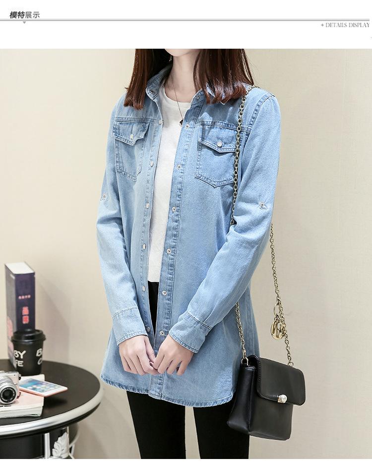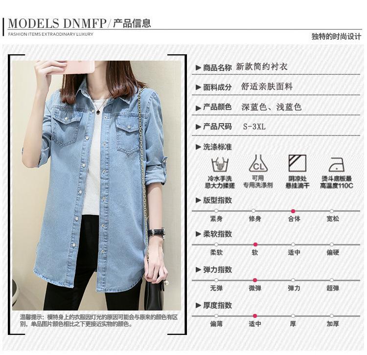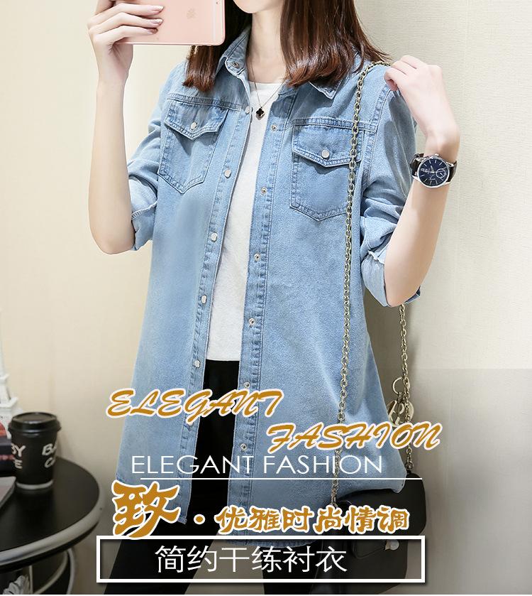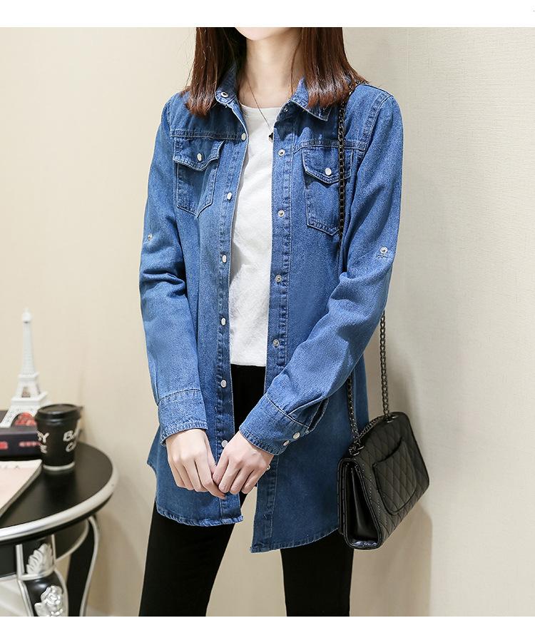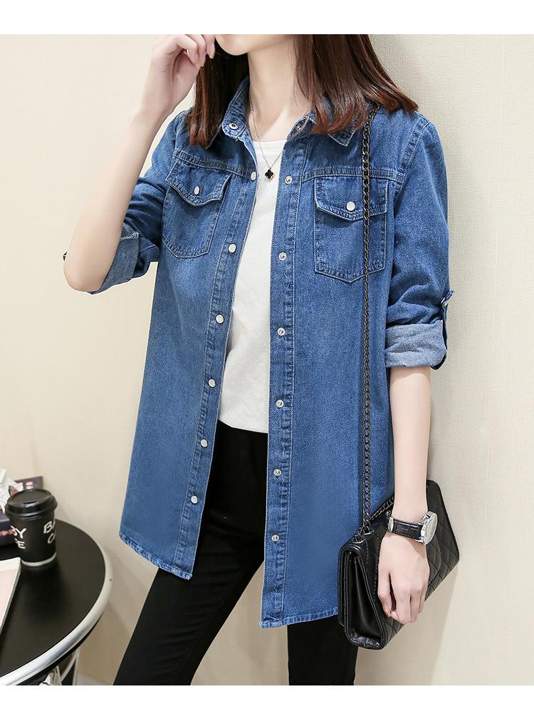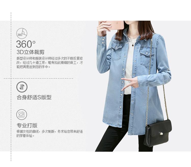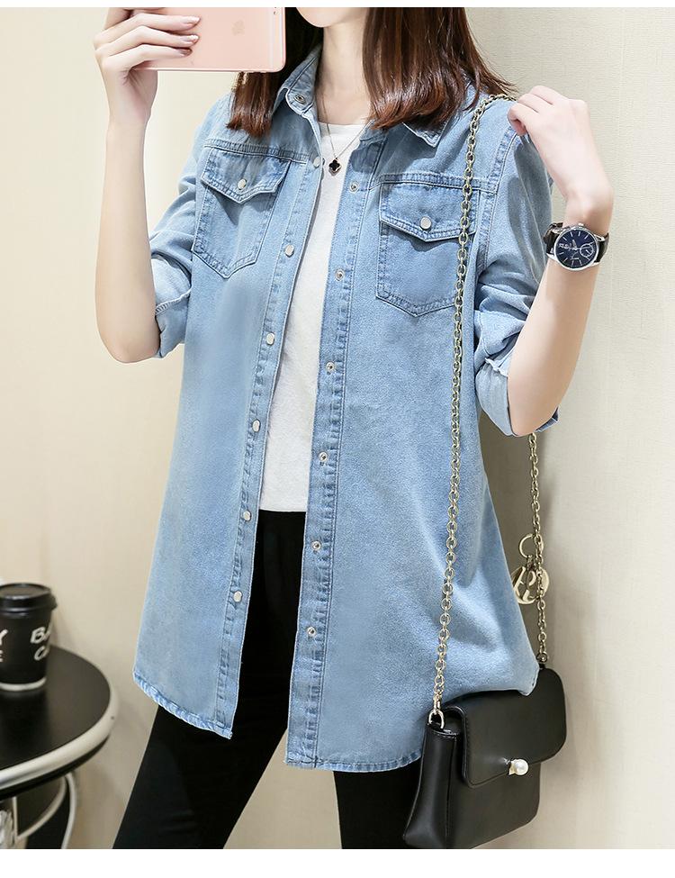 Primavera y Otoño 2024 Nueva Camisa de Mezclilla Slim de Largo Medio Estilo Coreano Talla Grande para Mujer Camisa de Manga Larga para Fondo Chaqueta para Mujer