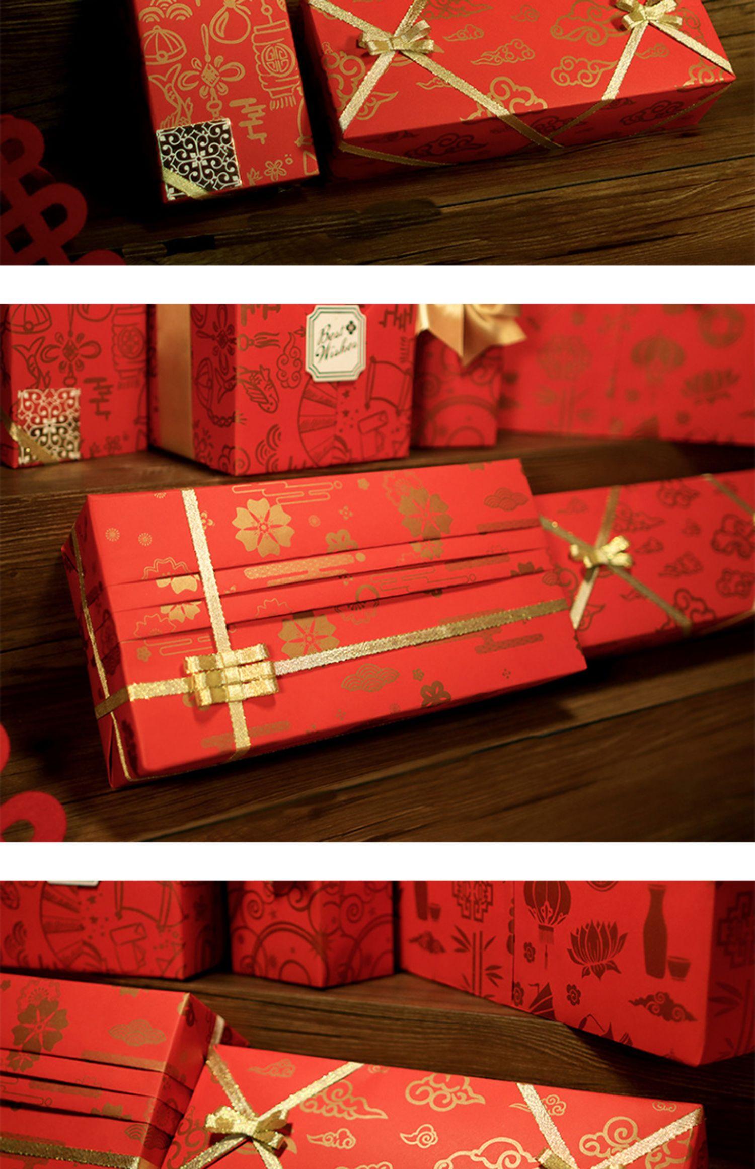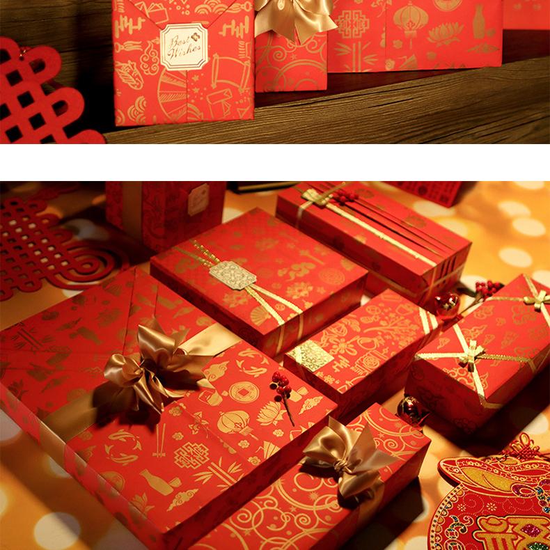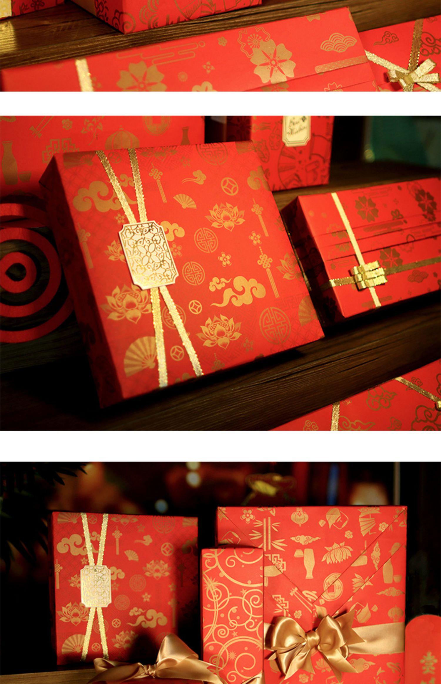 Caja de regalo con estilo para regalo festivo, papel de regalo vintage rojo para Año Nuevo, boda, papel de regalo decorativo hecho a mano, juego de regalo