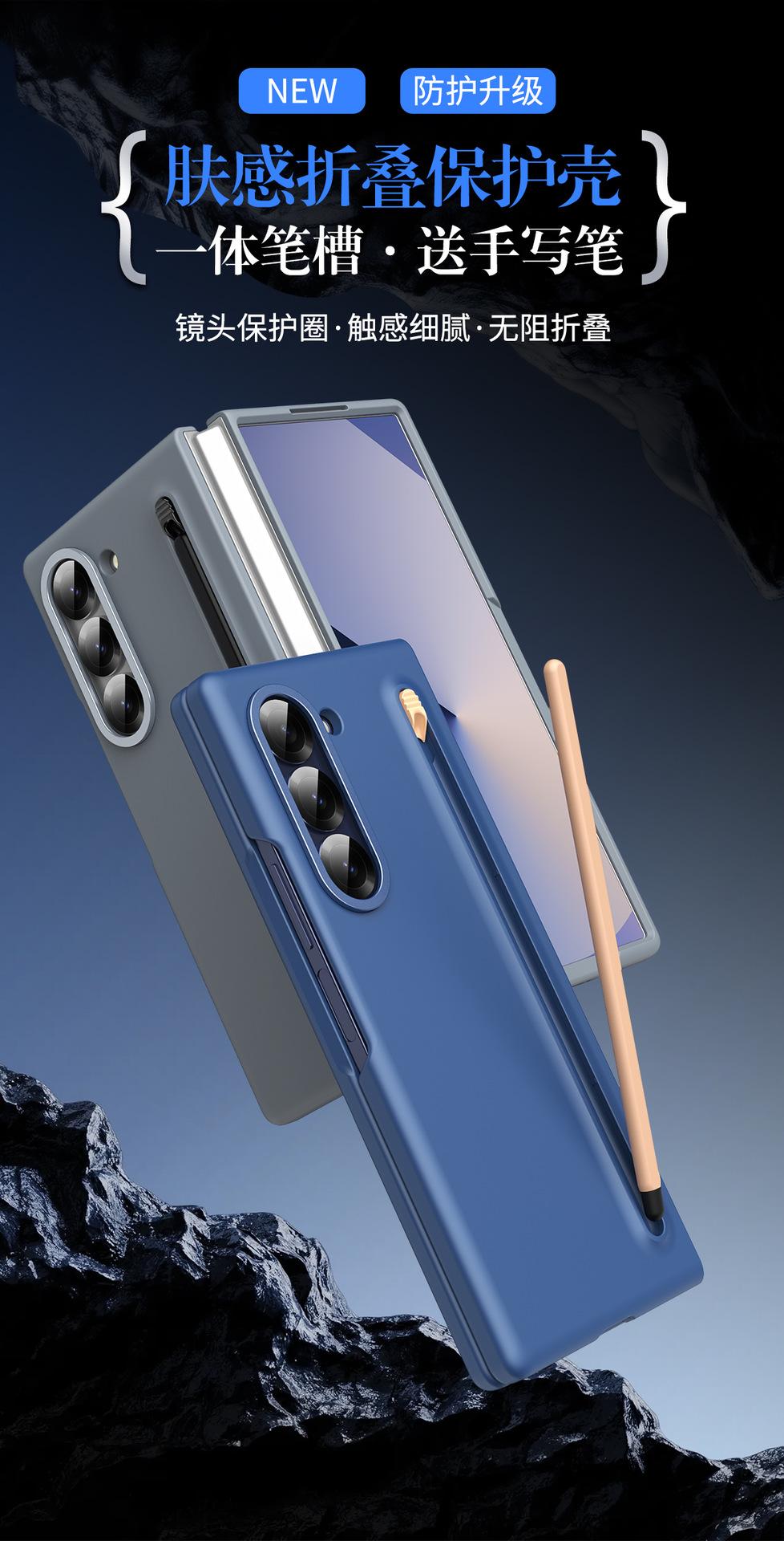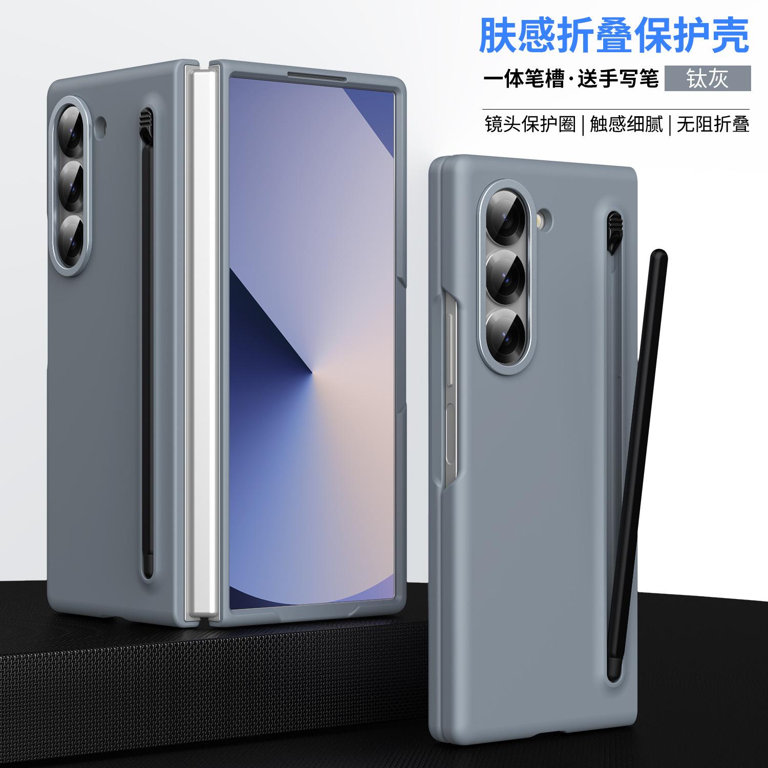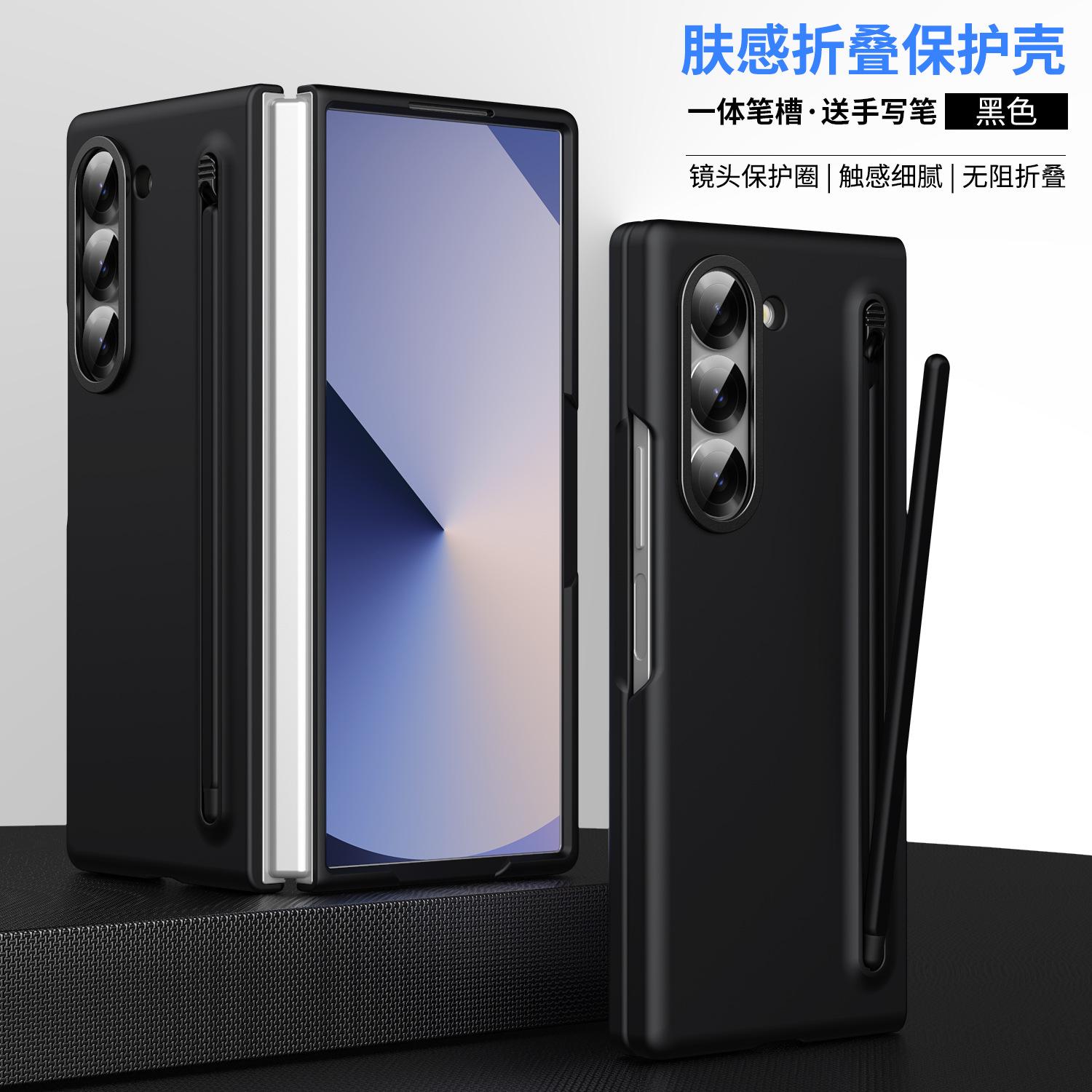 Para Funda de Teléfono Móvil Samsung Zfold5 FOLD6 Pantalla Plegable Funda de Color Sólido Película Funda de Una Pieza con Sensación de Piel con Cubierta Protectora para Lápiz