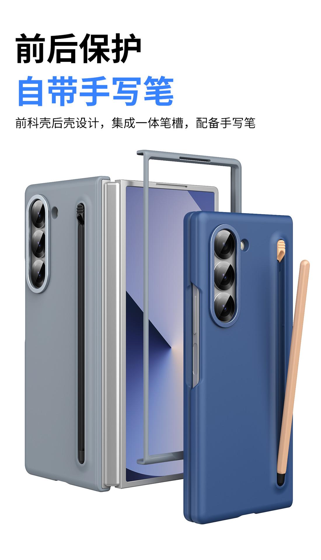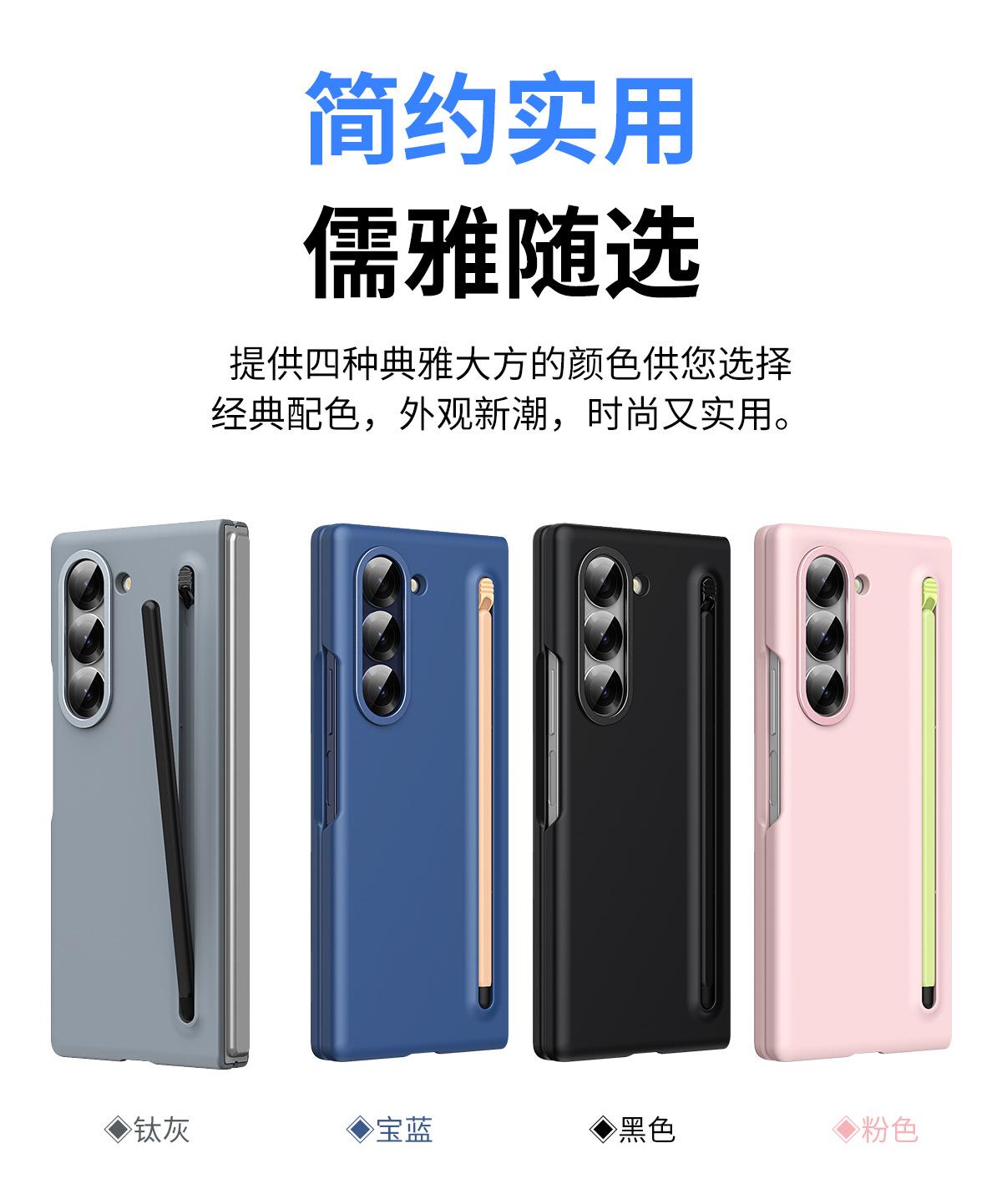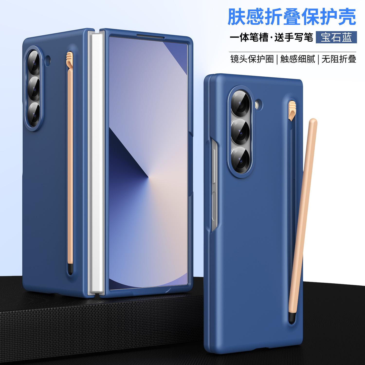 Para Funda de Teléfono Móvil Samsung Zfold5 FOLD6 Pantalla Plegable Funda de Color Sólido Película Funda de Una Pieza con Sensación de Piel con Cubierta Protectora para Lápiz