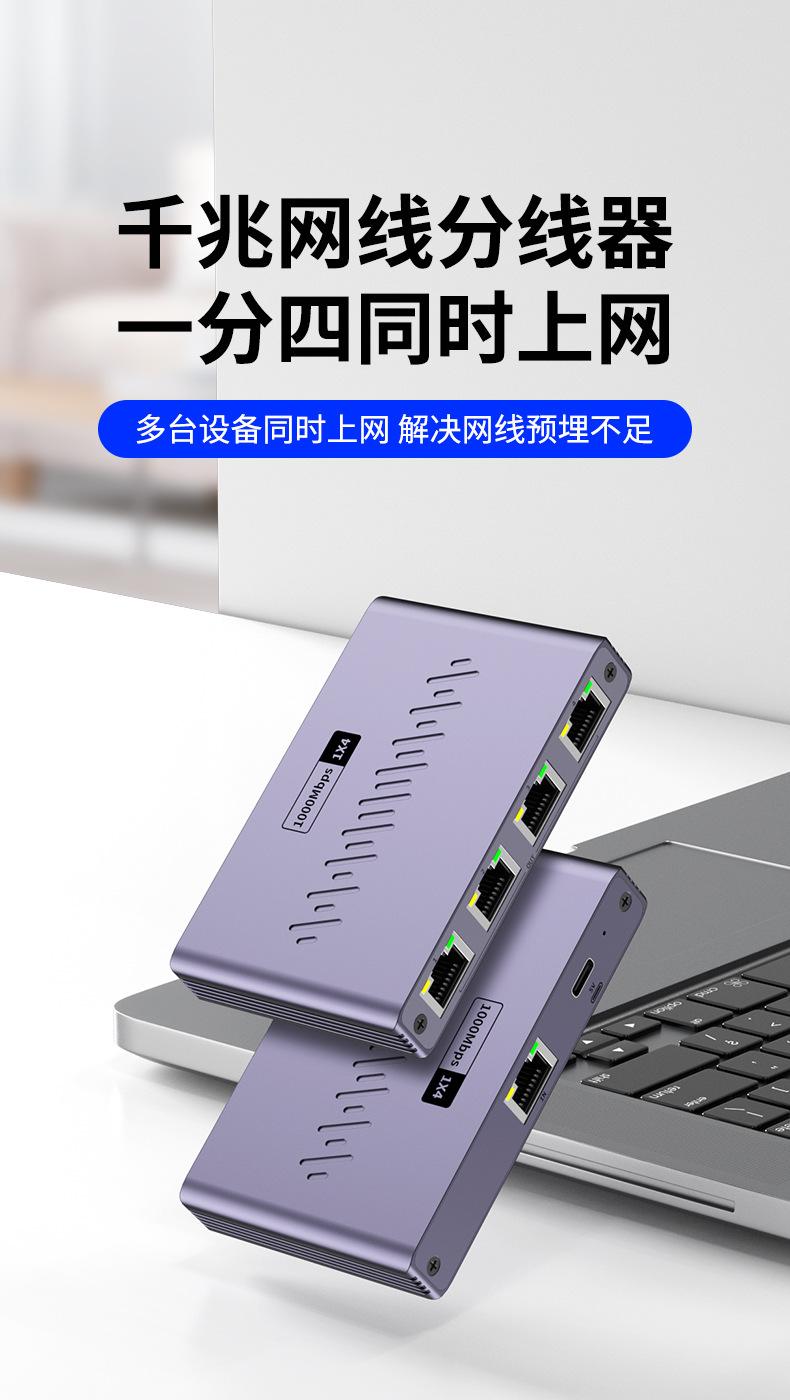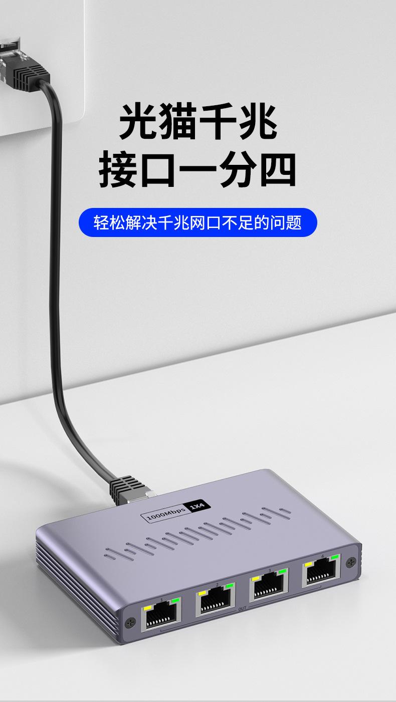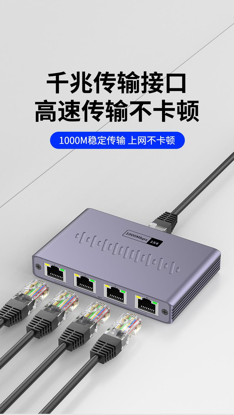 Divisor de cable de red Divisor de red de uno a cuatro gigabits Acceso simultáneo a Internet Extensor de conmutador de red RJ45