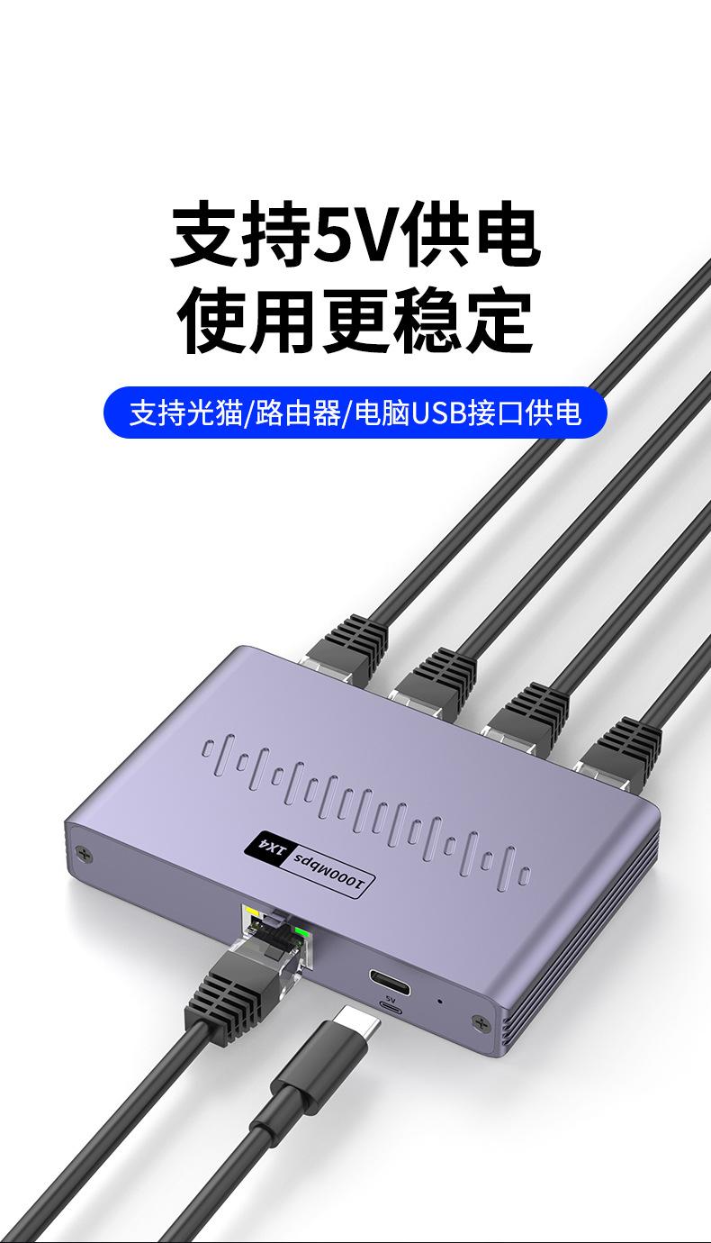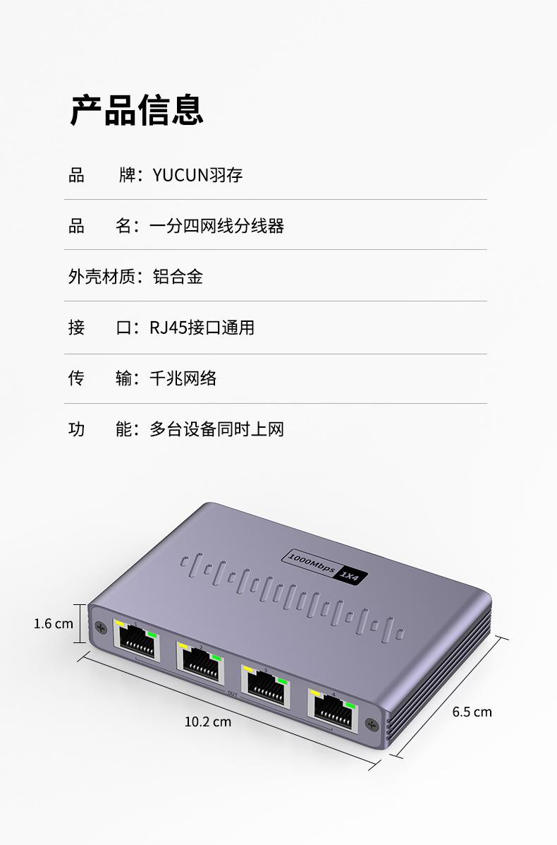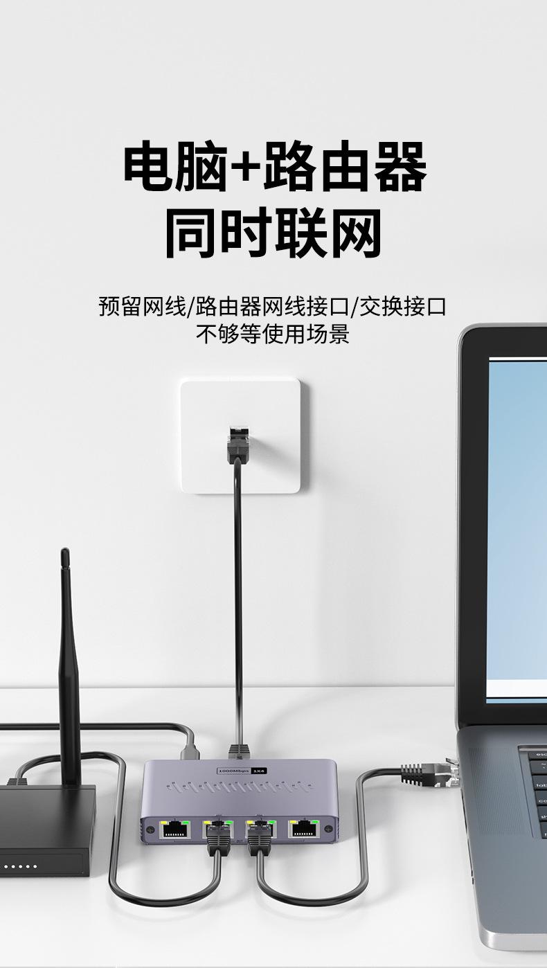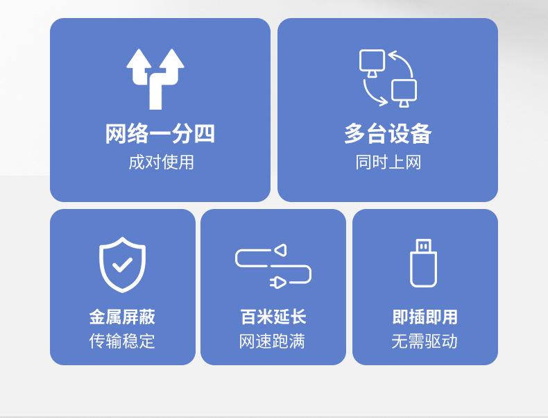 Divisor de cable de red Divisor de red de uno a cuatro gigabits Acceso simultáneo a Internet Extensor de conmutador de red RJ45