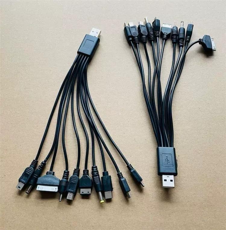 Cable de carga USB 1 a 10 para teléfono móvil/dispositivo multifunción de cabeza redonda 10 en 1, cable de carga tipo C