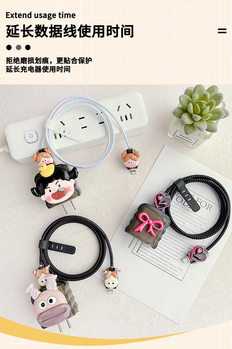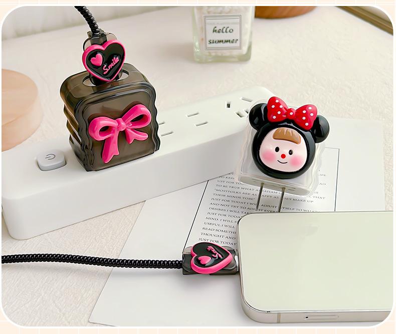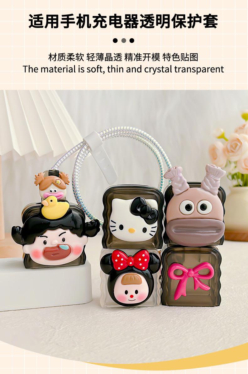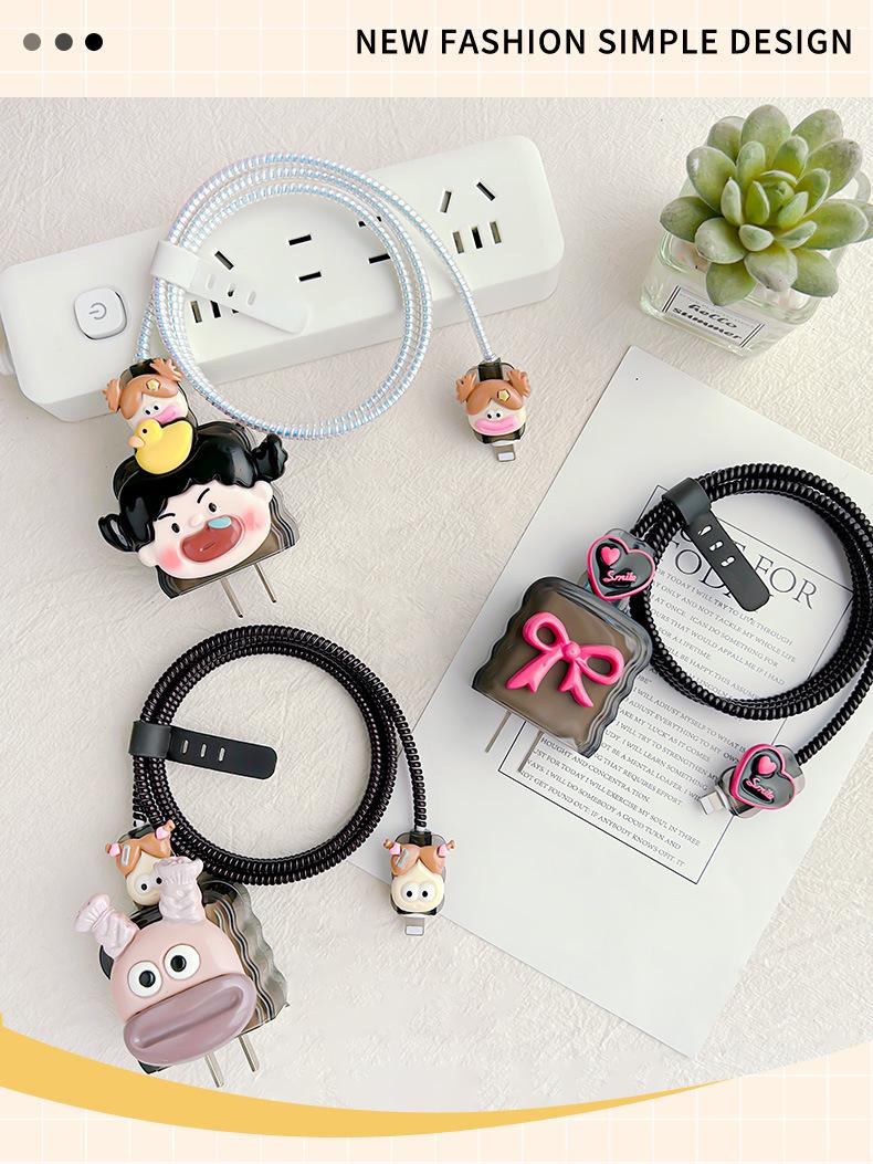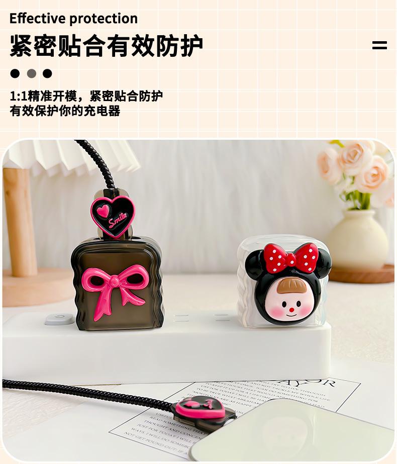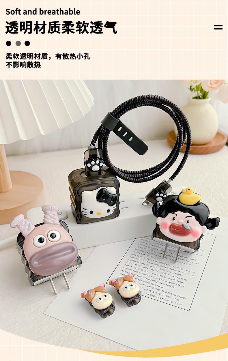 Adecuado para Cubierta Protectora de Cargador Apple 20/18W Cubierta para Cable de Datos 15/14 Cable Bite Transparente Negro Feo Lindo Chica