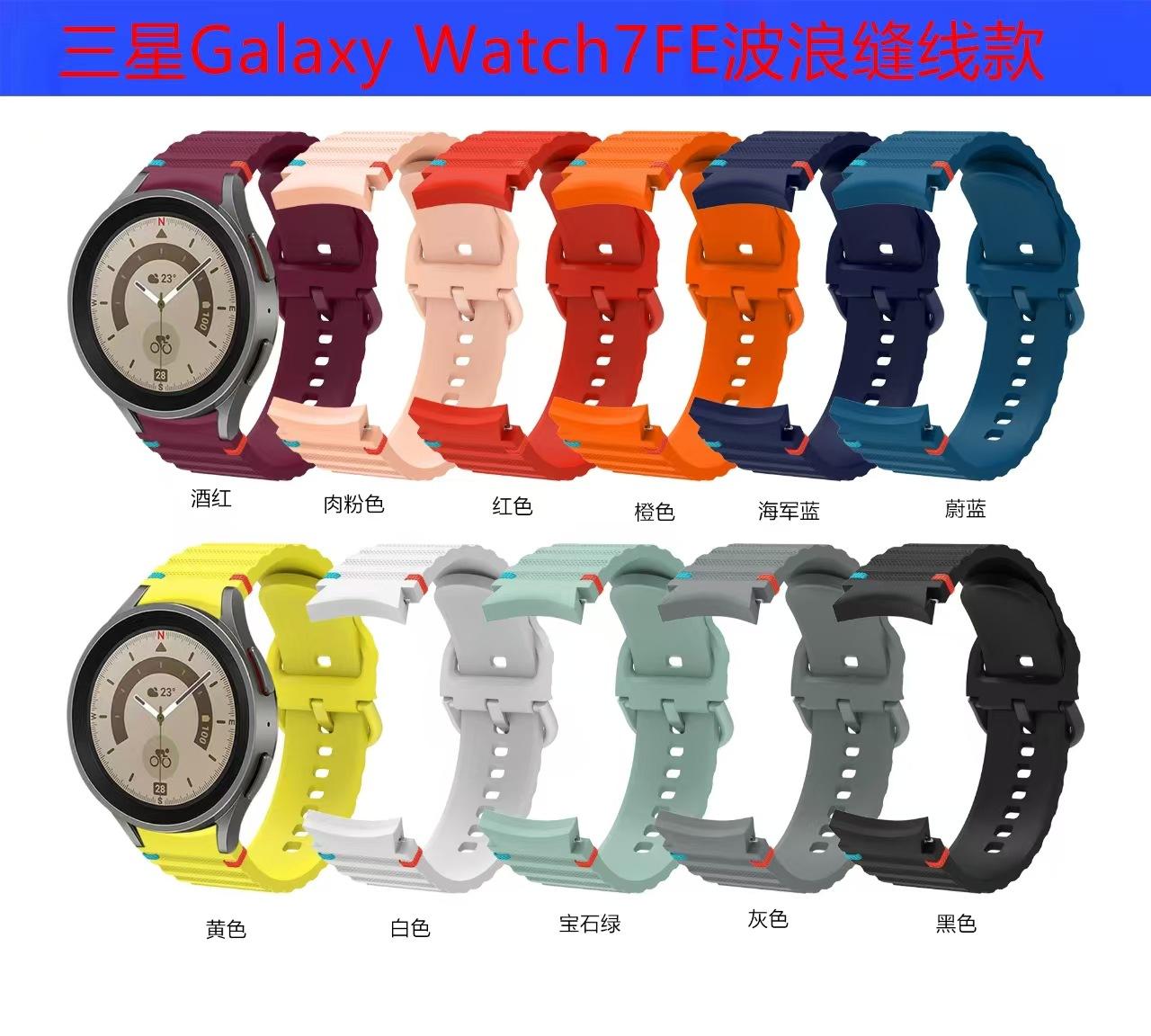 Adecuado para Samsung Watch7/FE Correa de silicona con hebilla de color con puntada ondulada Correa de silicona para Samsung Watch7