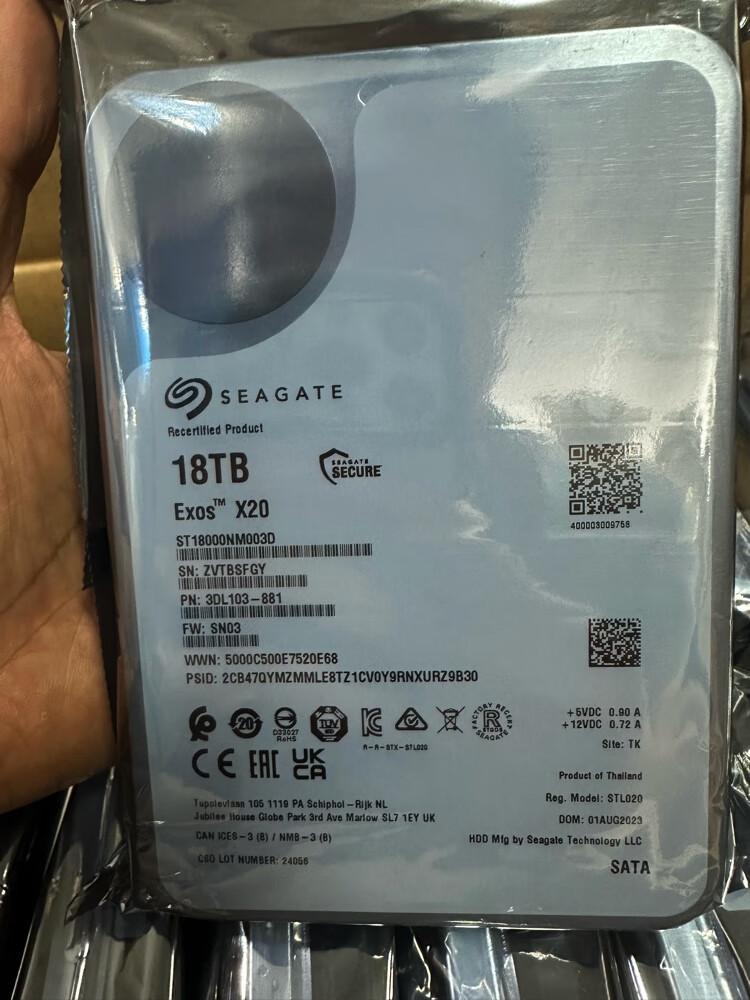 Paquete 2, disco duro Seagate 18T de clase empresarial EXOS X20 serie 7200 rpm caché 256M interfaz SATA disco de helio de 3.5 pulgadas, fabricado en 2023, no de canales nacionales, etiqueta original y original, nuevo 0 encendidos, garantía de 3 años, ¡compre con confianza! Gran capacidad 18Tb almacenamiento para servidor NAS y otros propósitos generales. ¡Stock a granel! Paquete 1, Seagate sT18000NM000J 18T etiqueta de color 2021 inventario de fábrica nuevo 0 encendidos, garantía de 3 años ¡disco original!