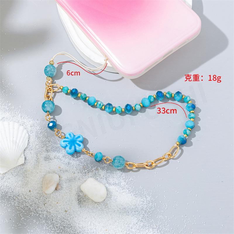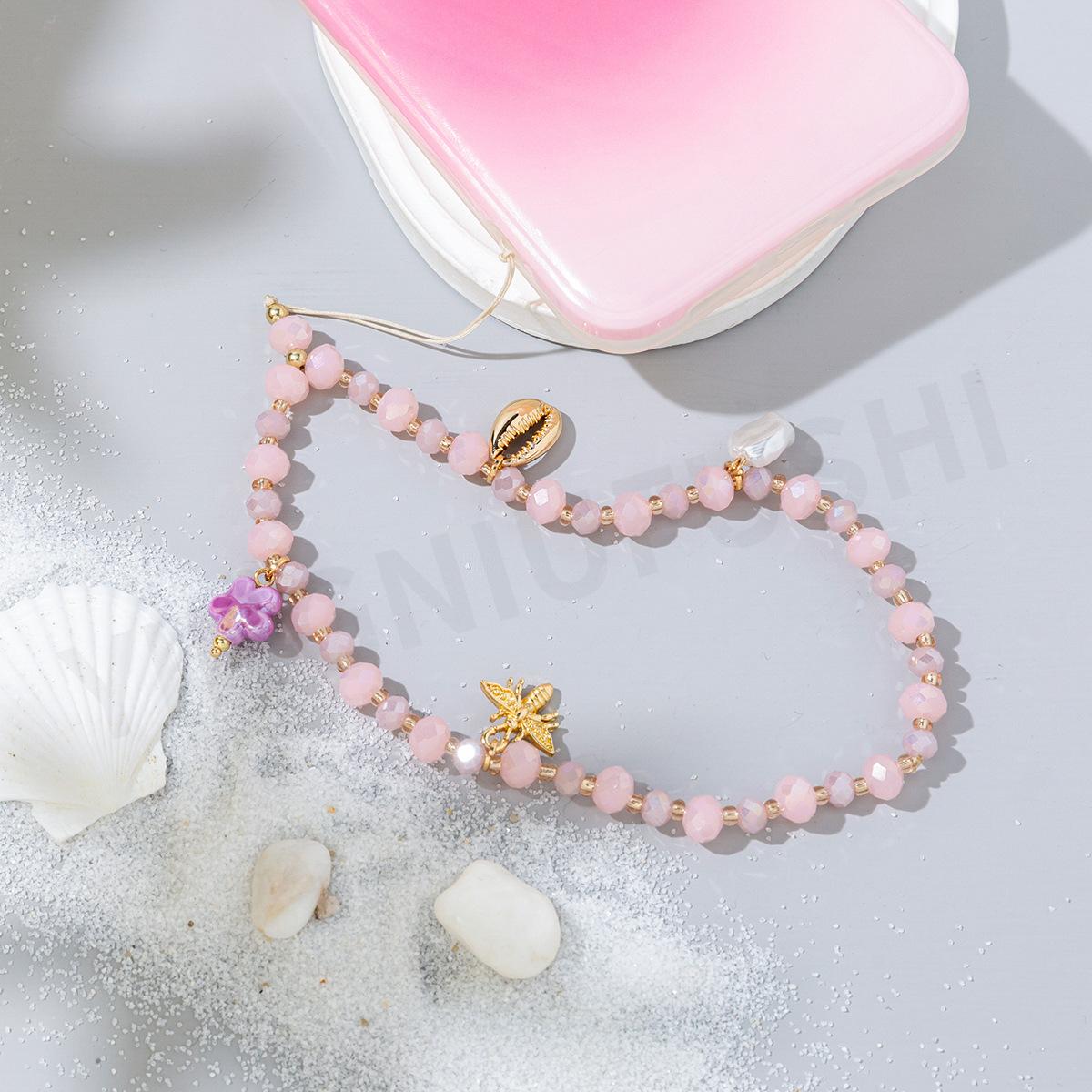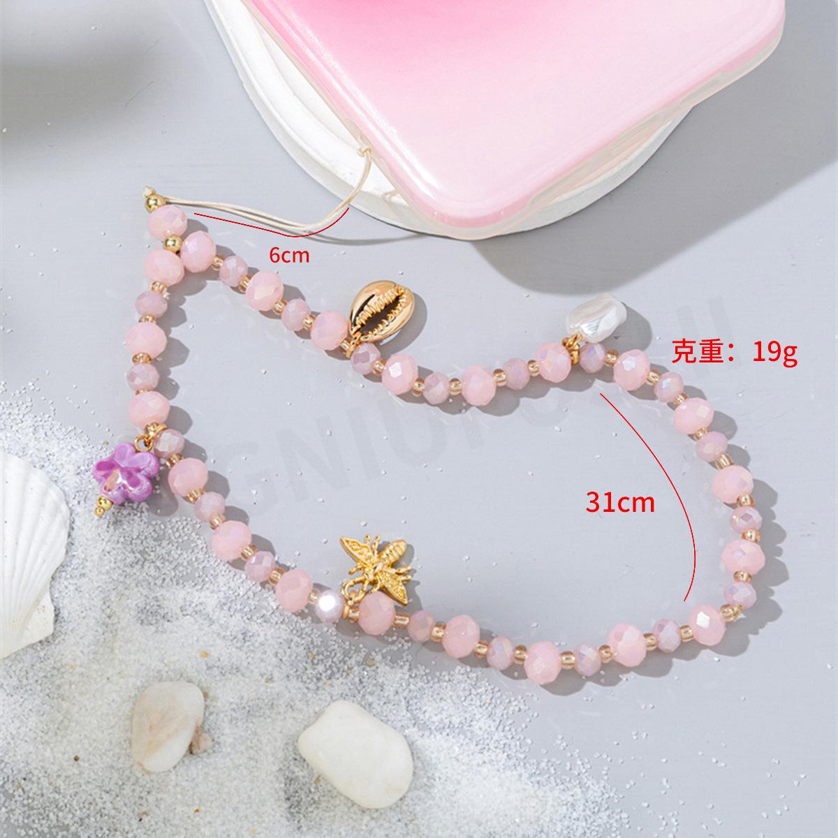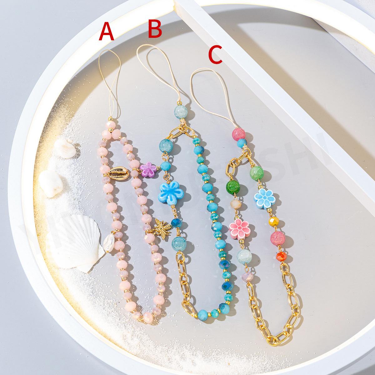 Cadena para teléfono móvil con cuentas de cristal de color estilo bohemio, colgante de concha fresca pequeña, cordón para teléfono móvil, cordón para llaves