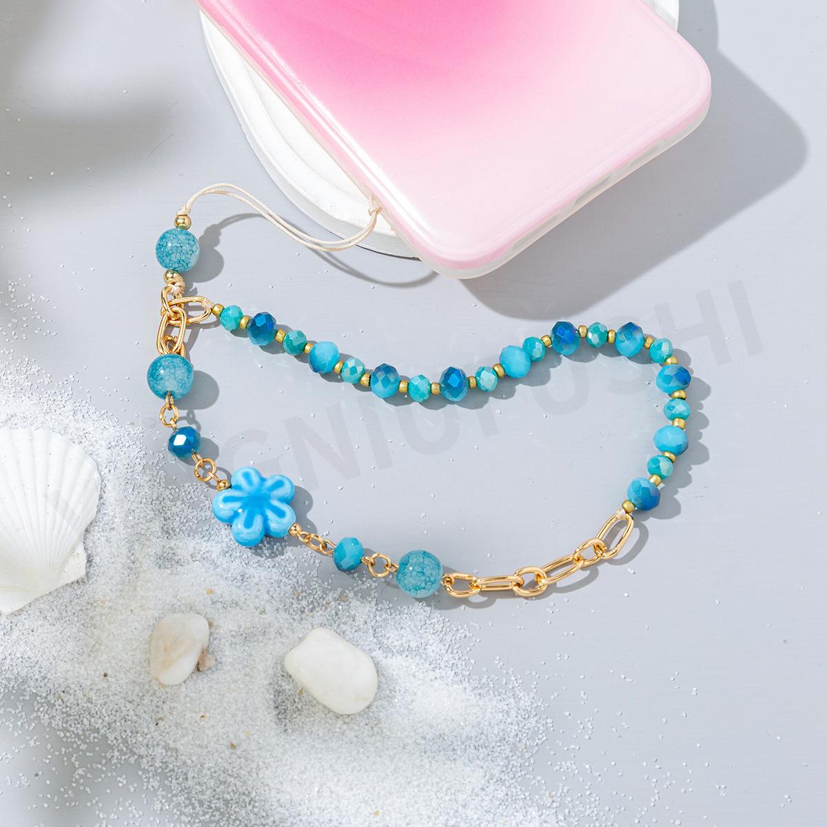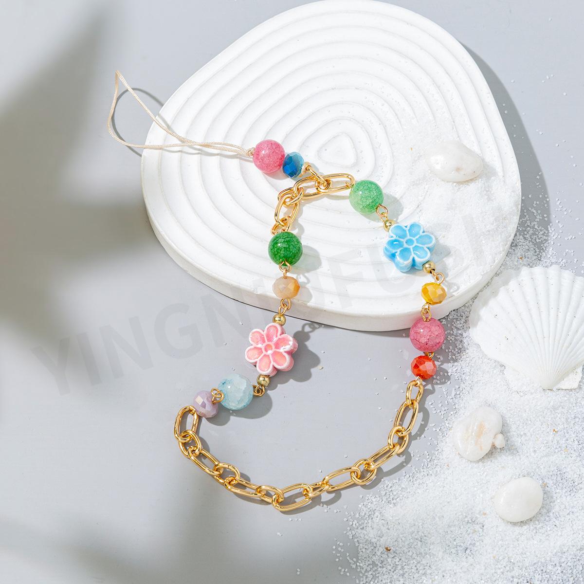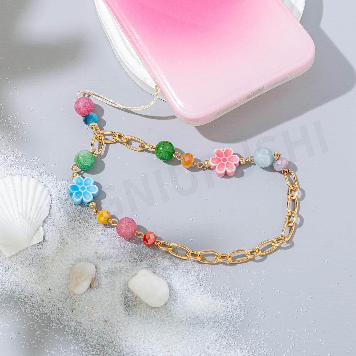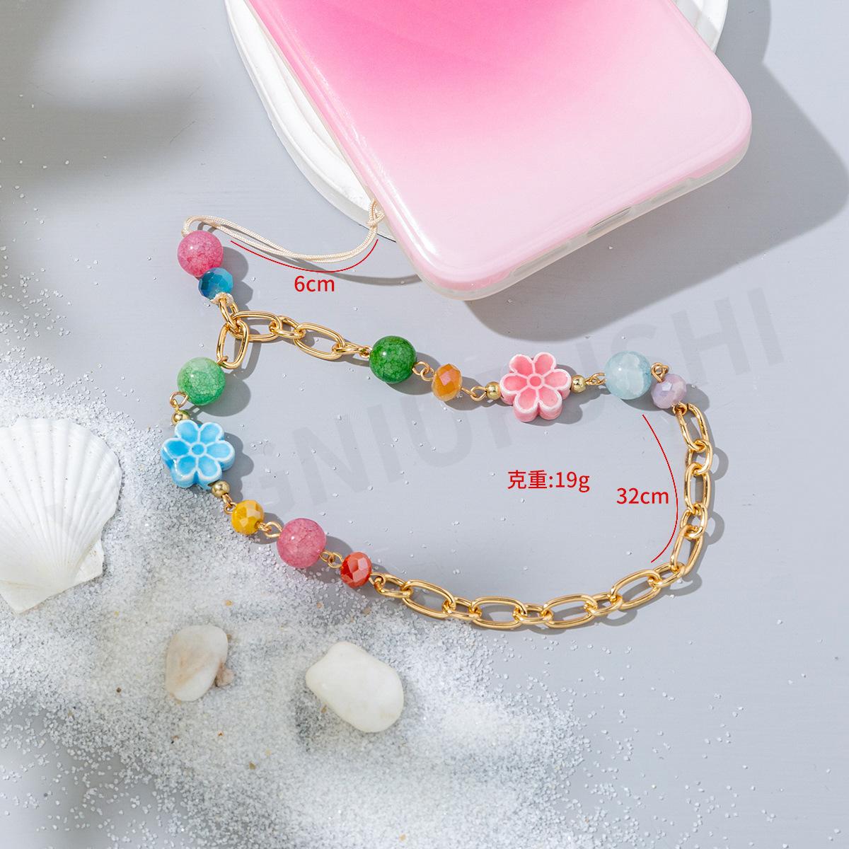 Cadena para teléfono móvil con cuentas de cristal de color estilo bohemio, colgante de concha fresca pequeña, cordón para teléfono móvil, cordón para llaves