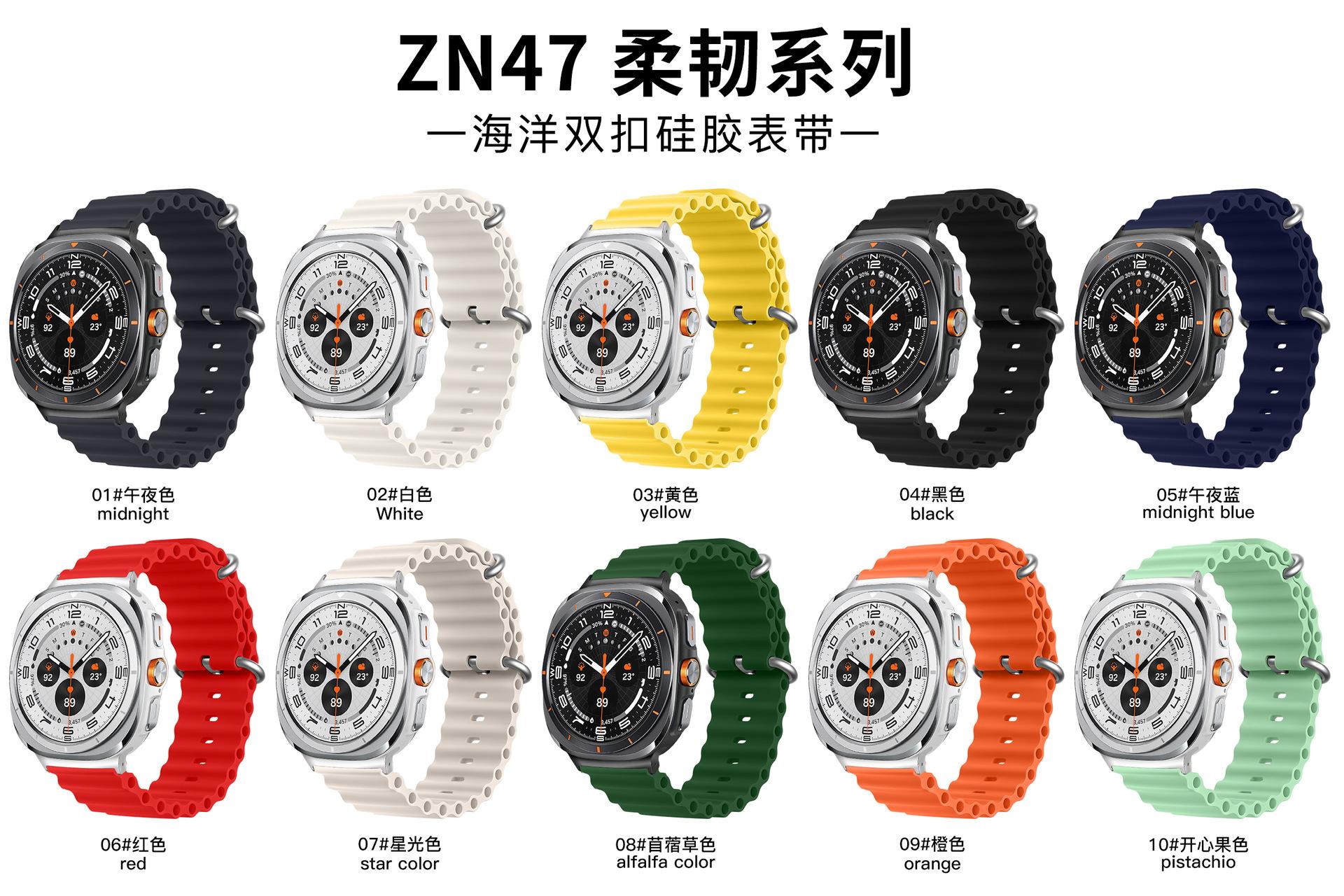 【ZN47 Serie Flexible Correa de Reloj de Silicona con Doble Hebilla Marina para Serie SamsungVer Ultrareloj inteligente】
