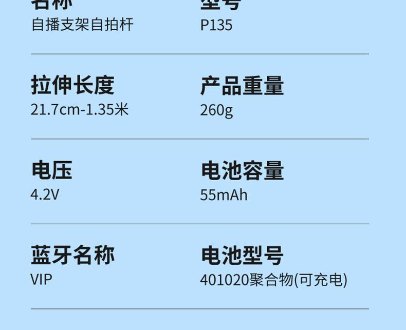 P135 Palo Selfie para Teléfono Móvil Anti-Vibración Retráctil Control Remoto Bluetooth Carga Portátil Palo Selfie para Teléfono Móvil Anti-Vibración Retráctil