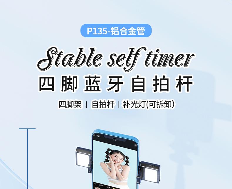 P135 aluminum alloy mobile phone selfie stick/white/without light
