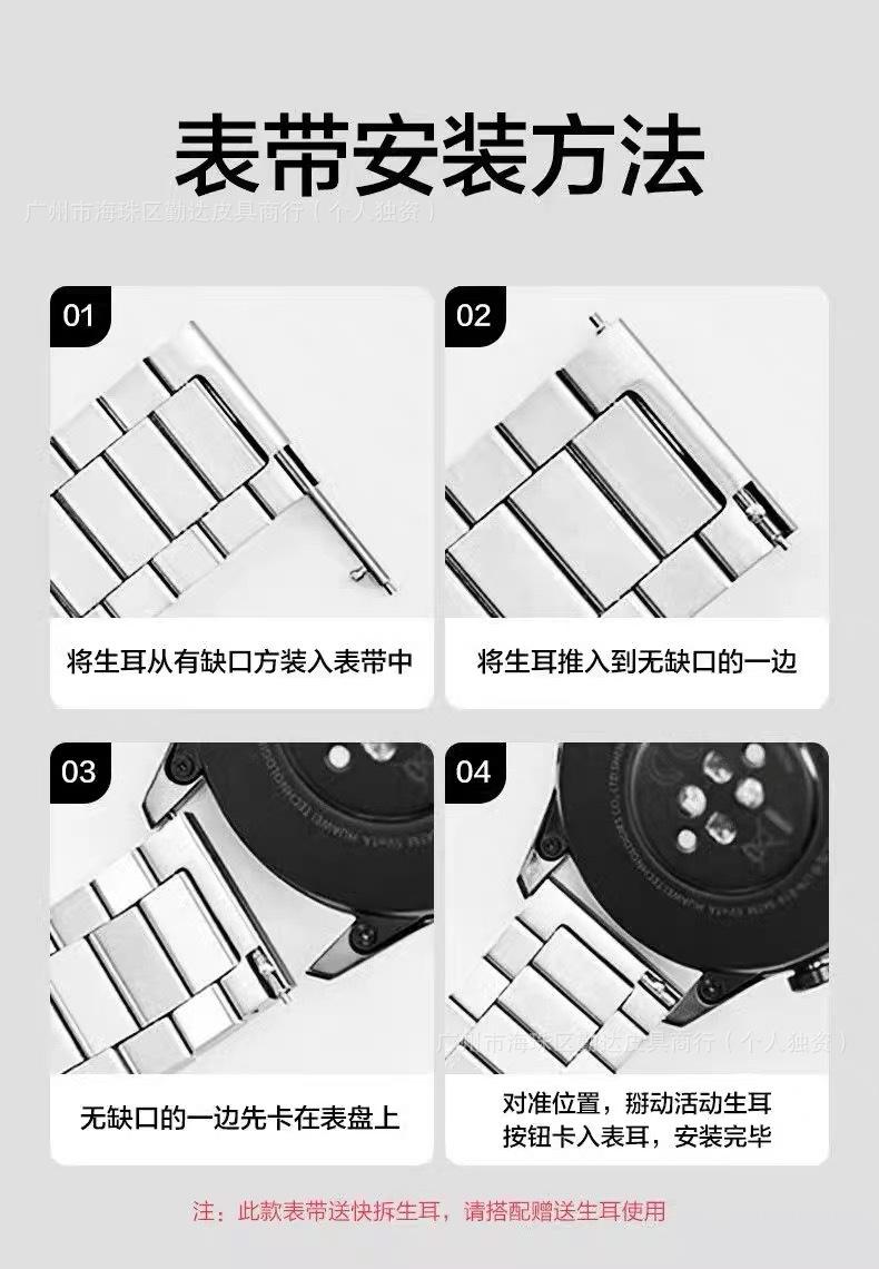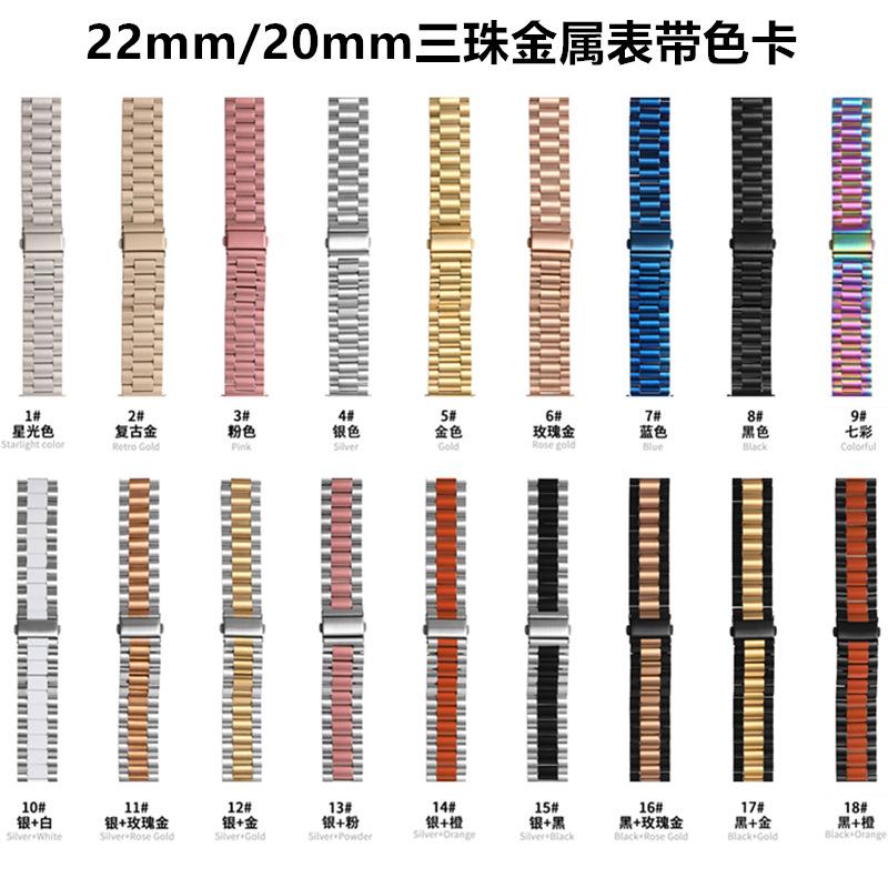 Compra Correa de reloj de metal de 22/20 mm adecuada para Huawei Gt5/4 para hombre Samsung Watch3 Correa de reloj de acero inoxidable de tres eslabones al por mayor en Joom.pro