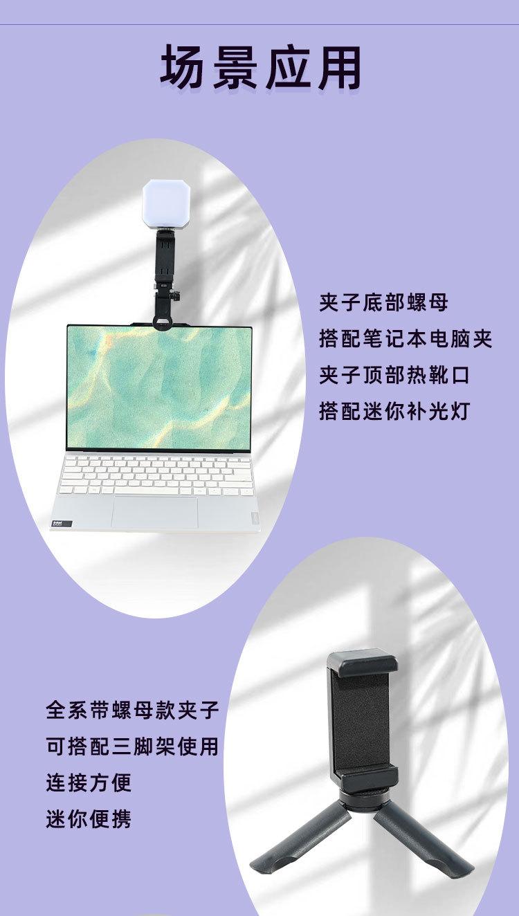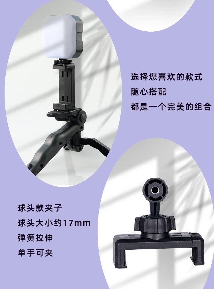 Mini trípode con clip para teléfono móvil, luz de relleno para transmisión en vivo, palo selfie